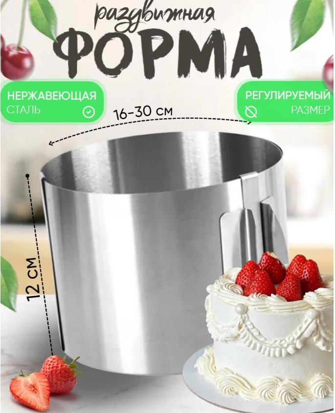 Форма - кольцо для запекания и выпечки раздвижная 16-30см, высотой 12 см