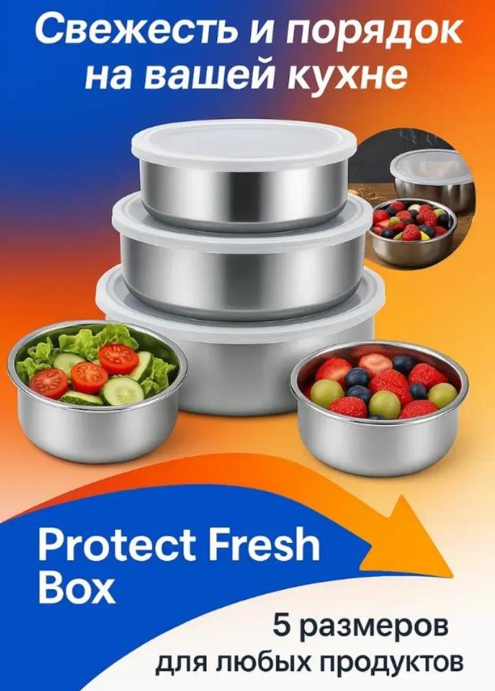 Набор контейнеров из нержавеющей стали Миски с крышками 5 шт