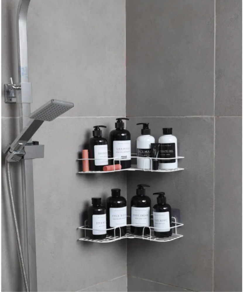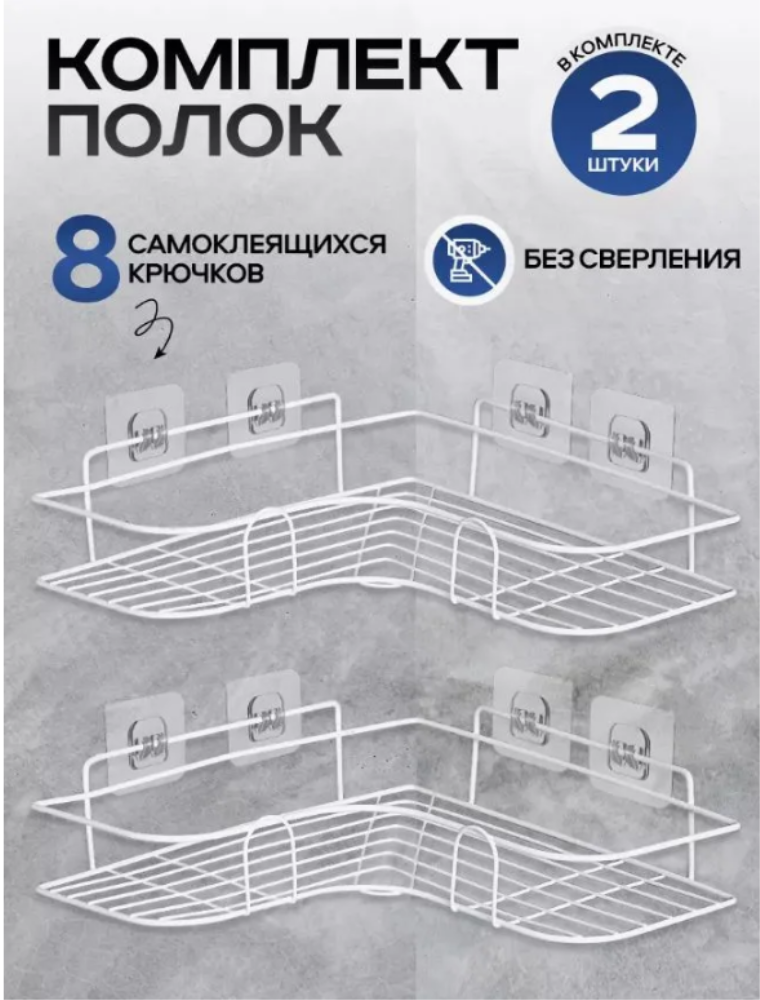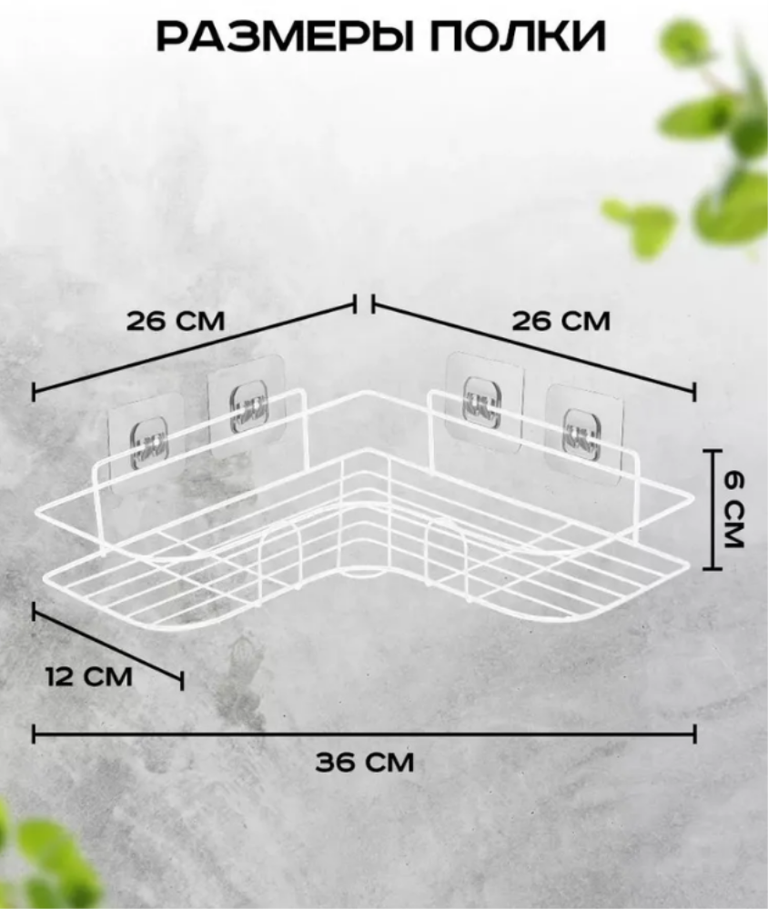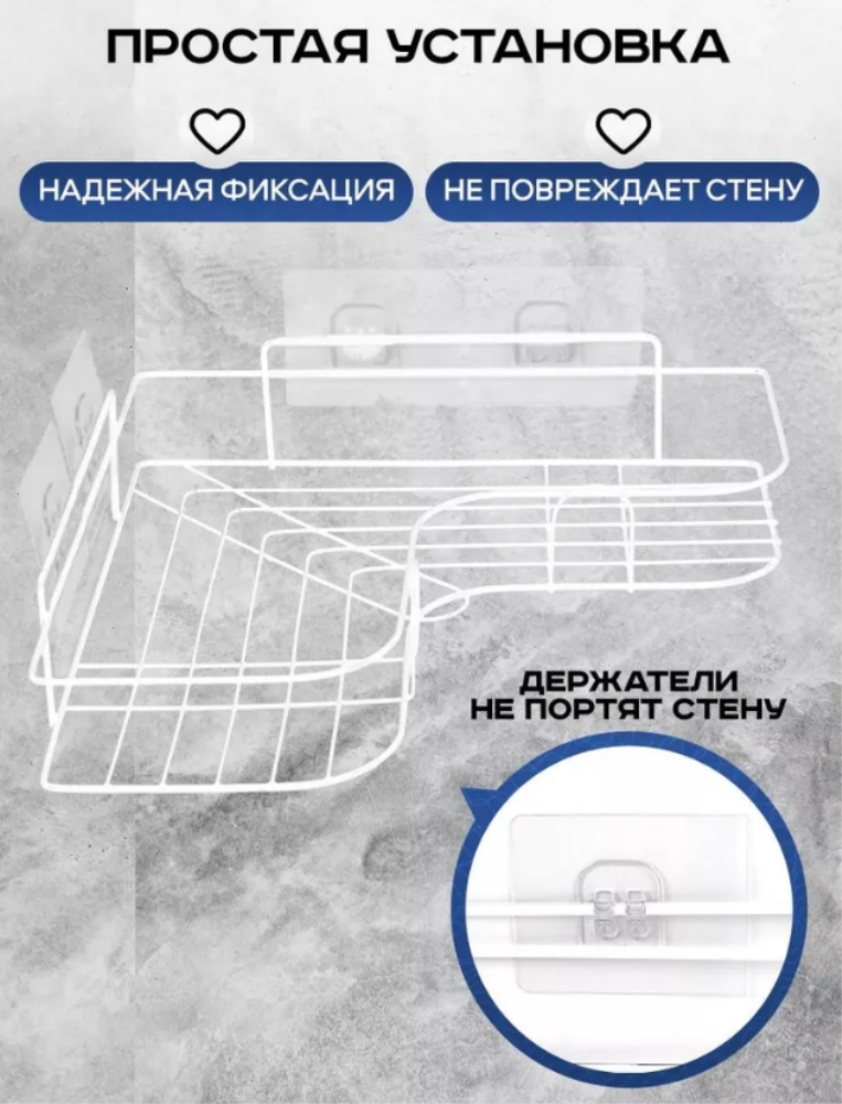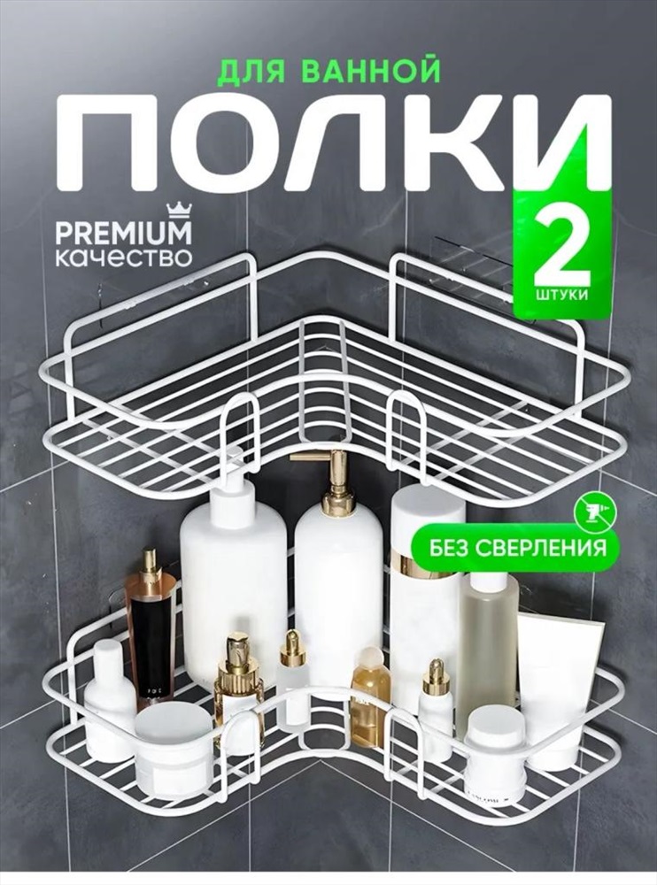 Полка в ванную угловая, полка для ванной угловая, без сверления белая 5 фото