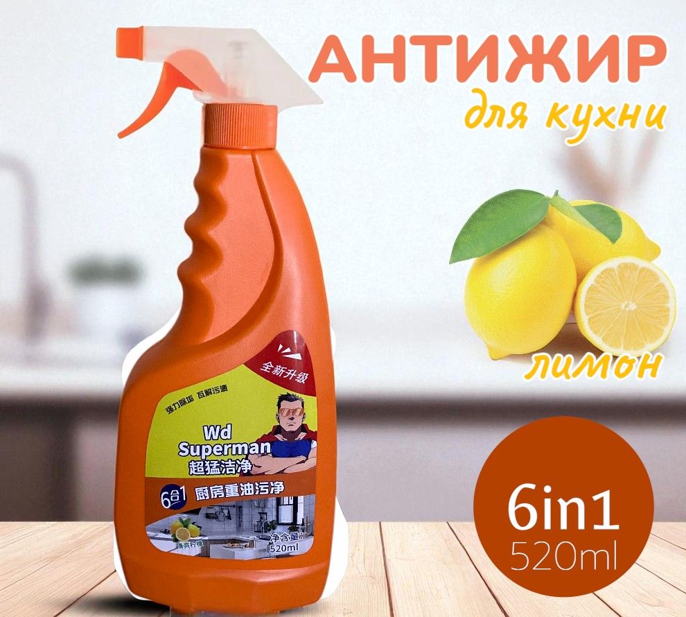 Супер средство 6в1 АНТИЖИР лимон для кухни 520мл