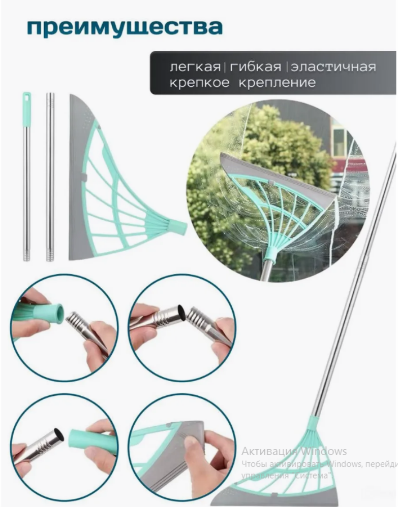 Швабра силиконовая скребок веник водосгон для пола и окон 6 фото