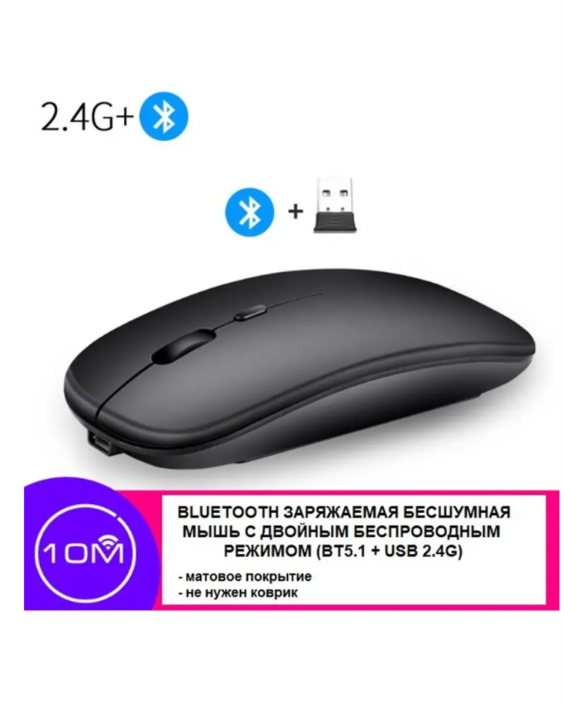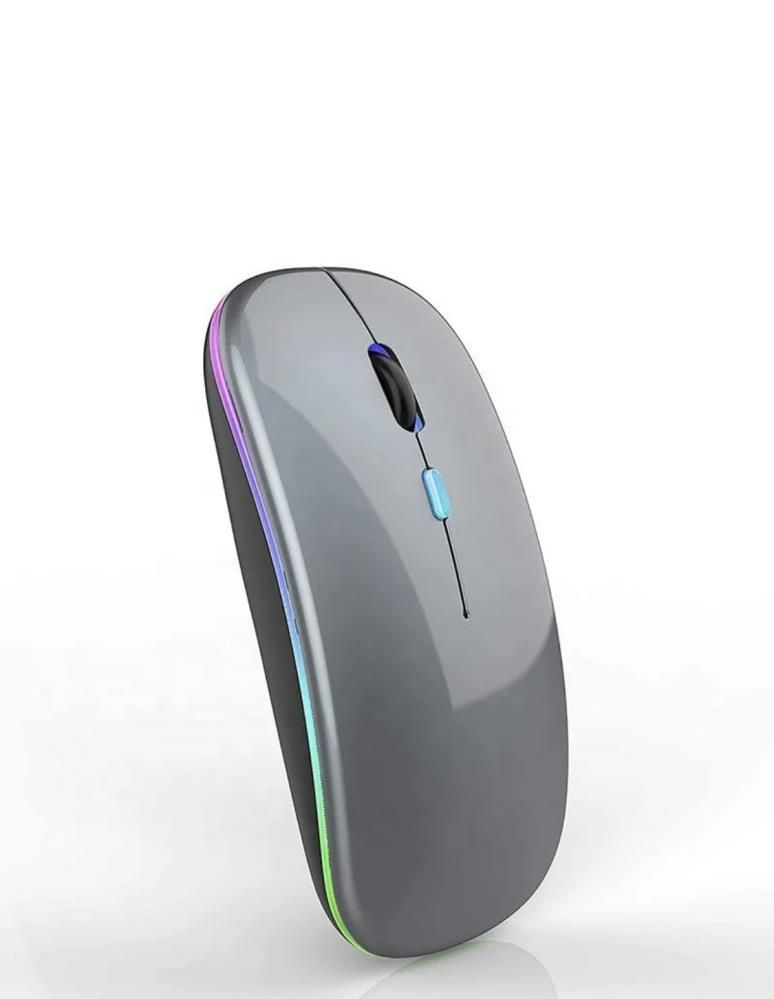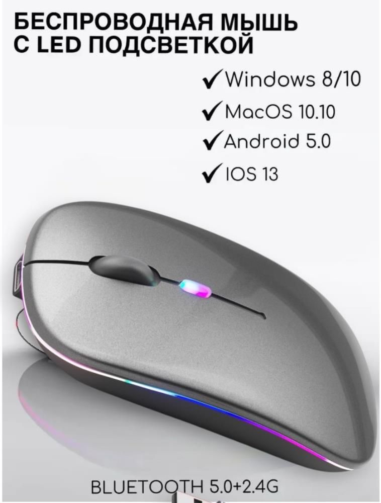Отличная мышка с Двумя типами подключения Bluetooth + беспроводная с USB,2, подсветка, шикарный глянцевый серый 6 фото