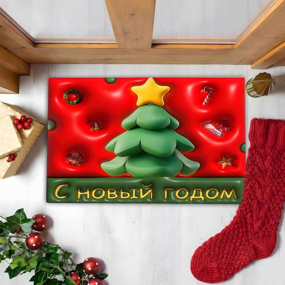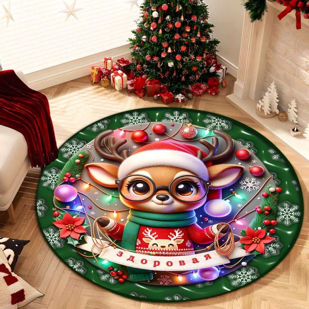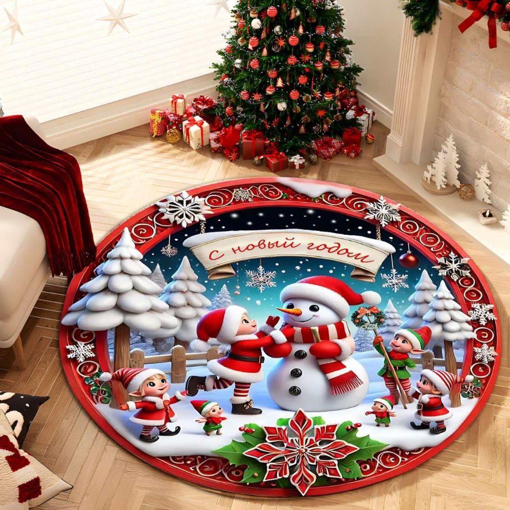 Уютный  и очень красивый Новогодний  коврик, противоскользящий, диаметр 900 мм