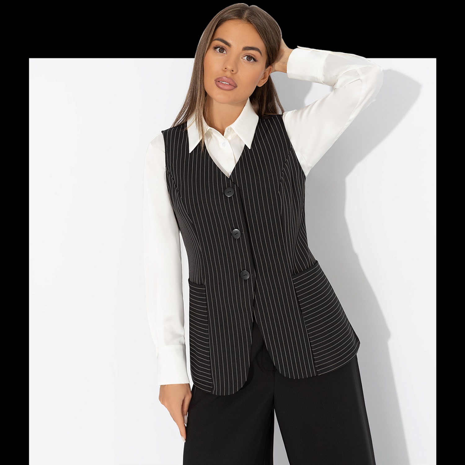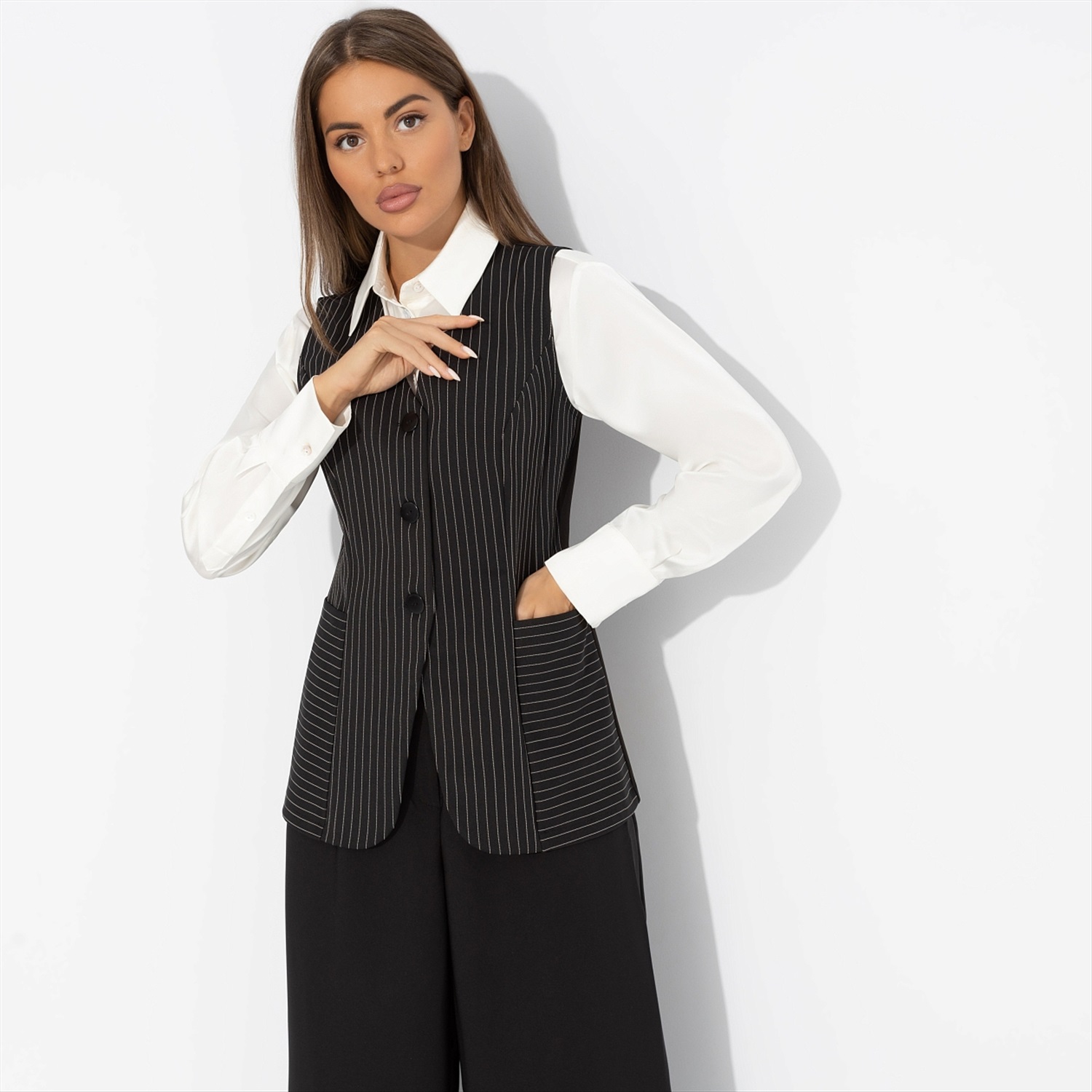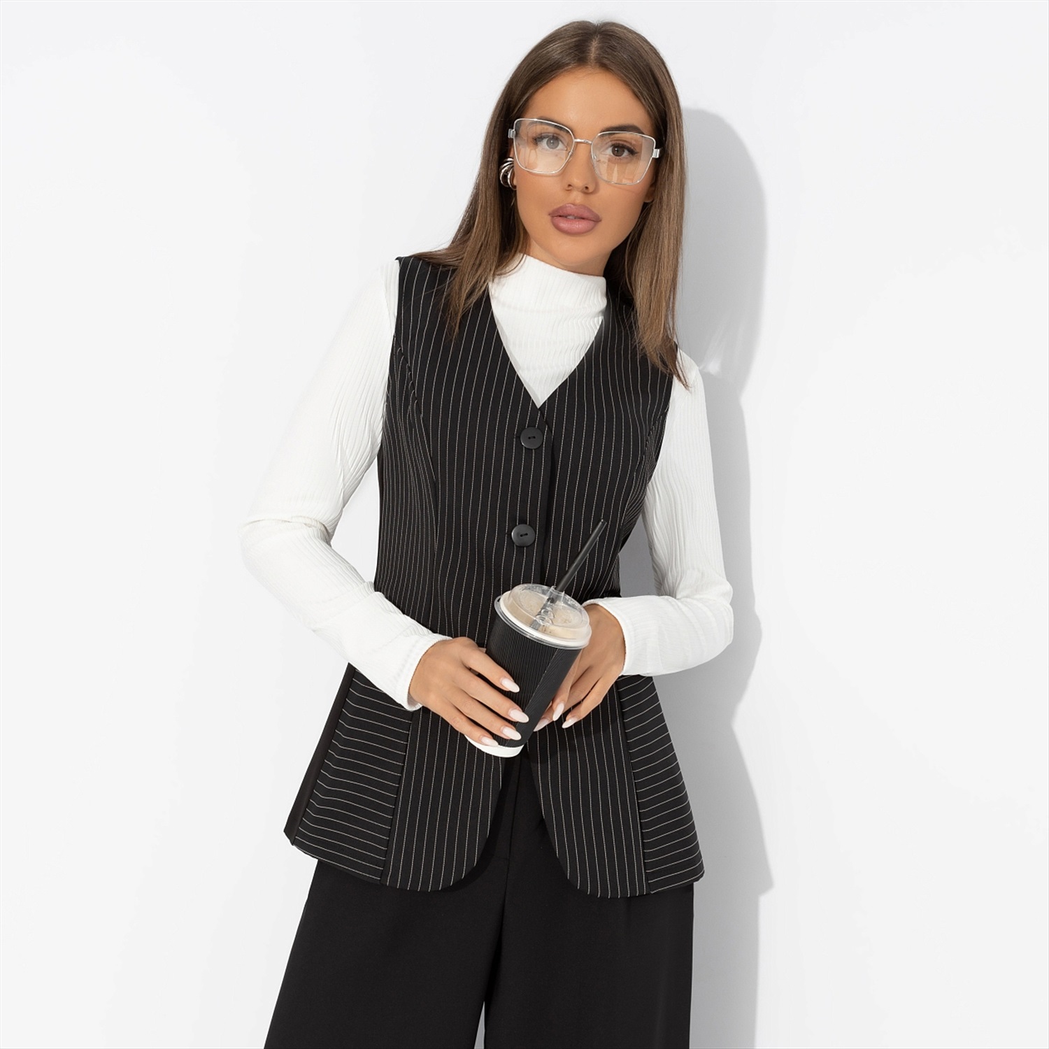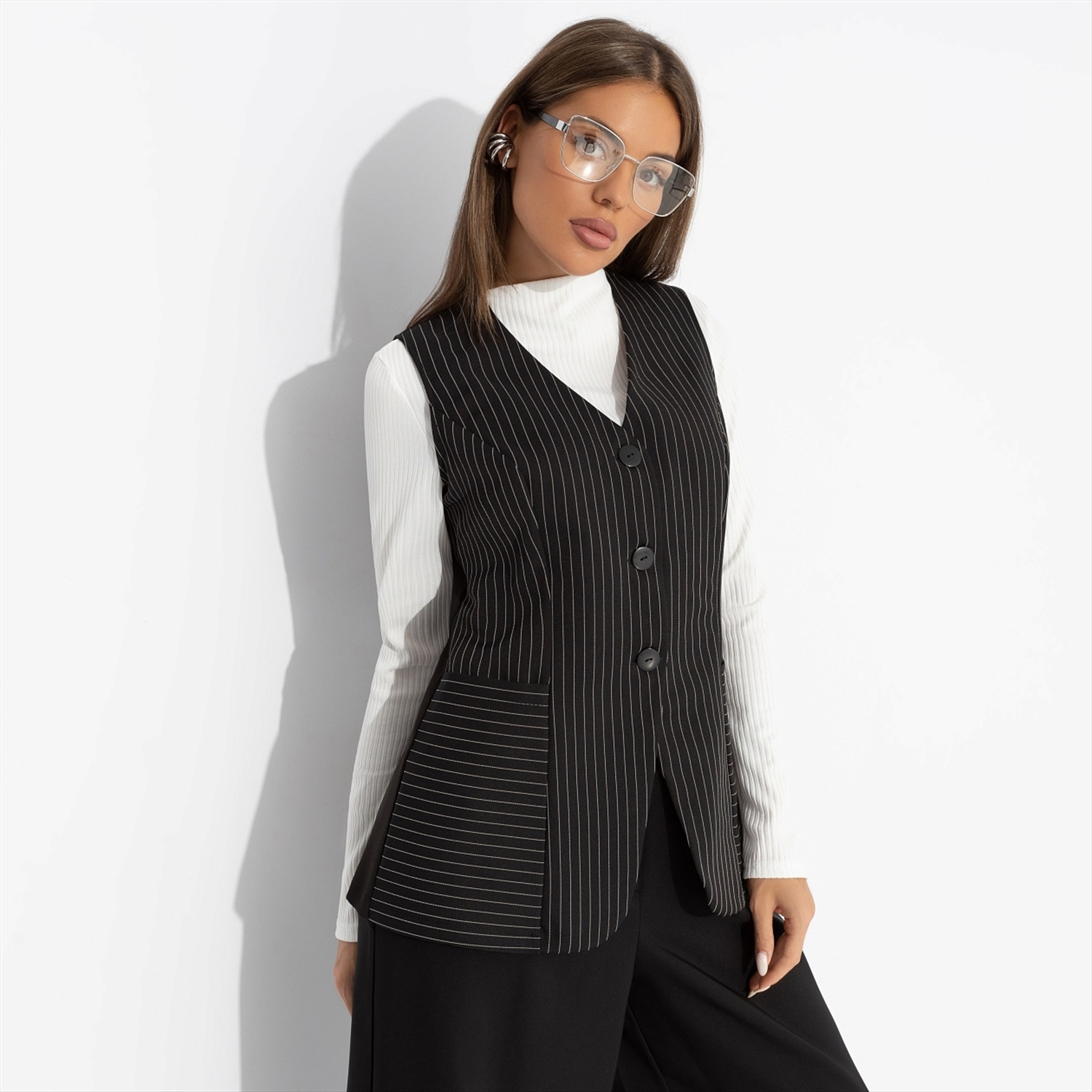Жилет в полоску, Налёт драмы (чёрный) 7 фото