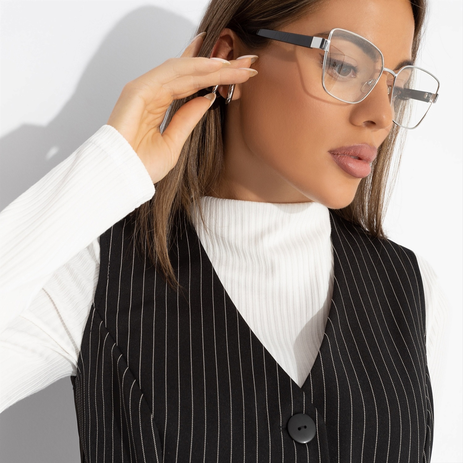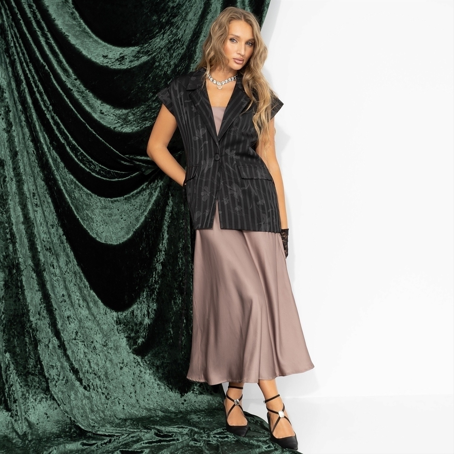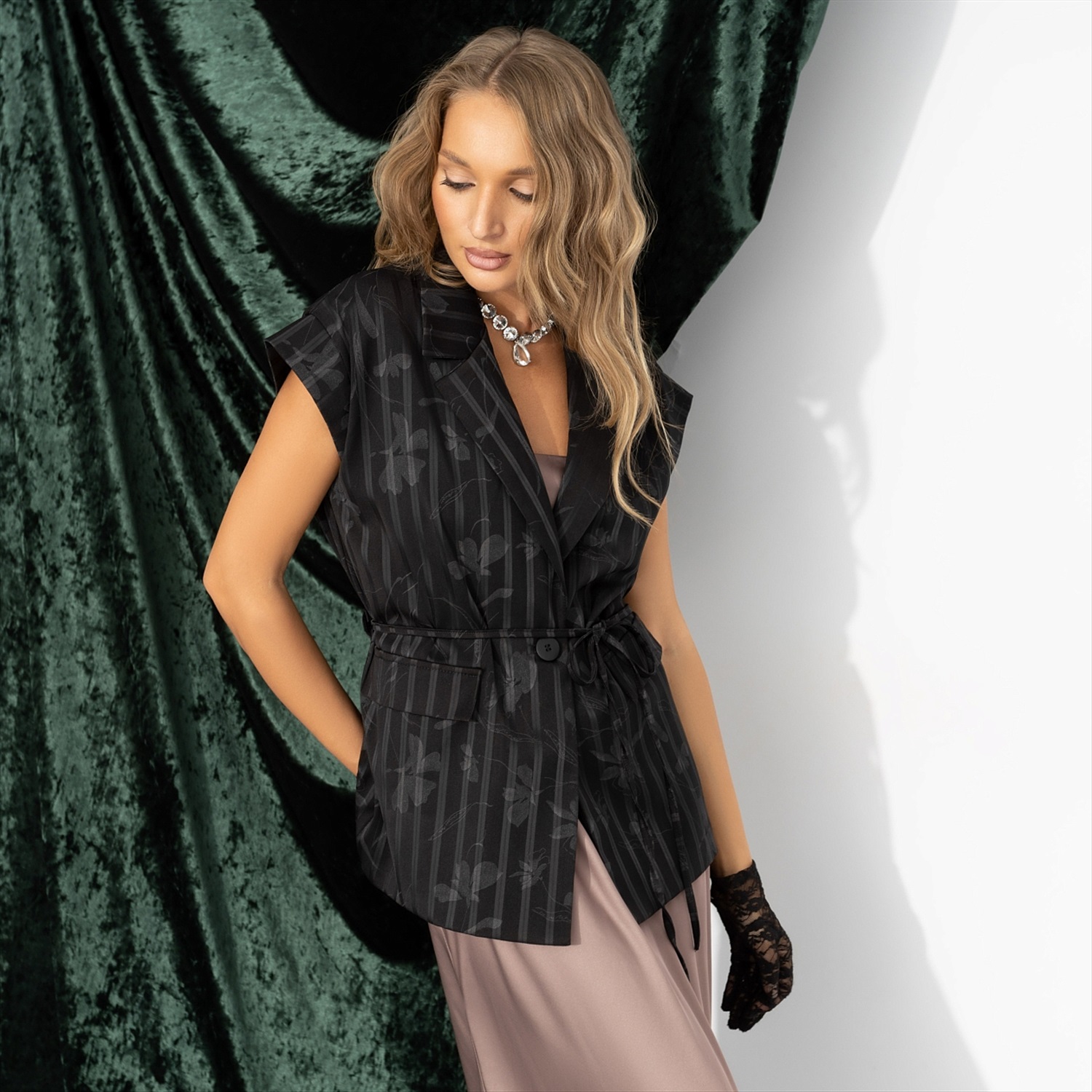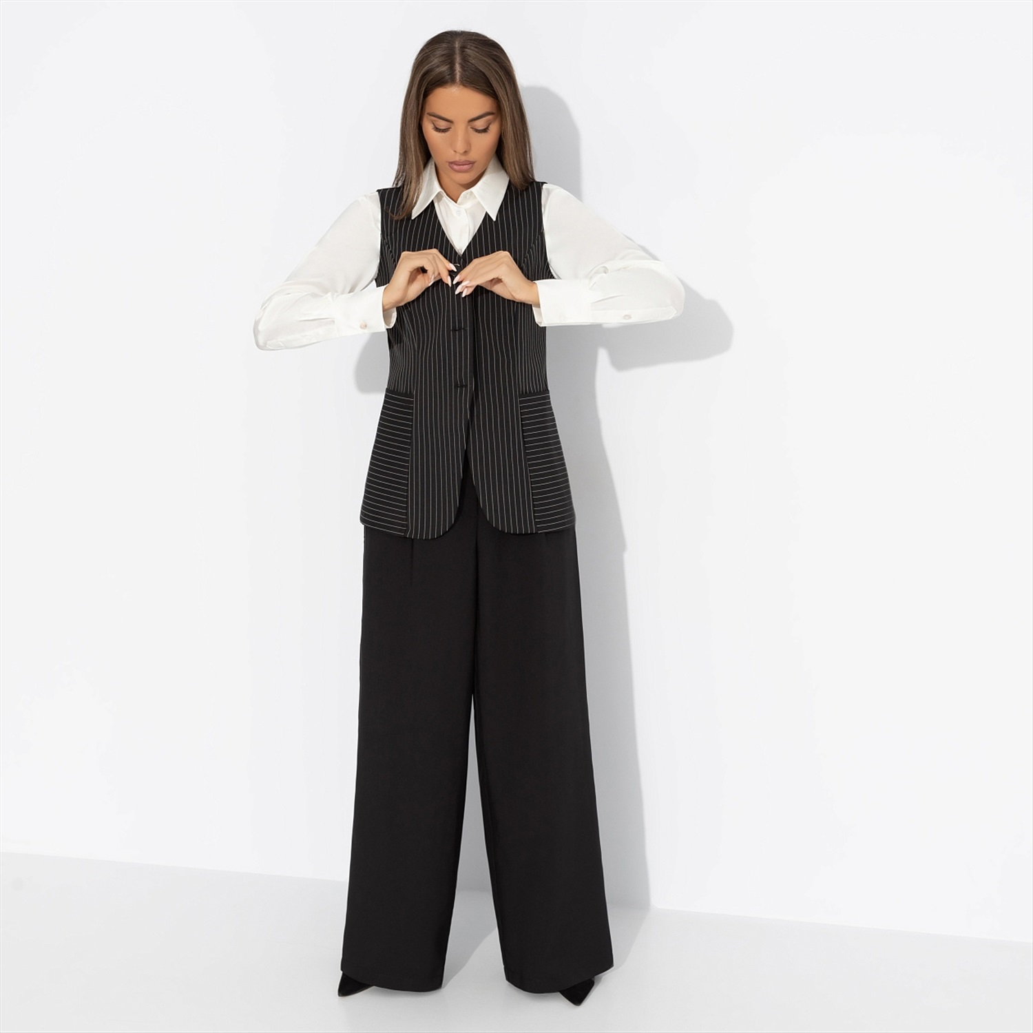 Жилет в полоску, Налёт драмы (чёрный) 7 фото