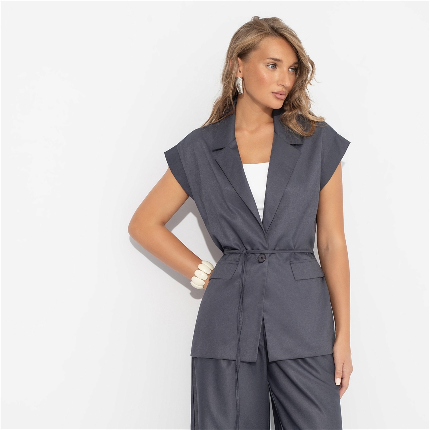 Жилет на завязках, Слишком модно (серый) 6 фото