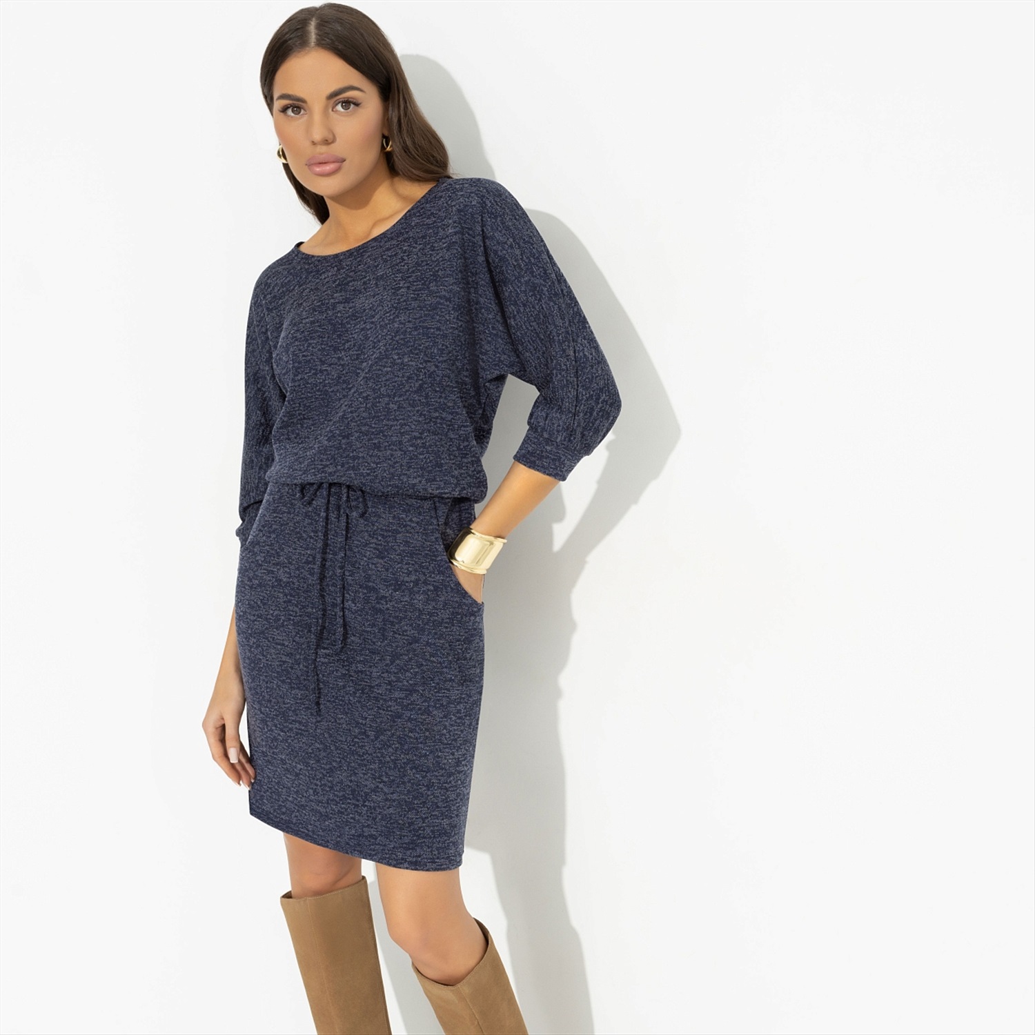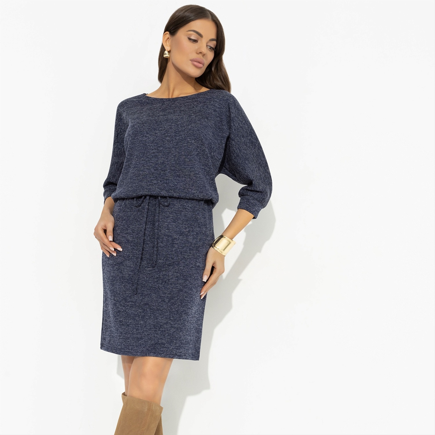 Платье из трикотажа-гофре, Одарена свыше (молочный шоколад) 6 фото