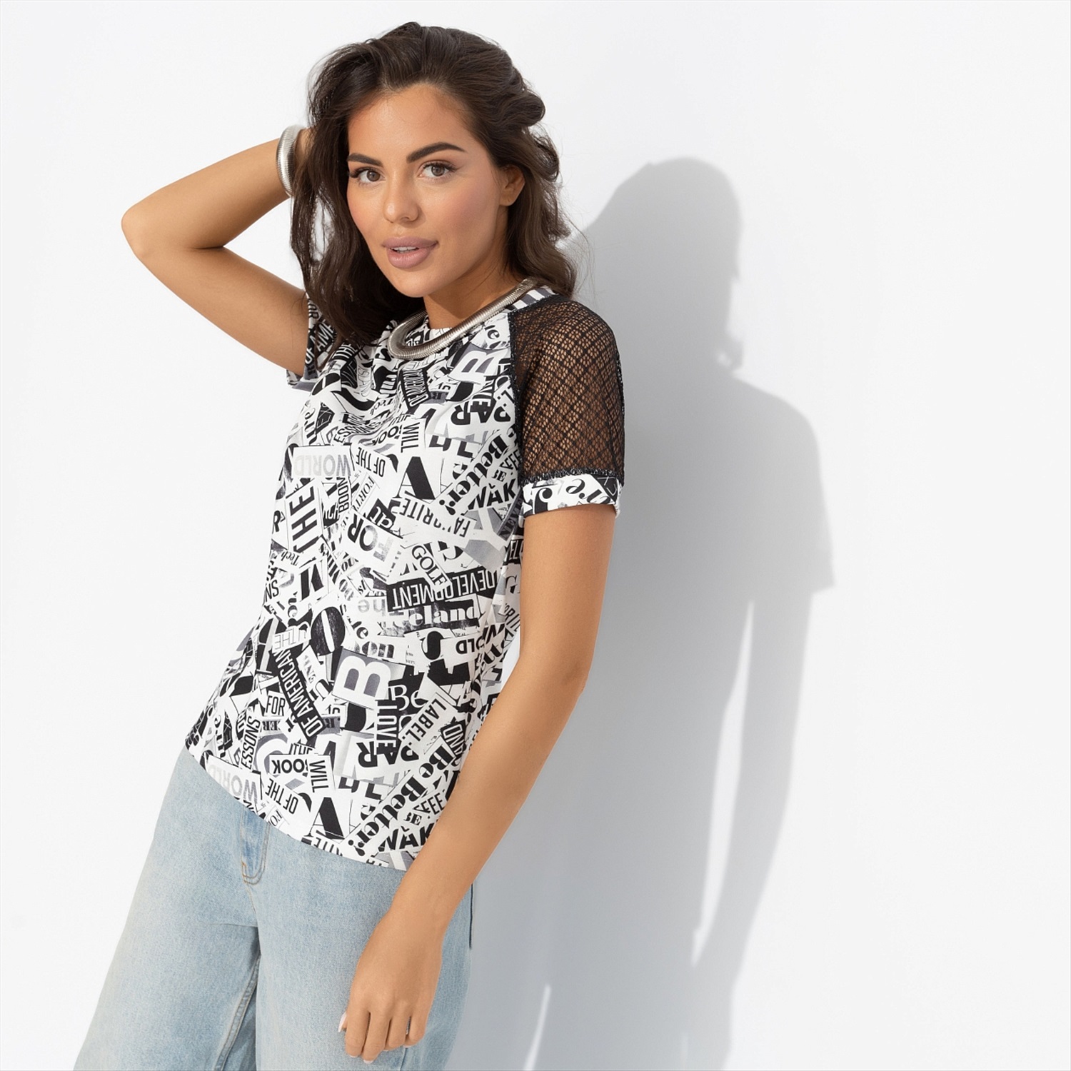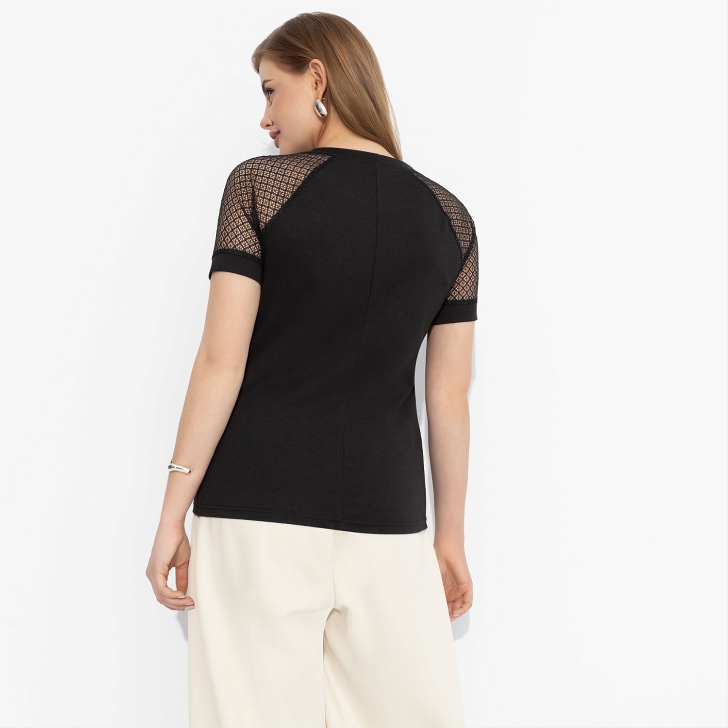 Футболка комбинированная с гипюром, Стильная свобода 6 фото