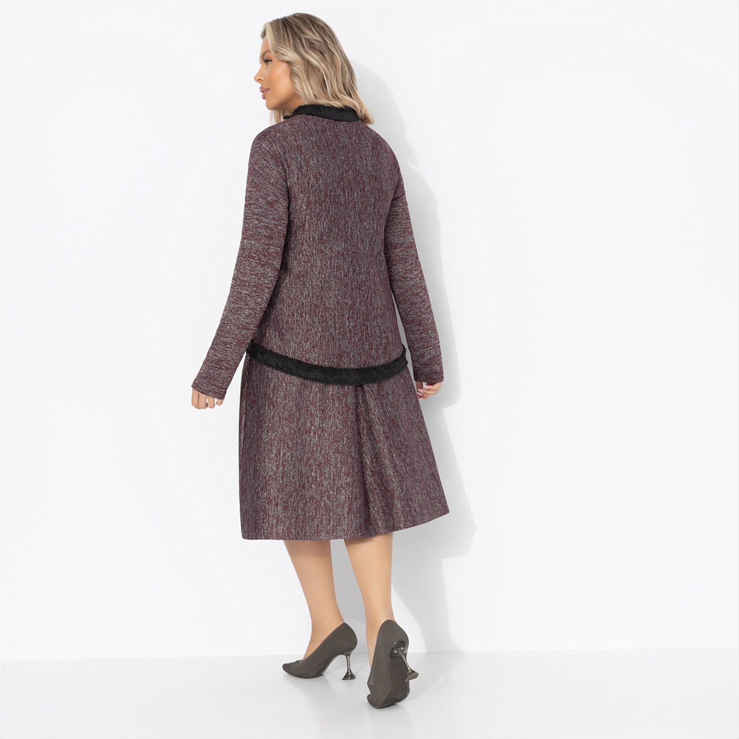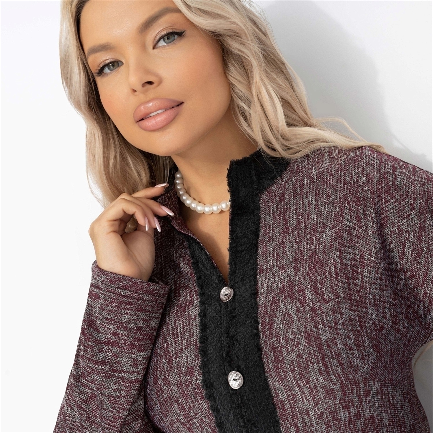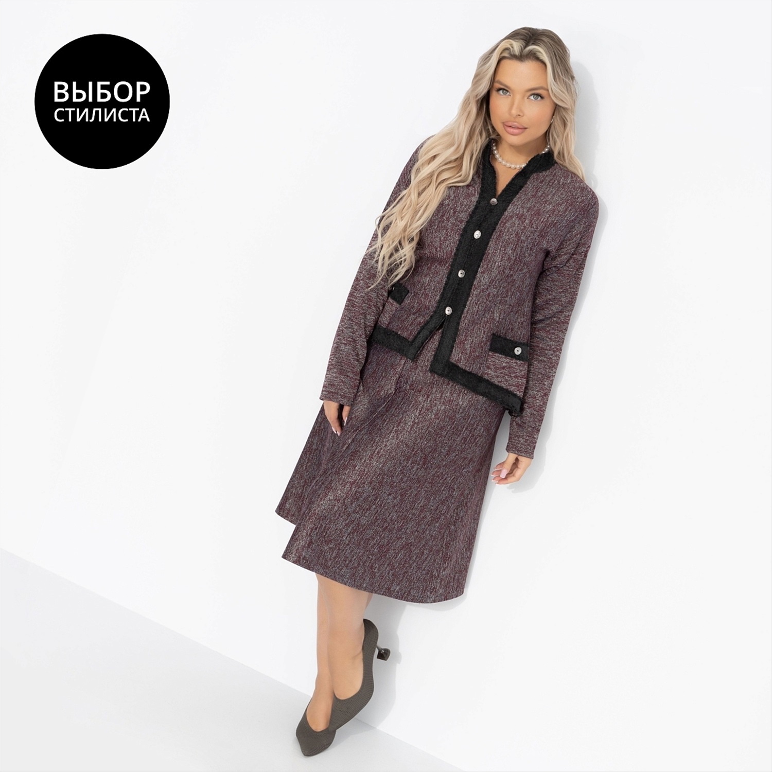 Костюм с юбкой в стиле Шанель, С безупречным вкусом (2 в 1, винный) 6 фото