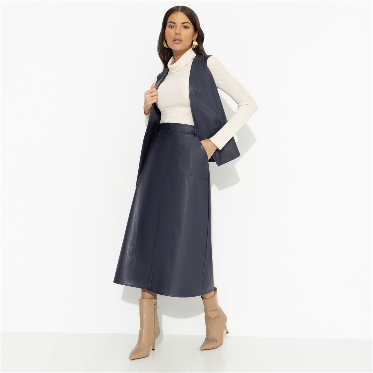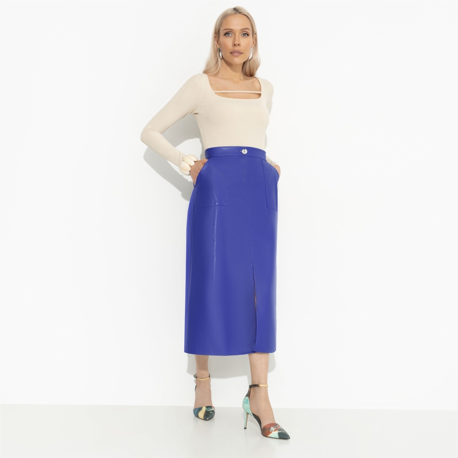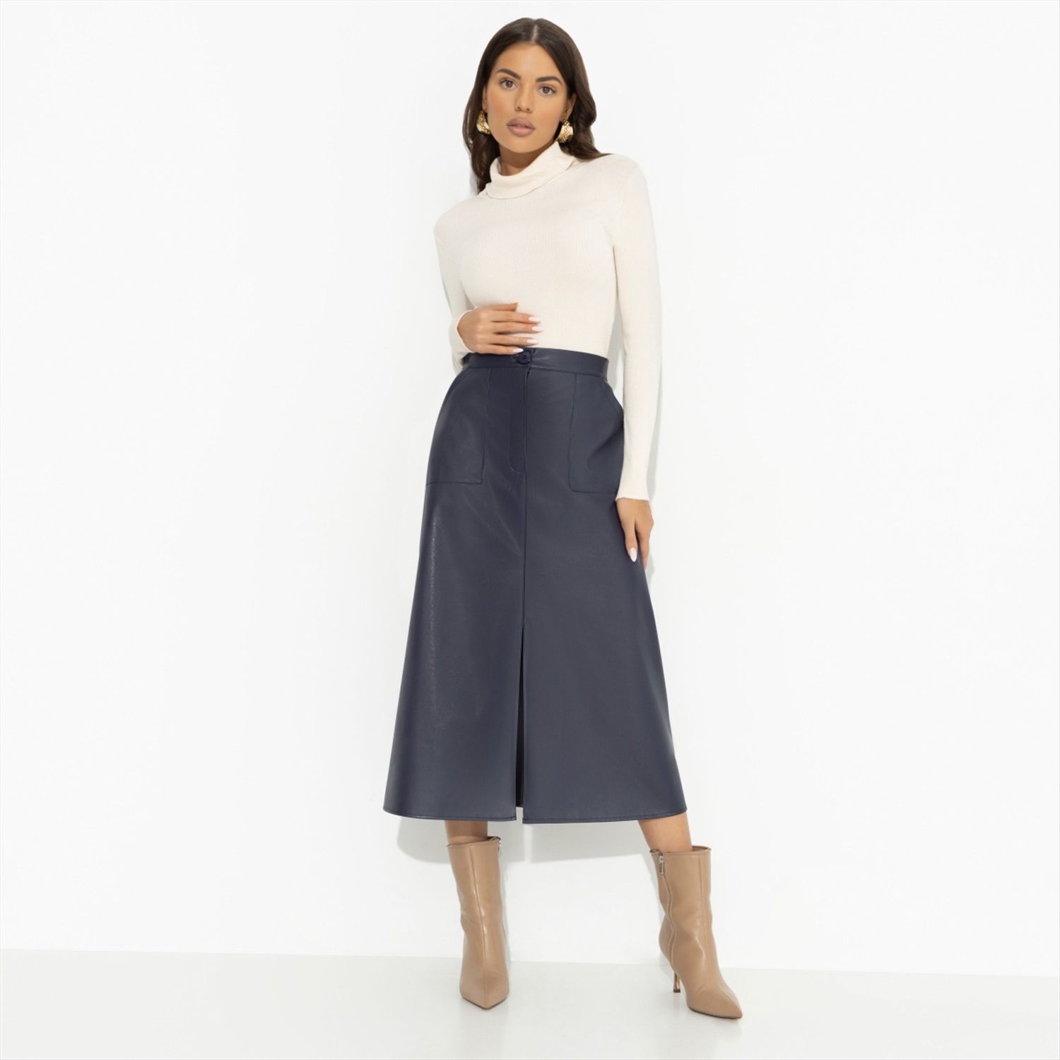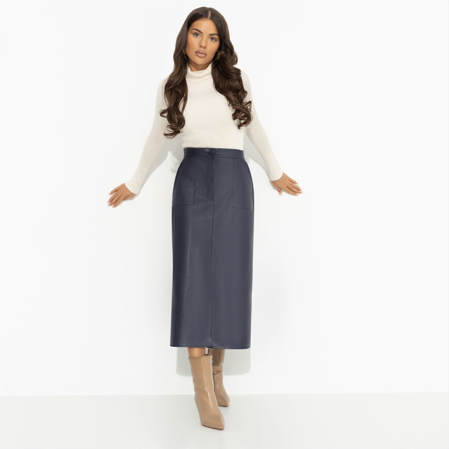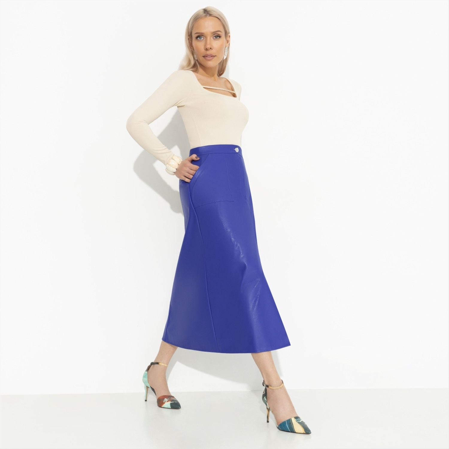 Юбка из мягкой экокожи, Откровенно шикарная (синий) 6 фото