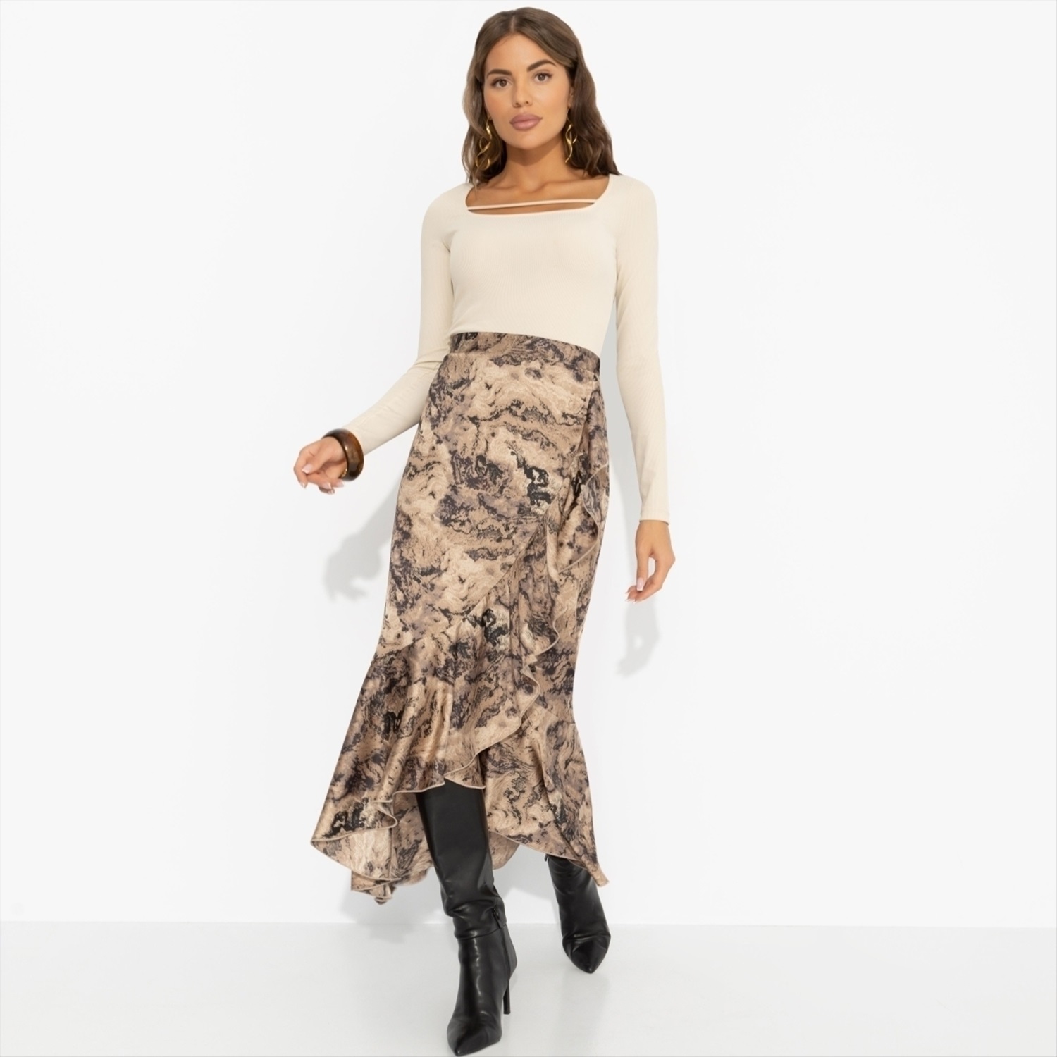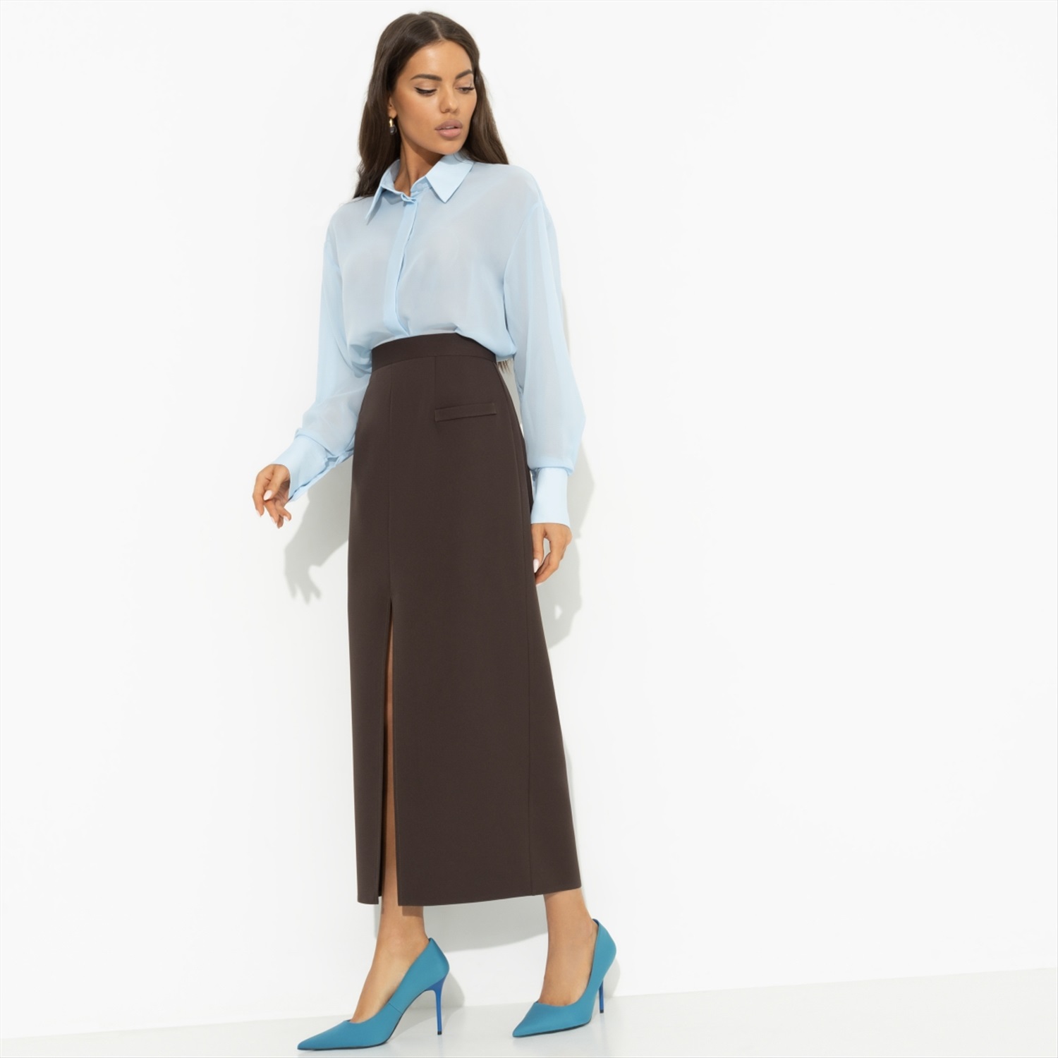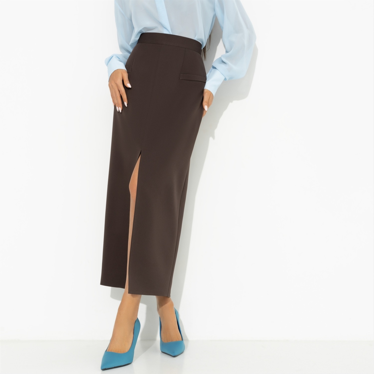 Юбка с разрезом, Откровенно шикарная (коричневый) 6 фото