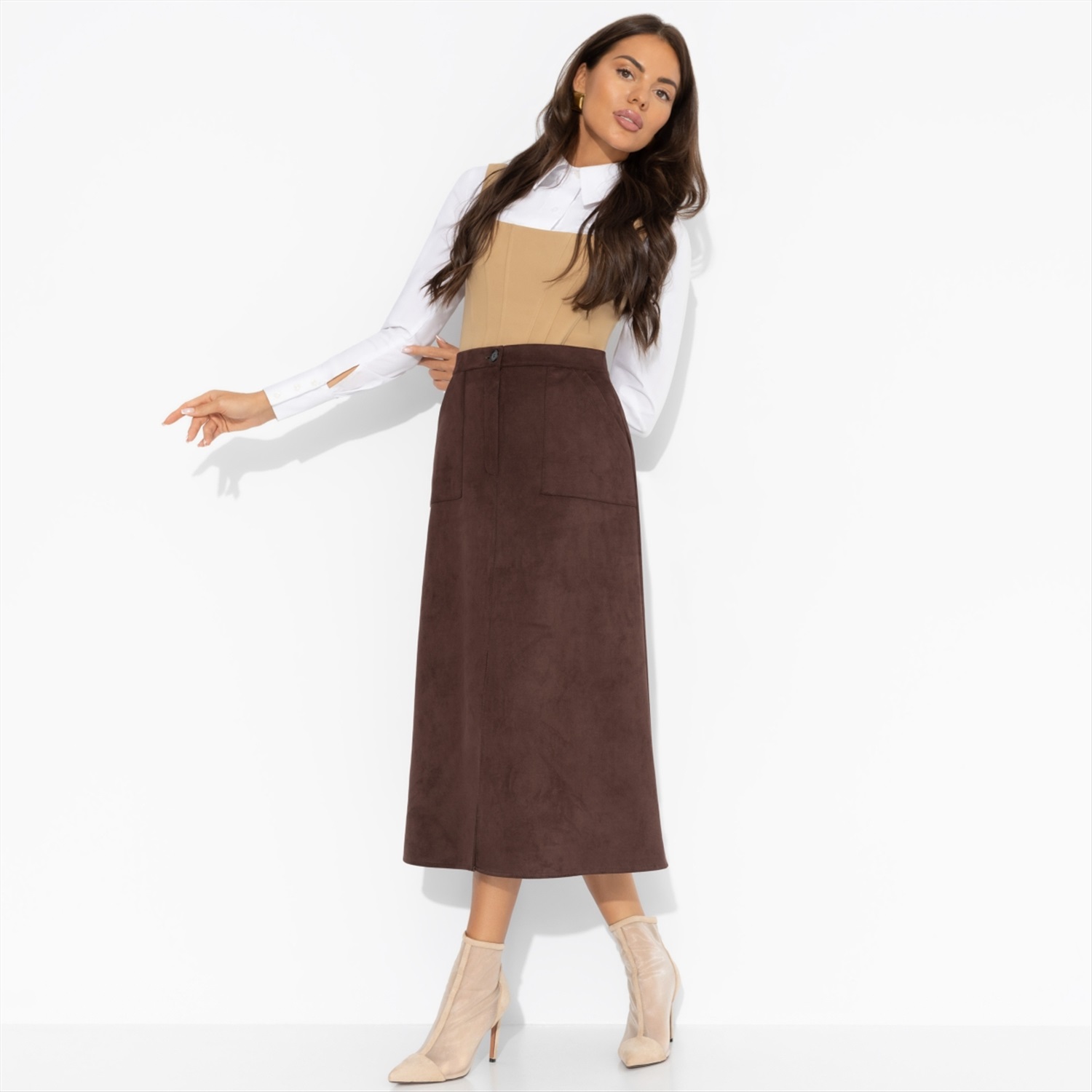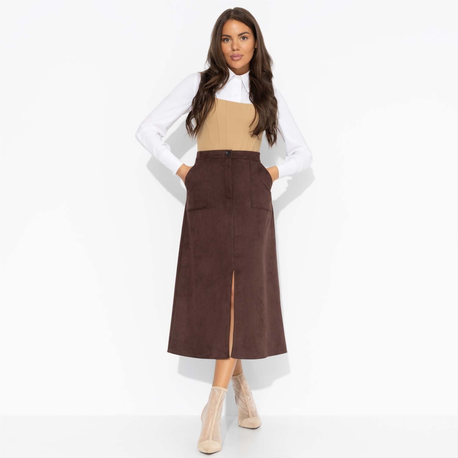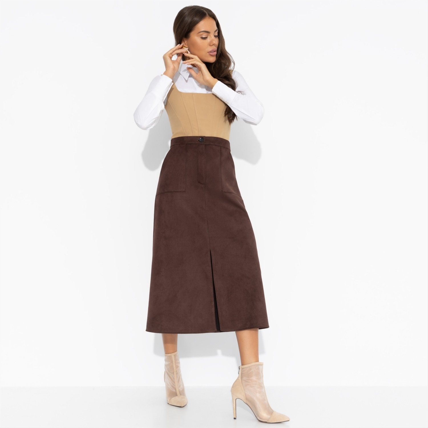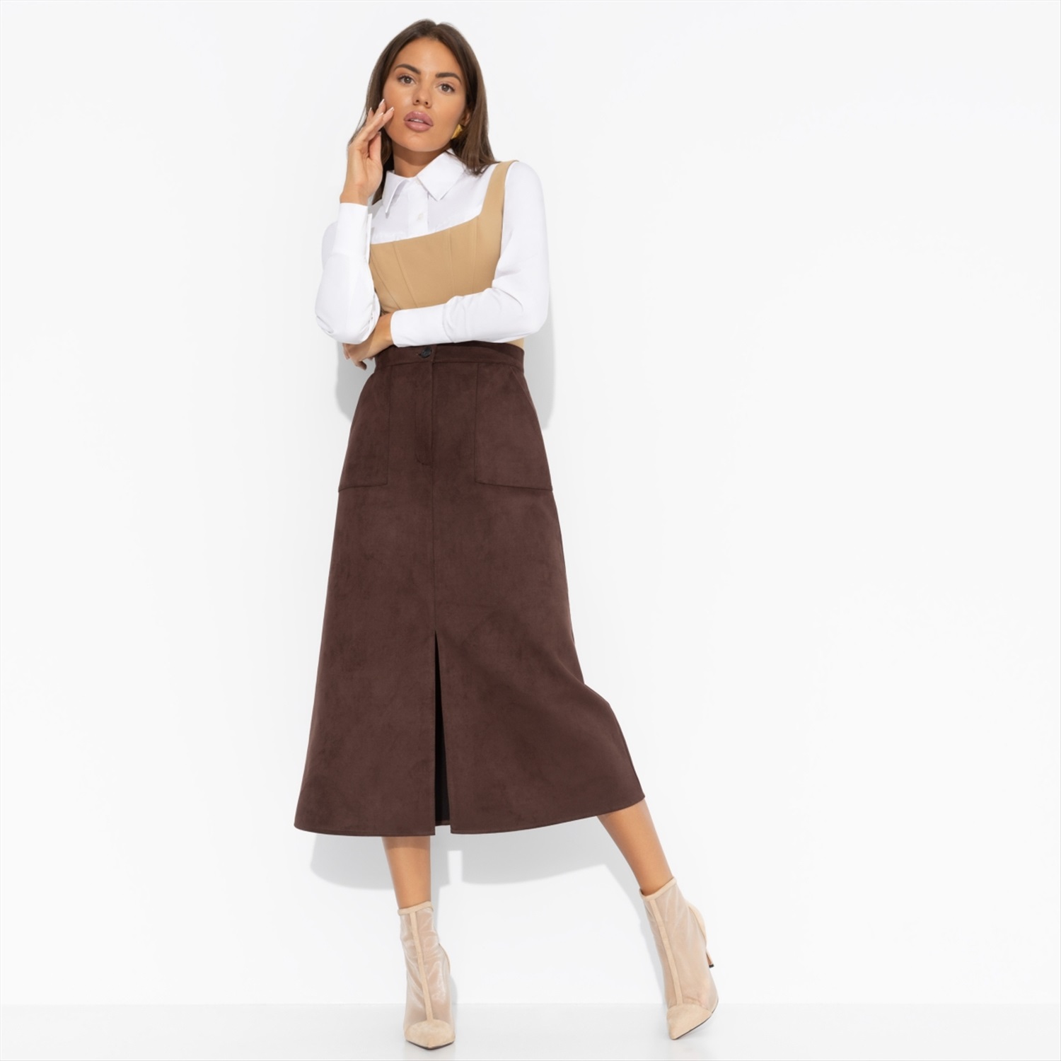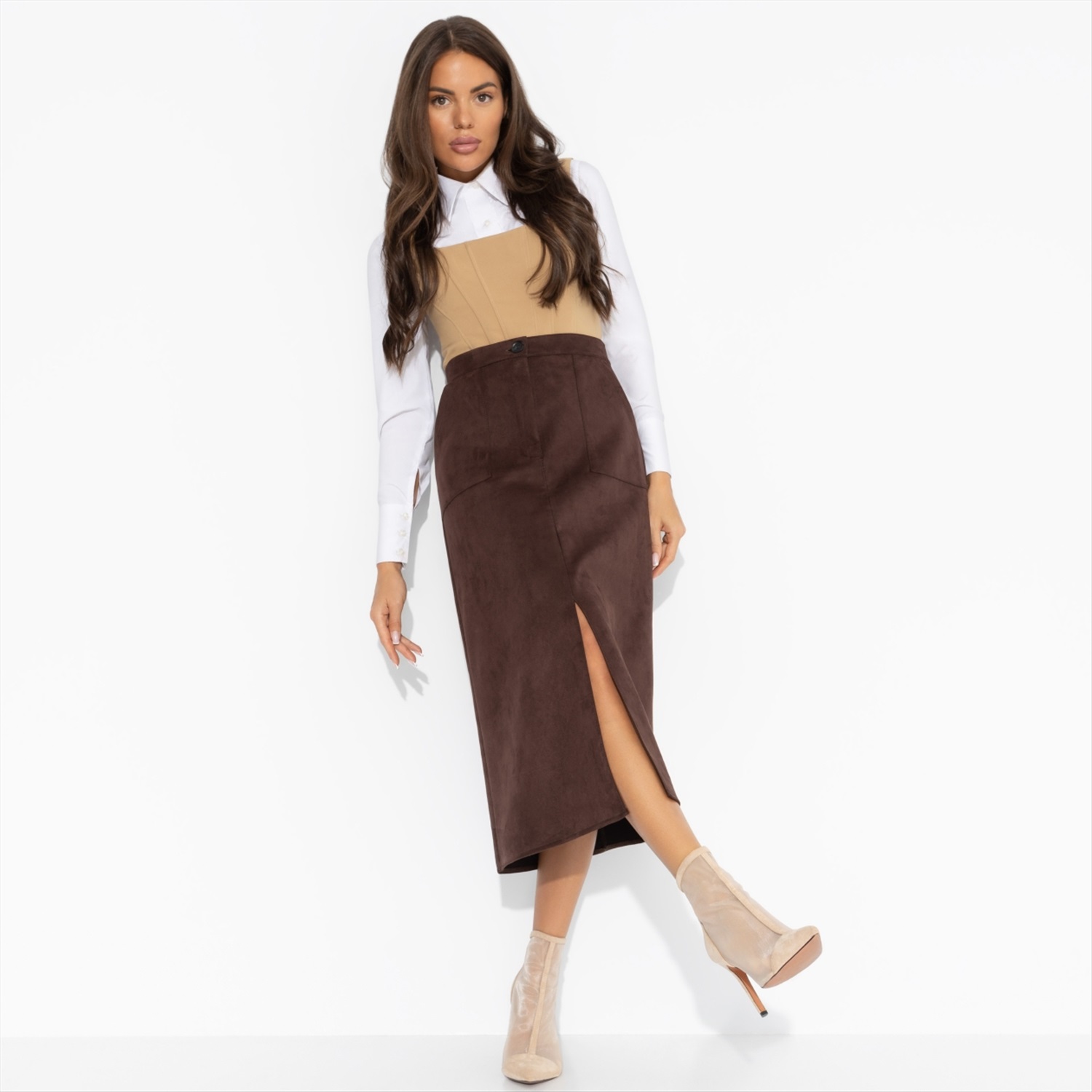 Юбка из замши с разрезом, Откровенно шикарная (шоколадный мусс) 8 фото