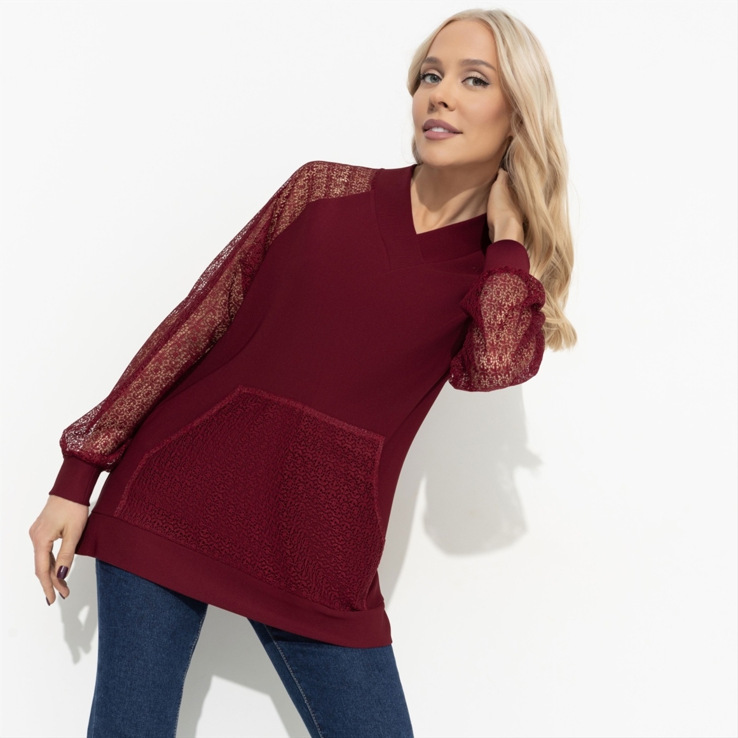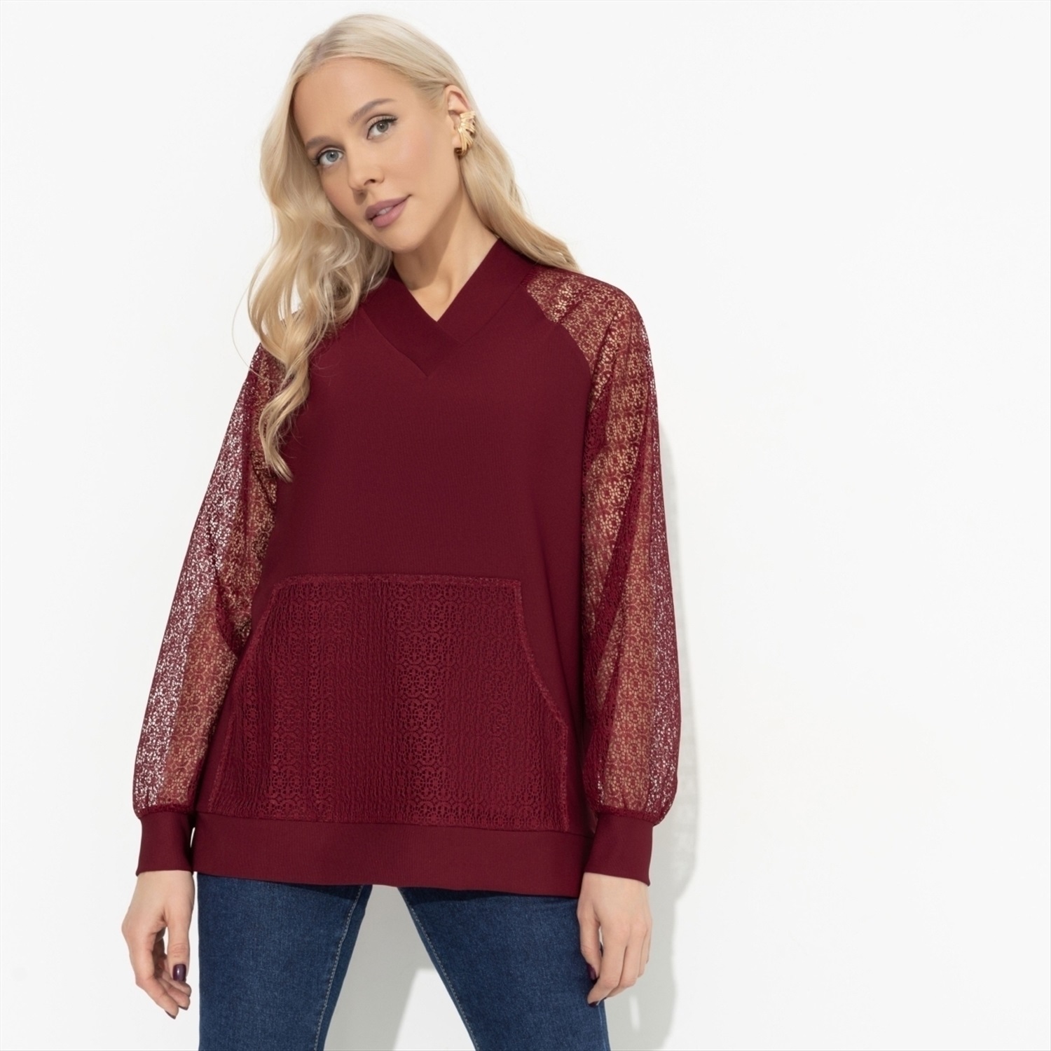 Свитшот комбинированный с кружевом, Приз зрительских симпатий (бордовый) 6 фото