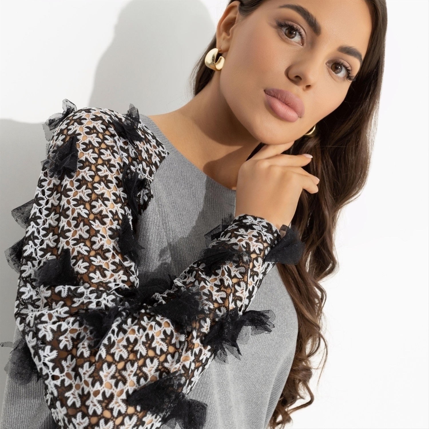 Свитшот комбинированный с кружевом, Роскошь без пафоса 6 фото