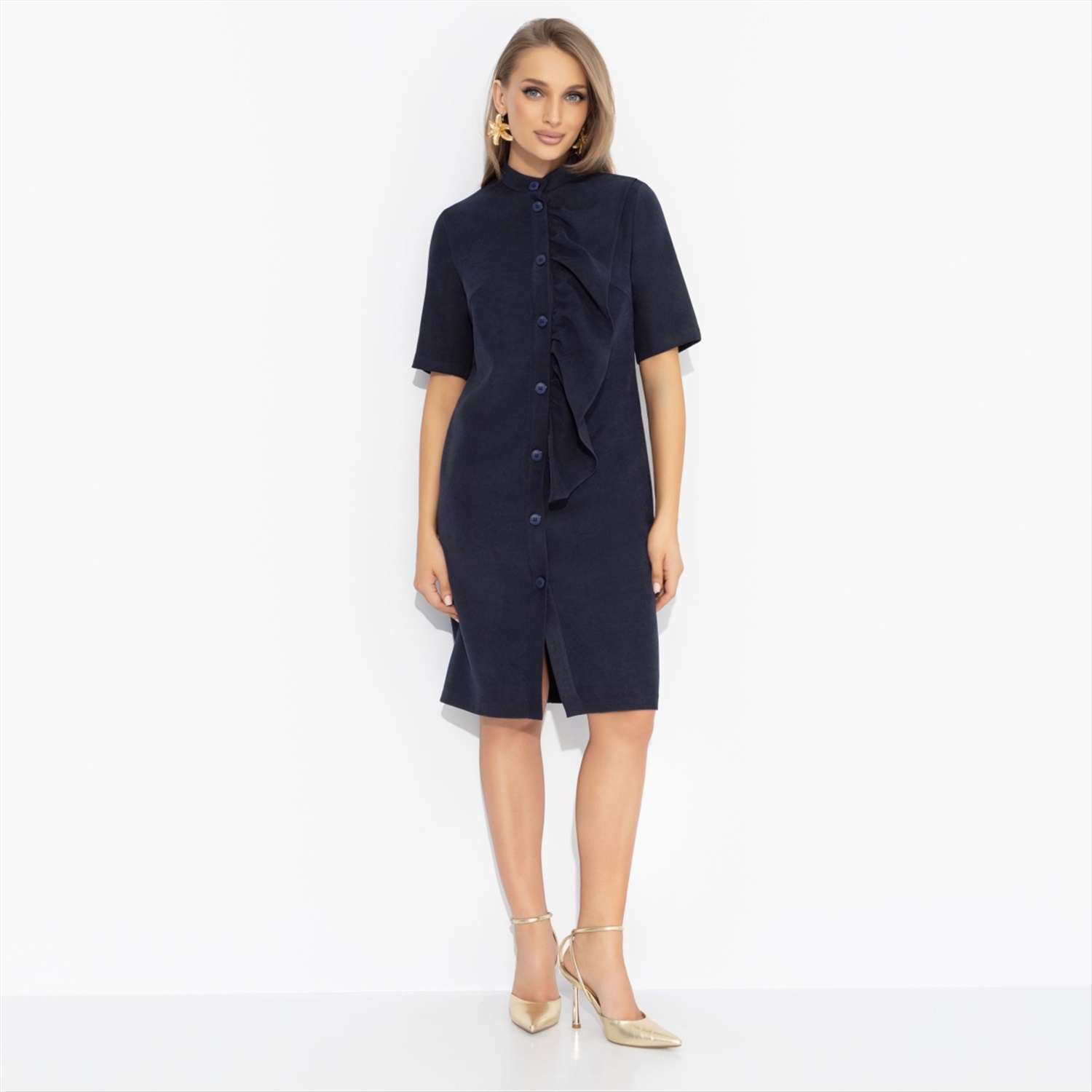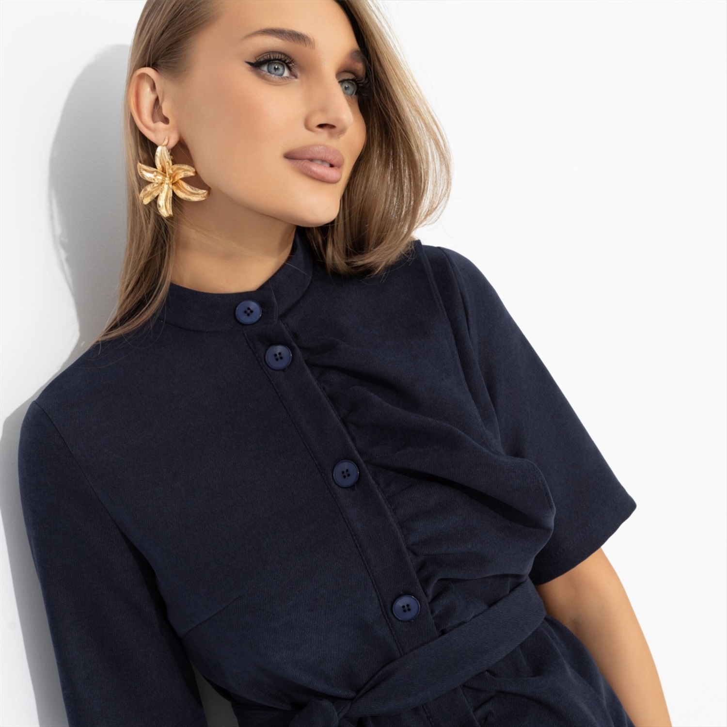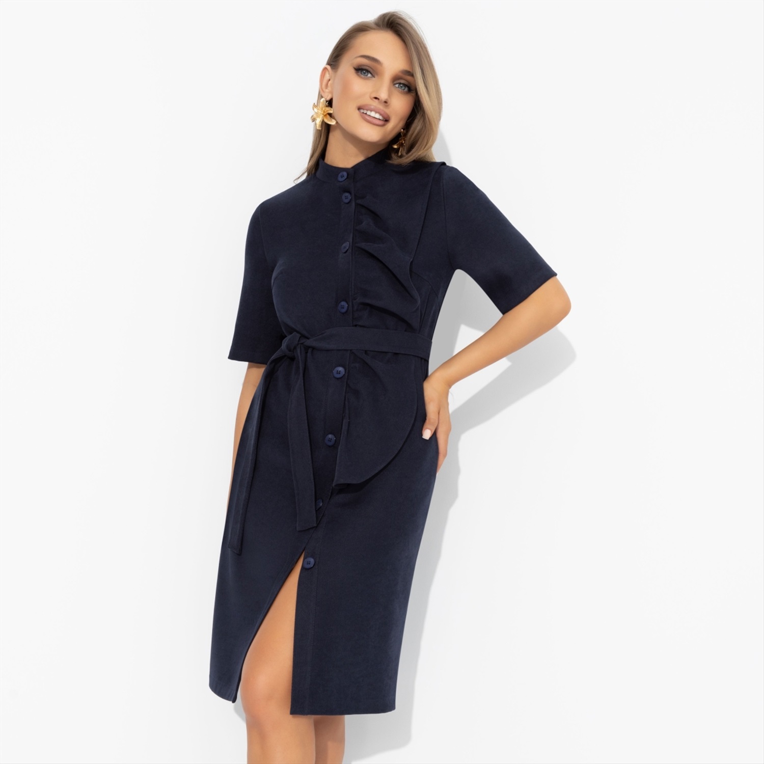 Платье с акцентным воланом, Счастье свободы (blue, с поясом) 6 фото