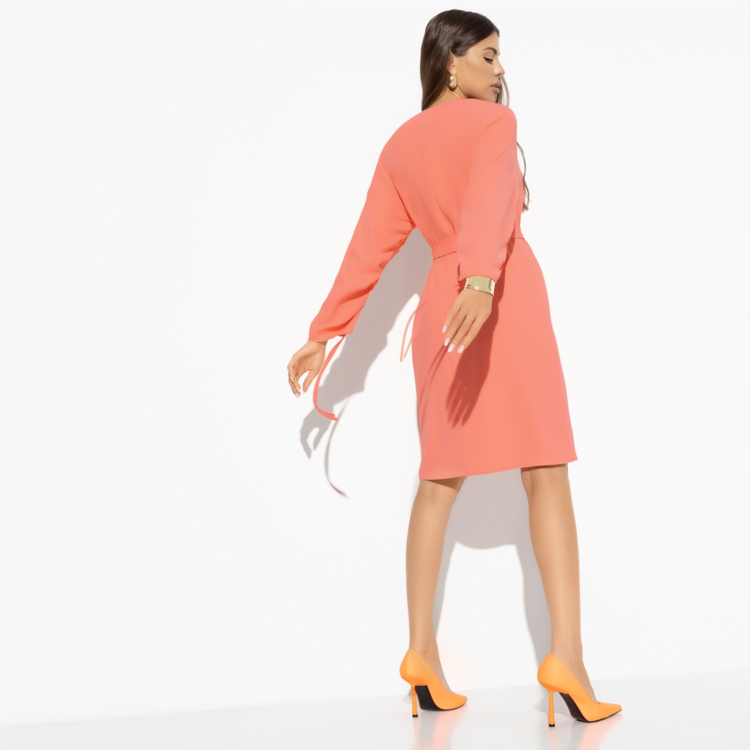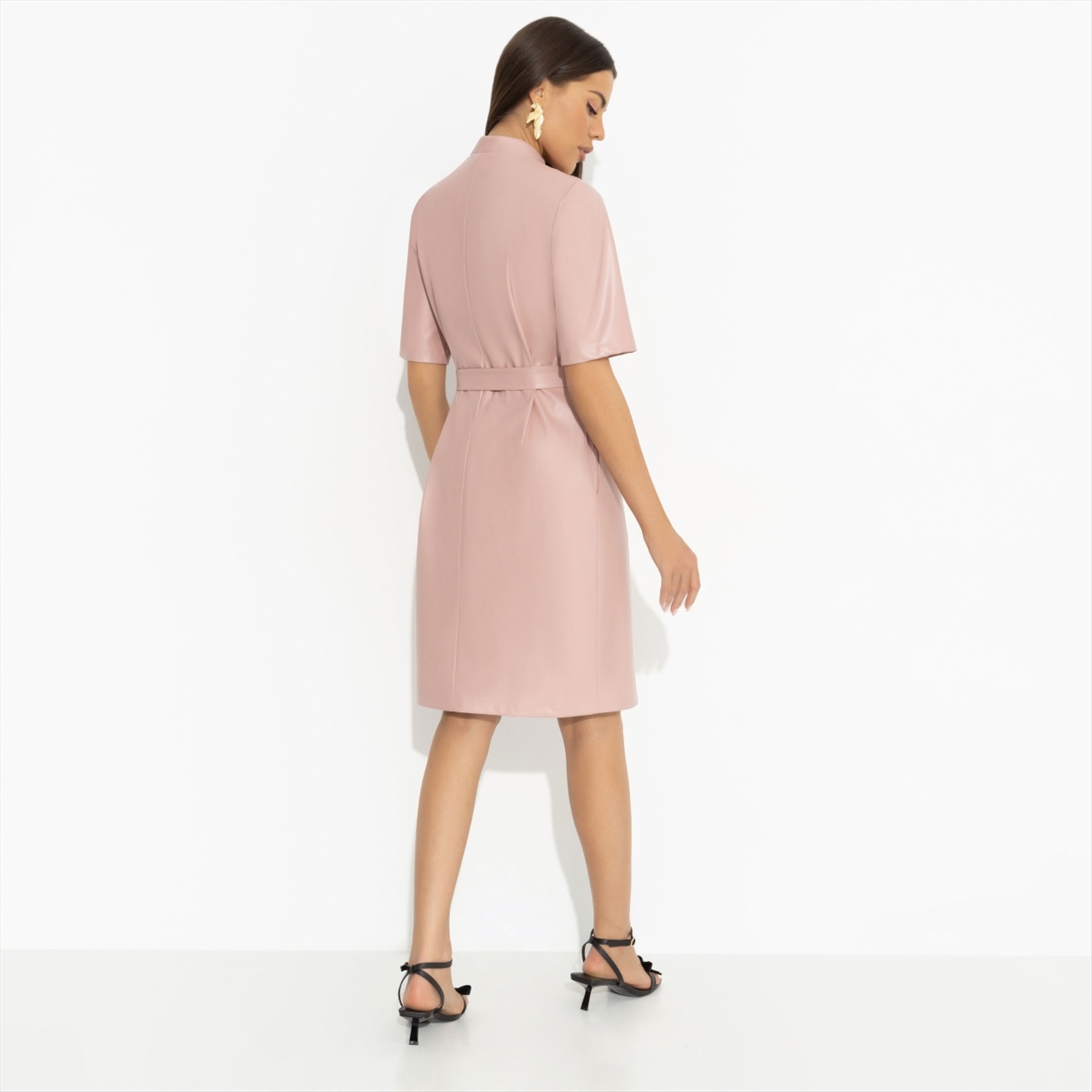 Платье из экокожи, Счастье свободы (peach, с поясом) 6 фото