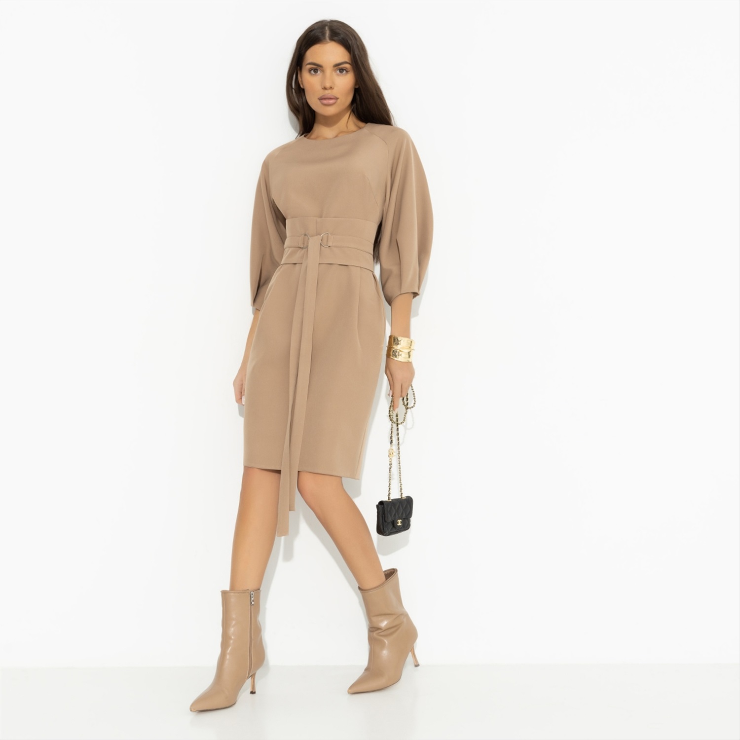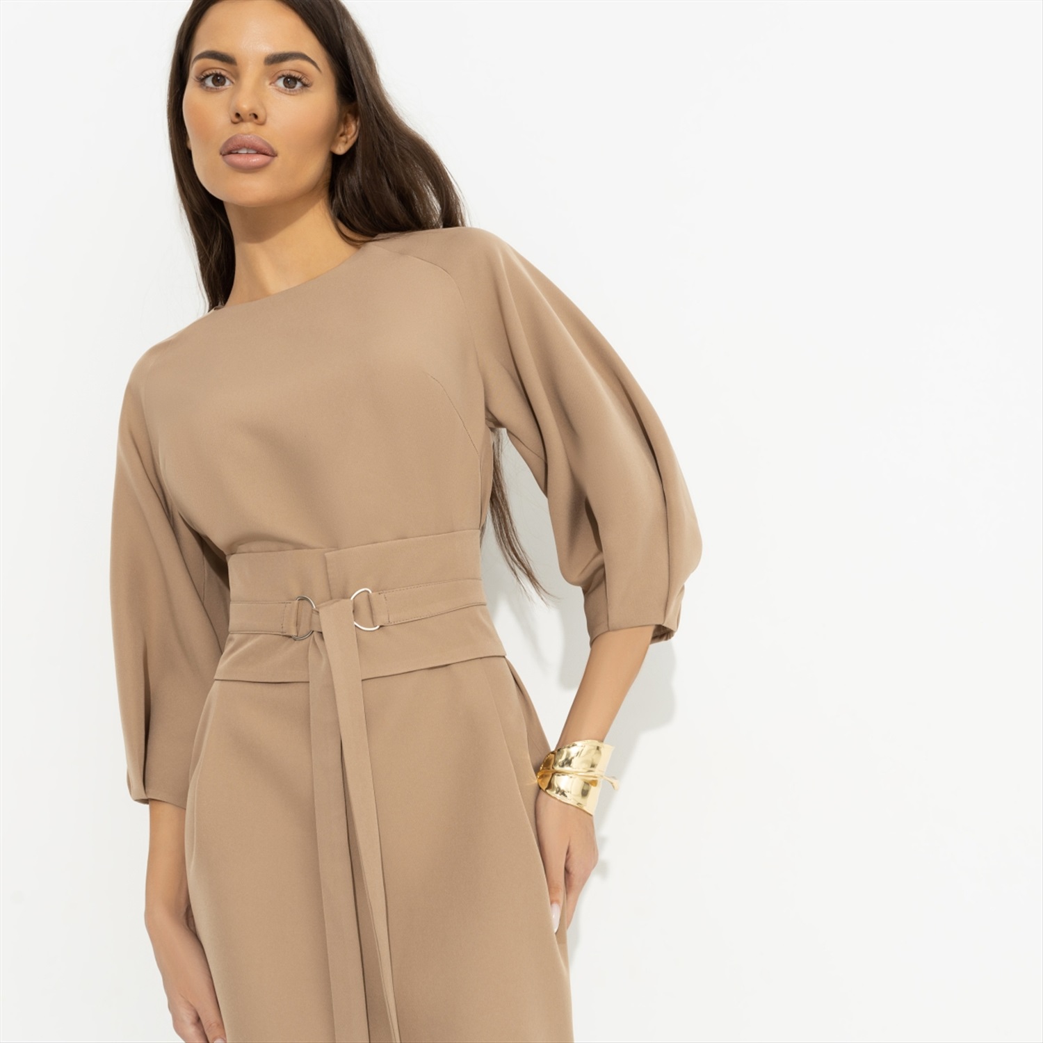 Платье приталенное, Любовь с первого платья (бежевое) 6 фото