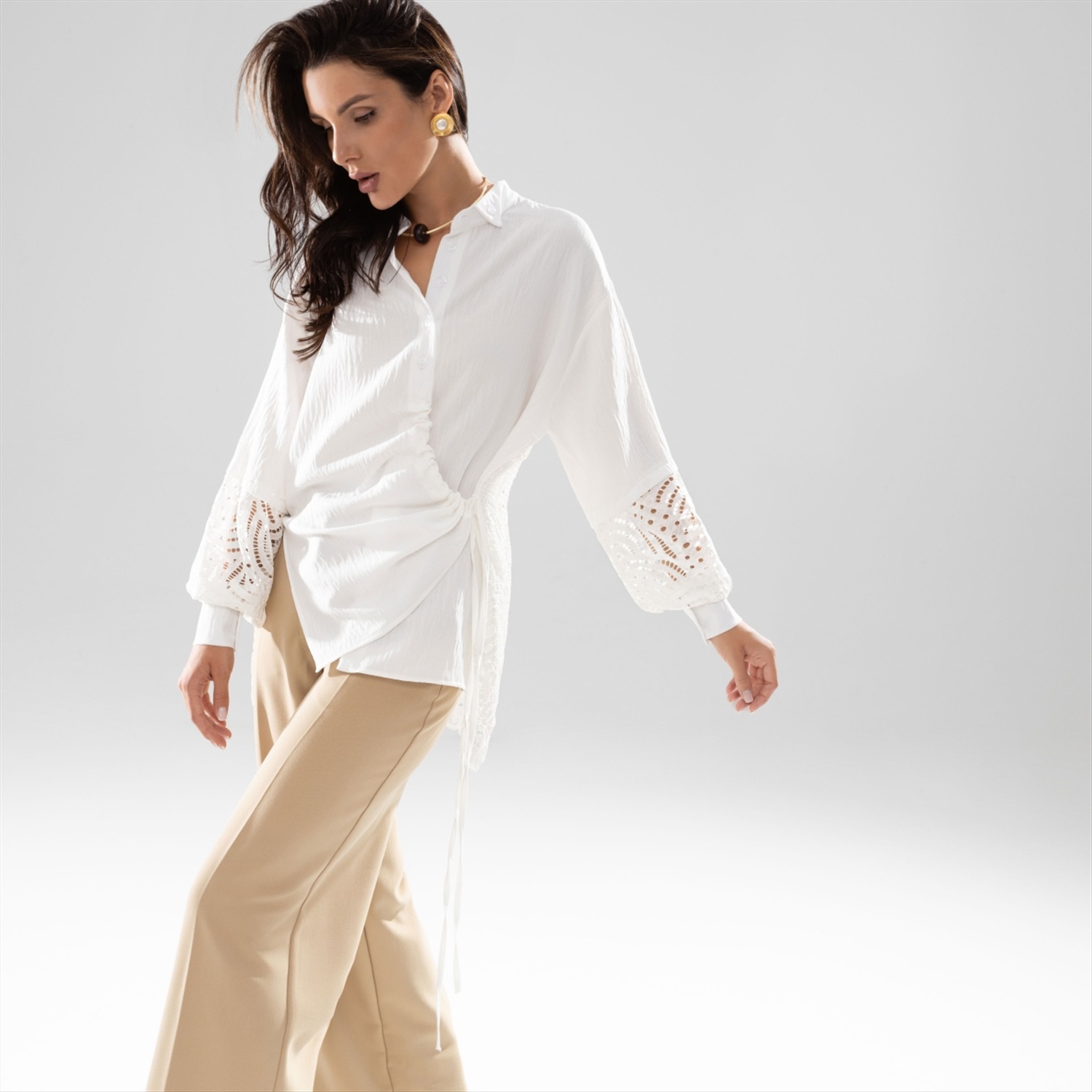 Футболка с кружевом, Фирменное приветствие (капучино) 6 фото