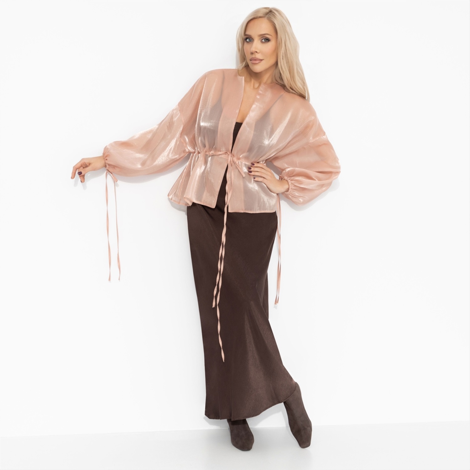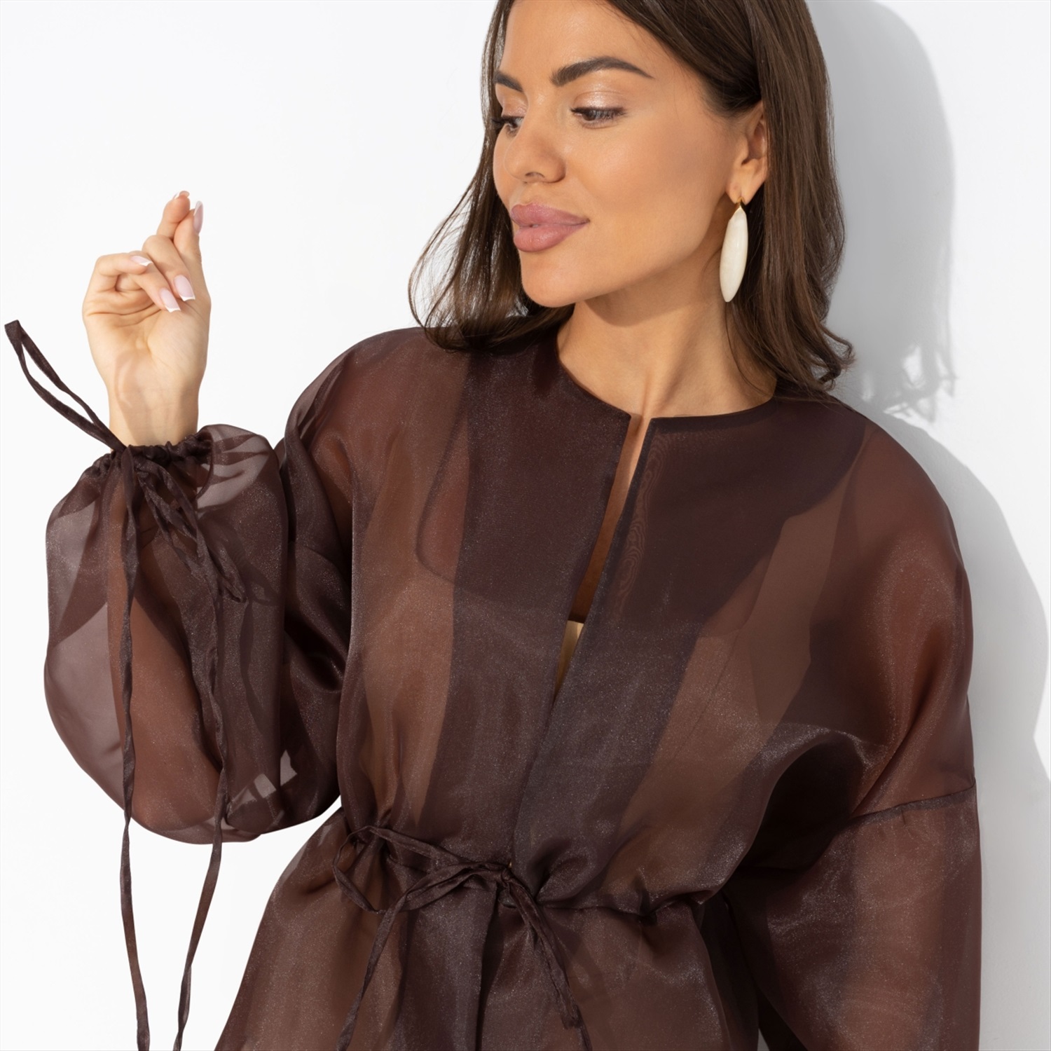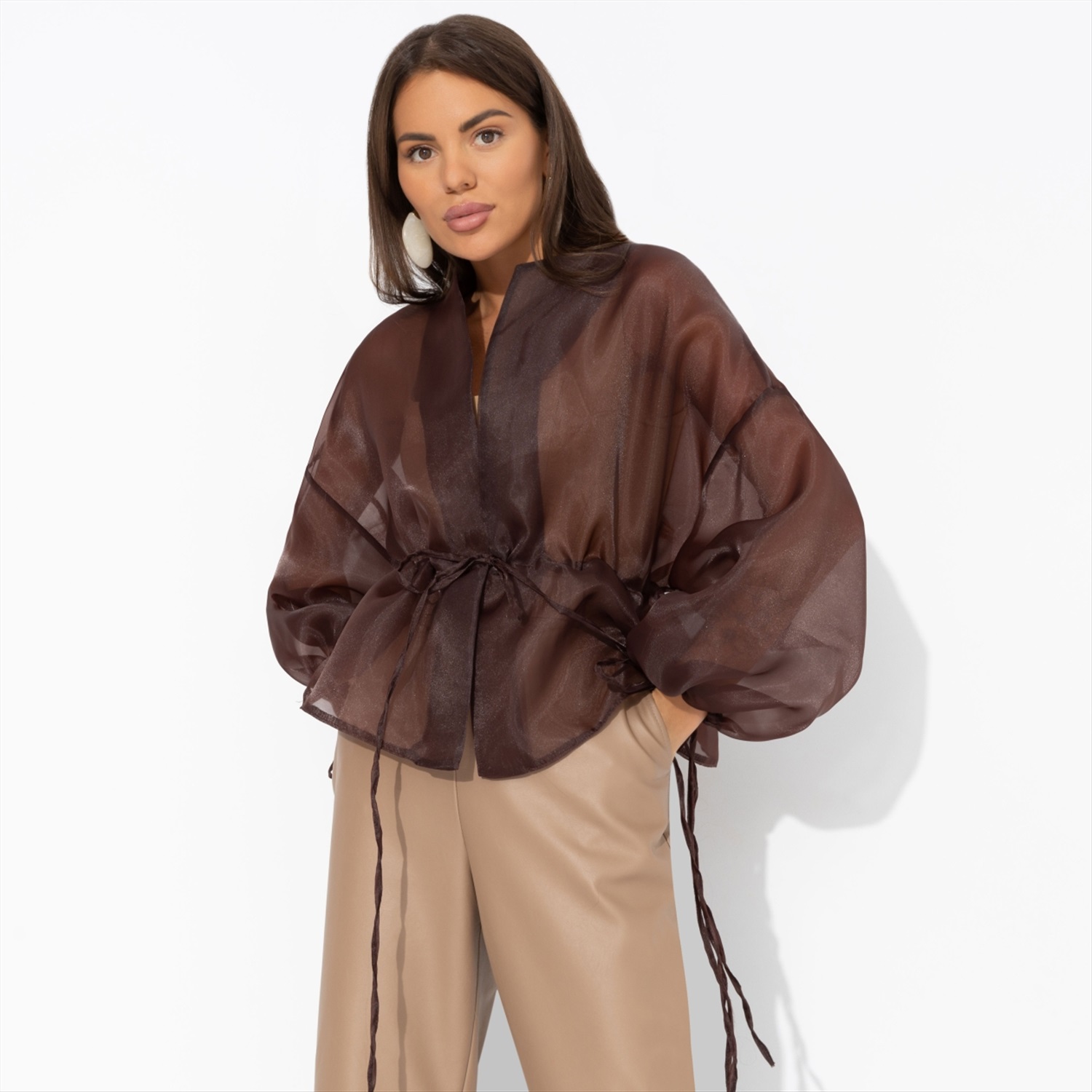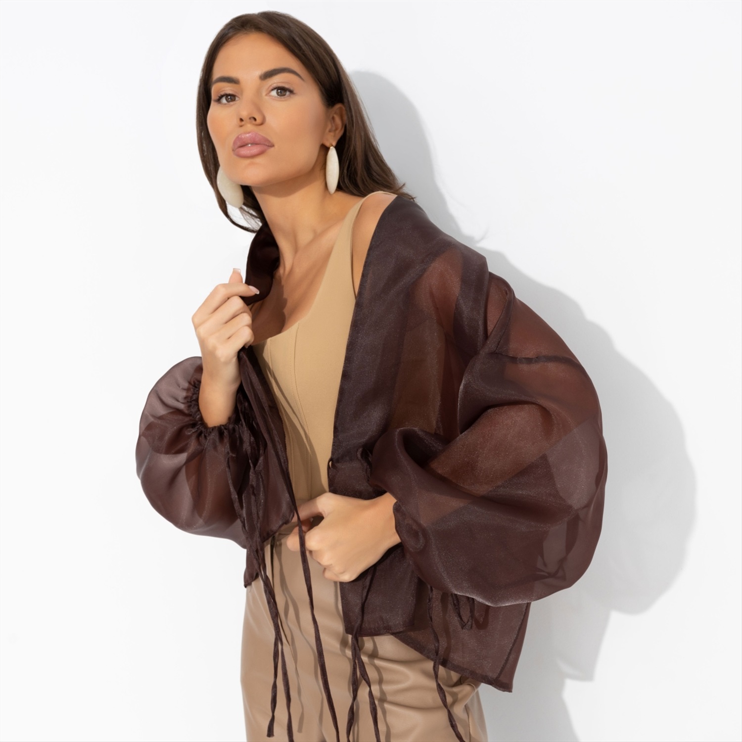 Жакет из полупрозрачной ткани, Вершина восхищения (коричневый) 8 фото