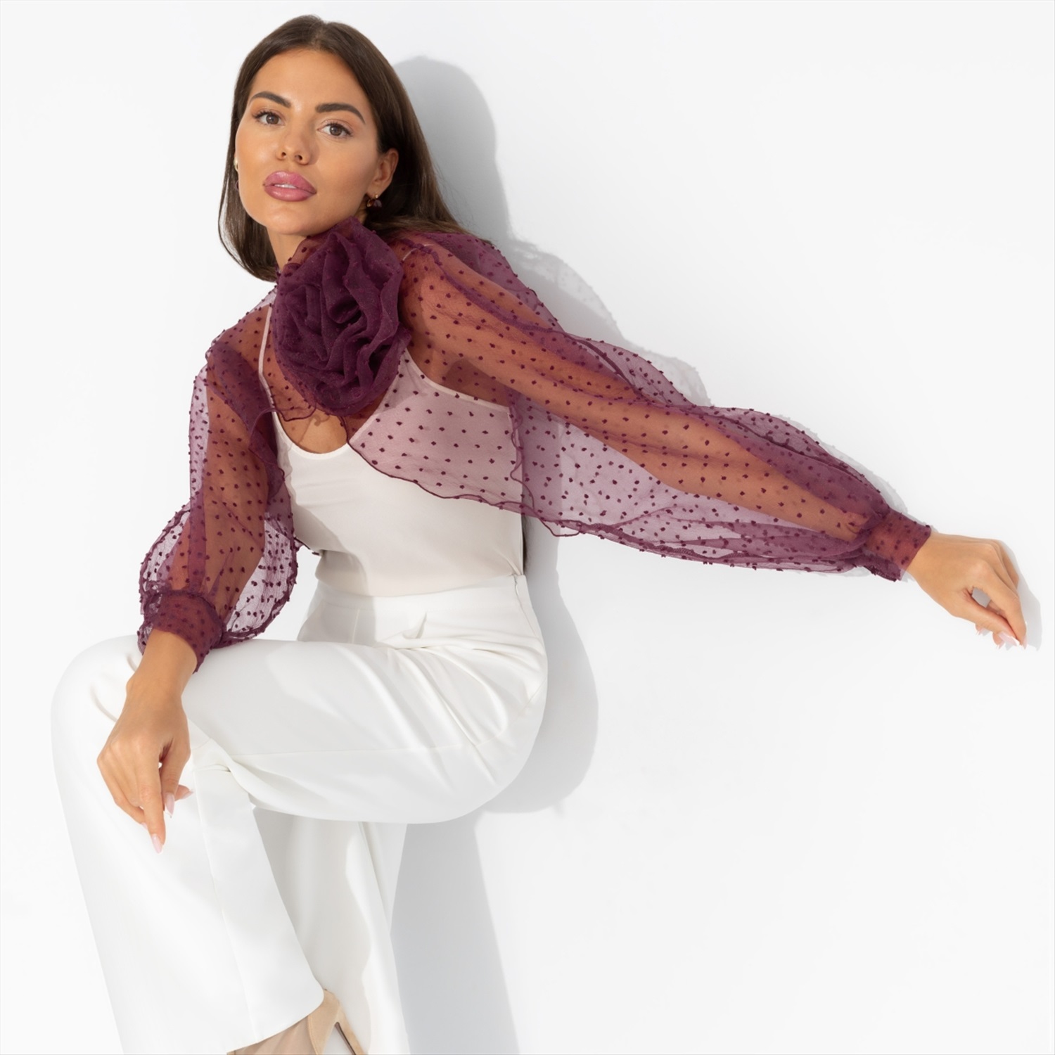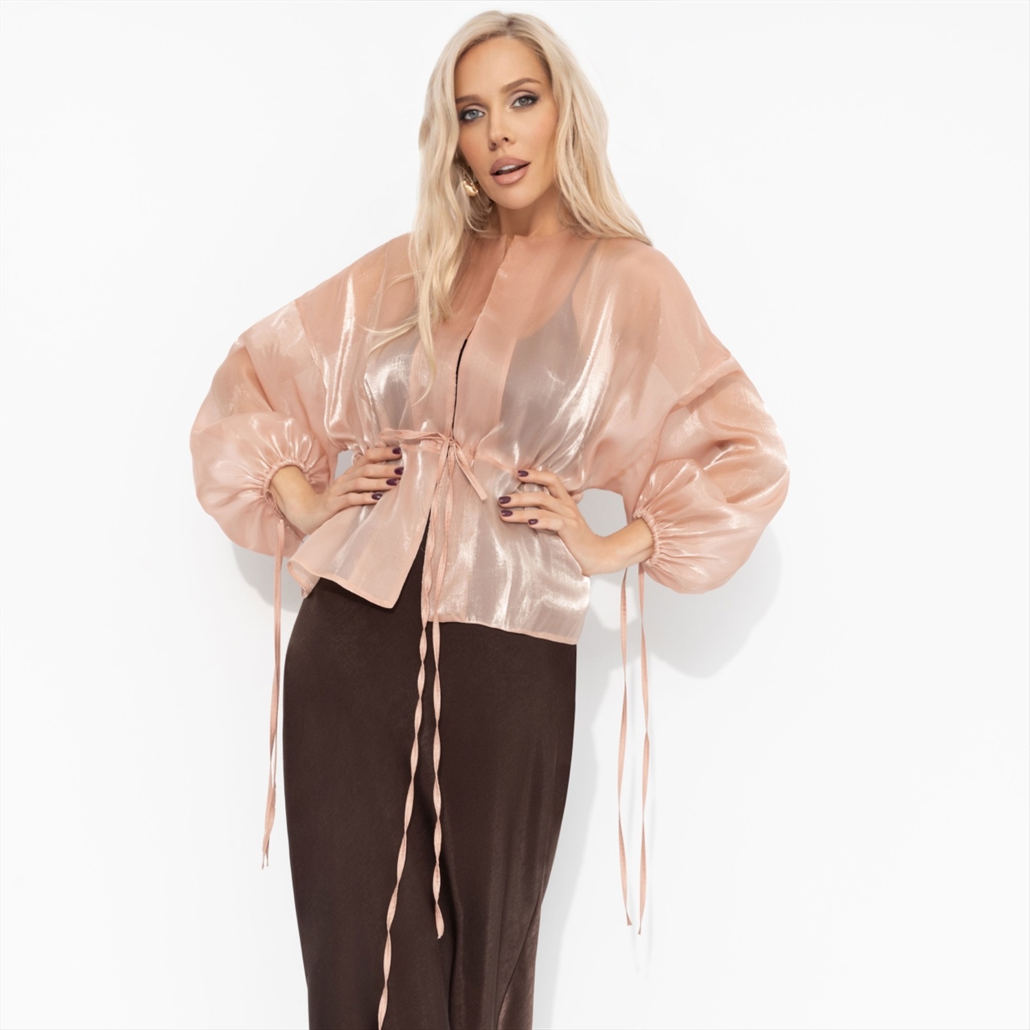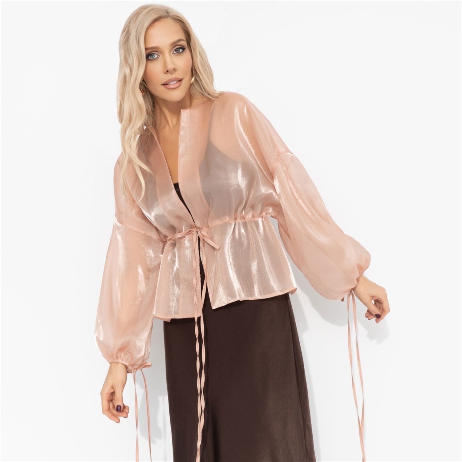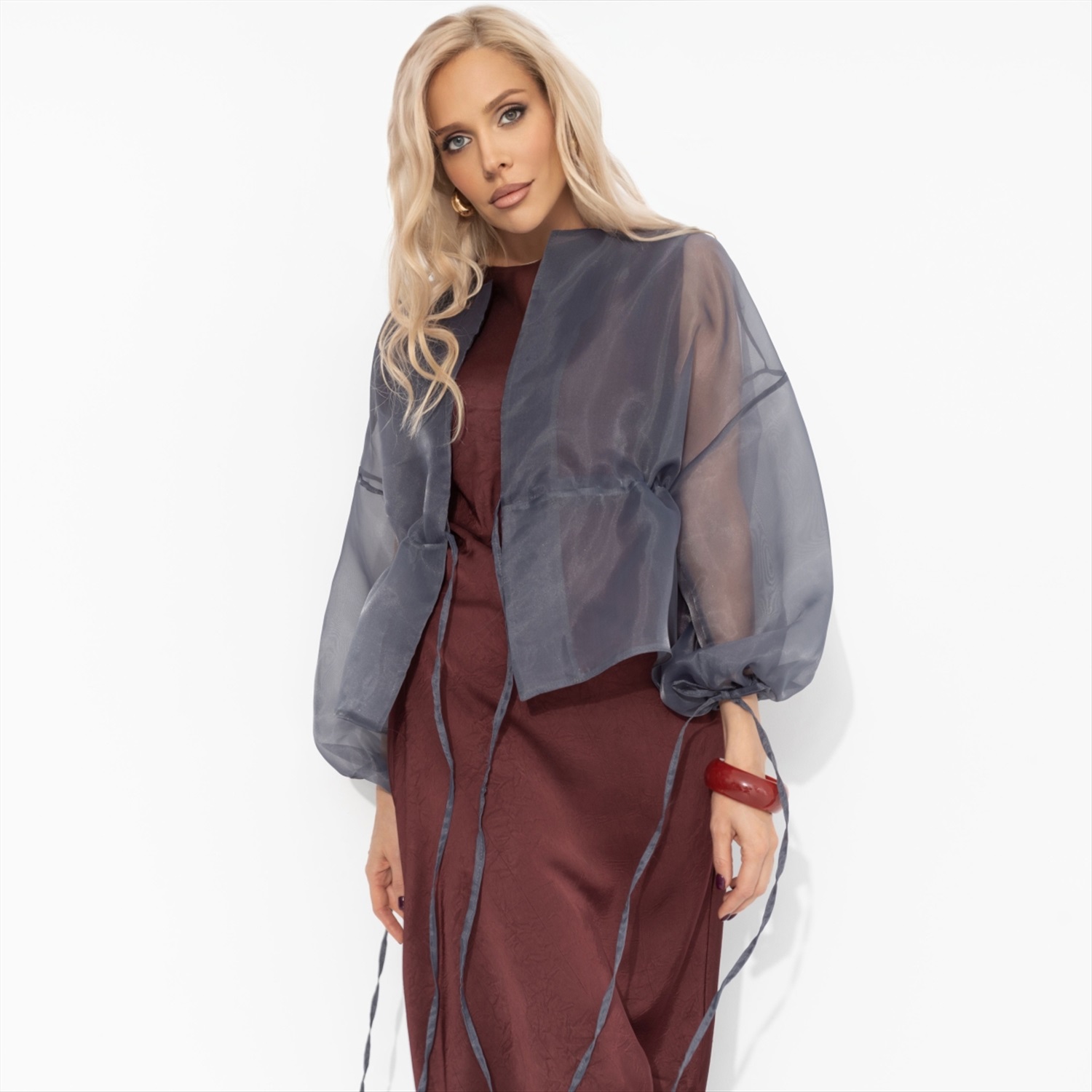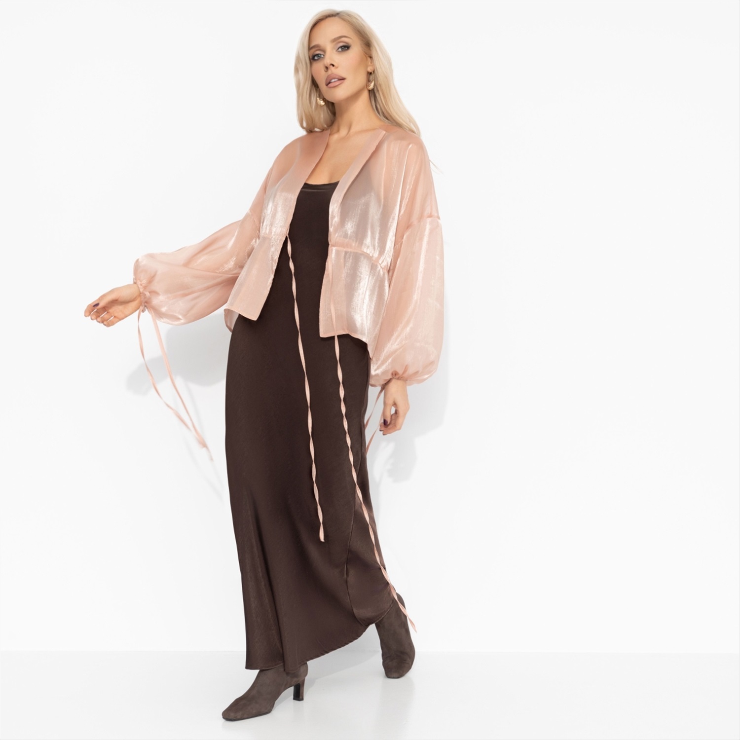 Жакет из полупрозрачной ткани, Вершина восхищения (коричневый) 8 фото
