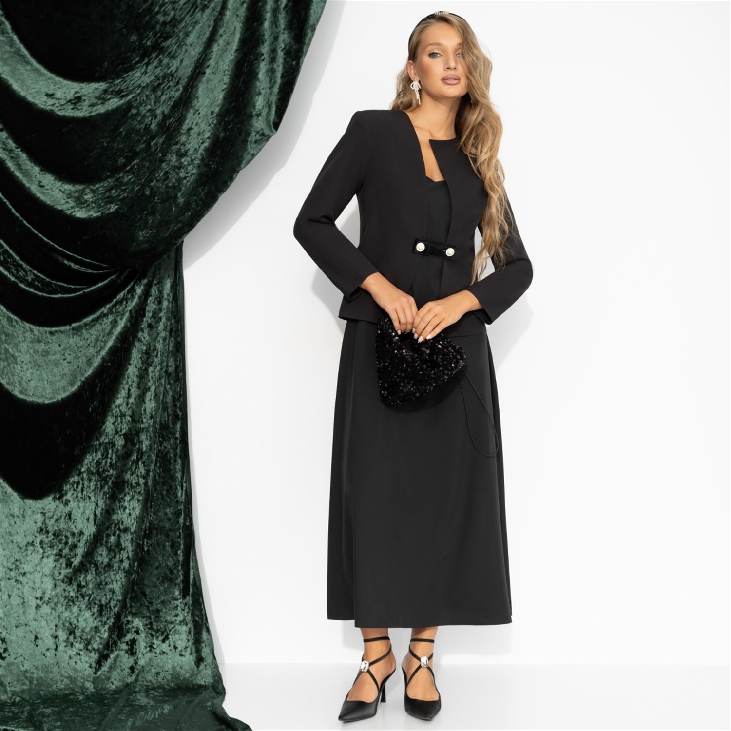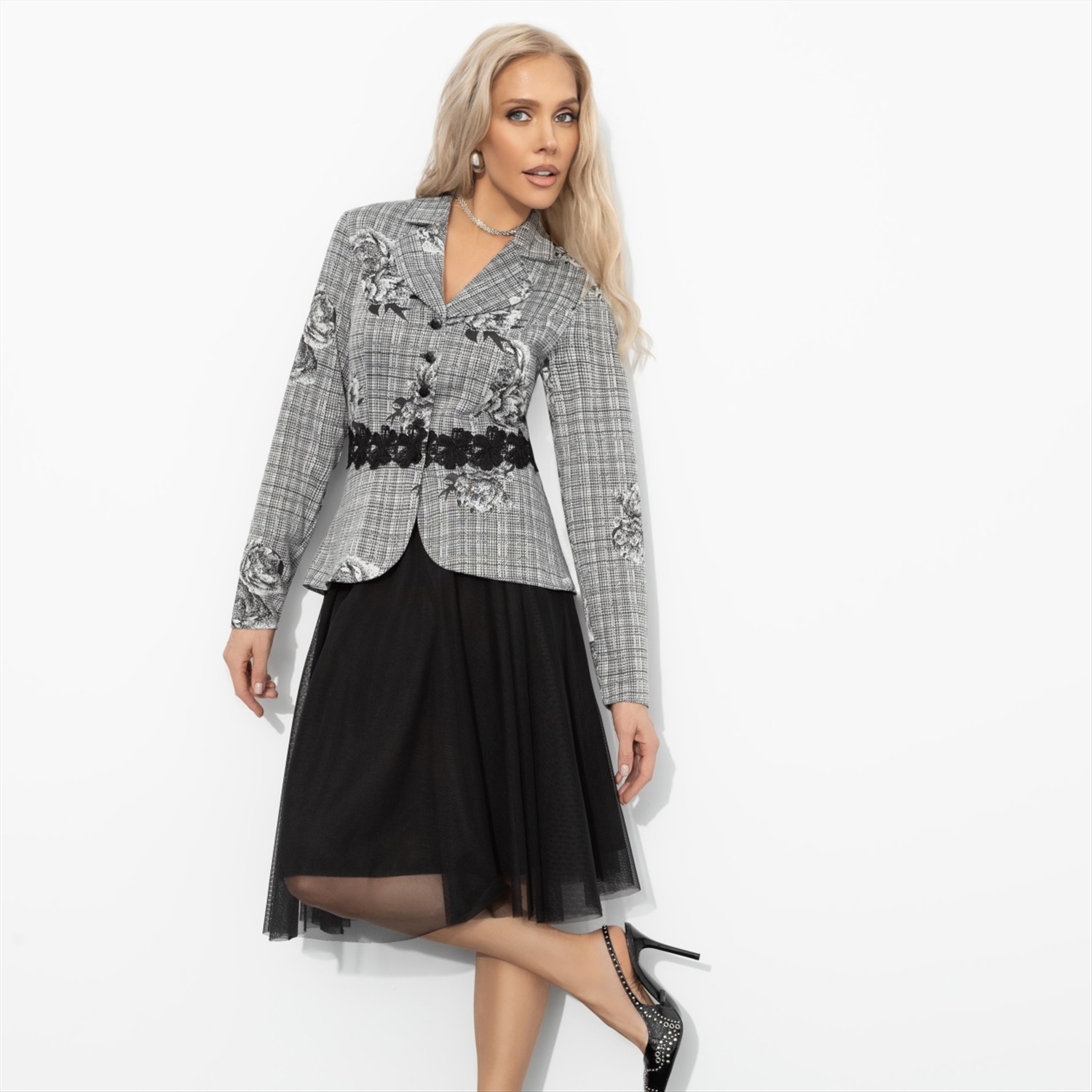 Костюм с юбкой нарядный, Очарование момента (фантазия, 2 в 1, с поясом) 6 фото