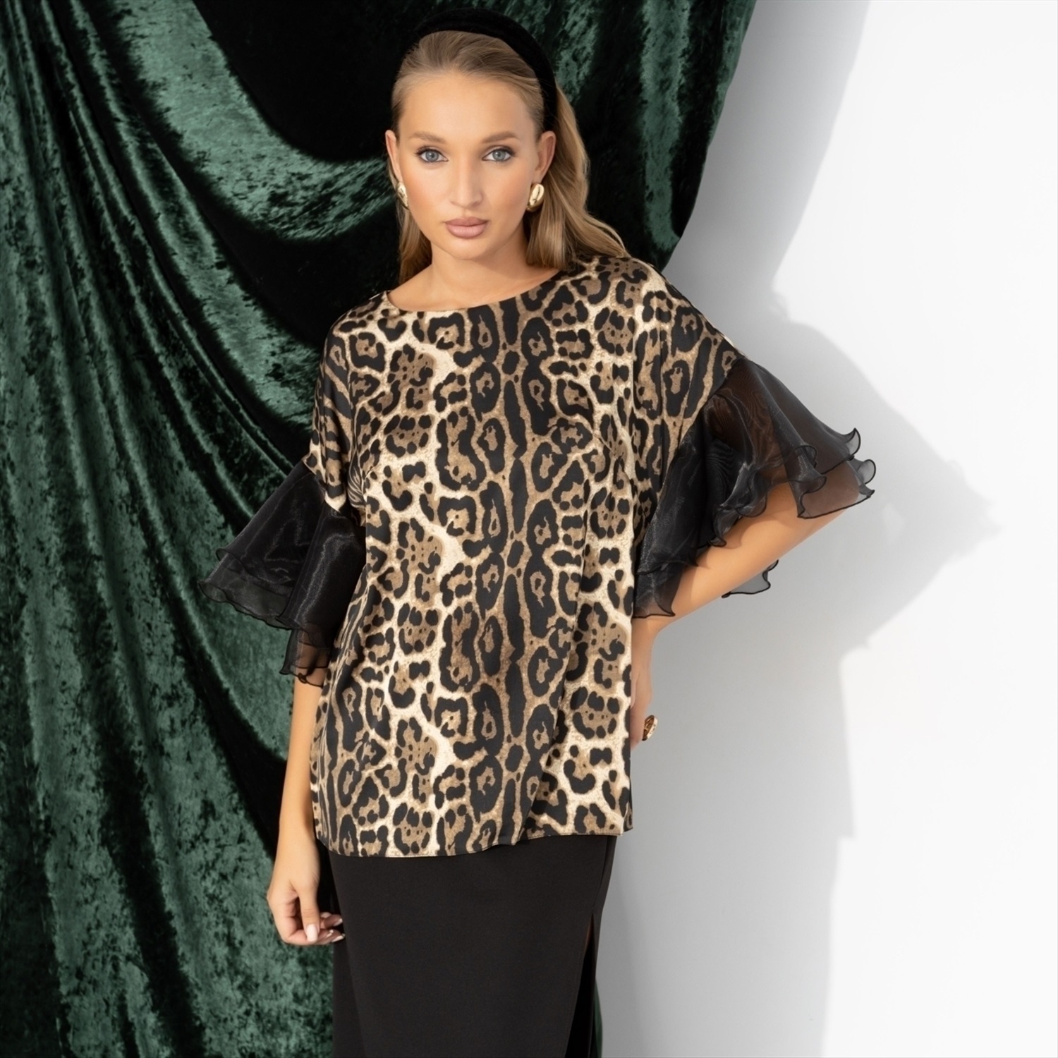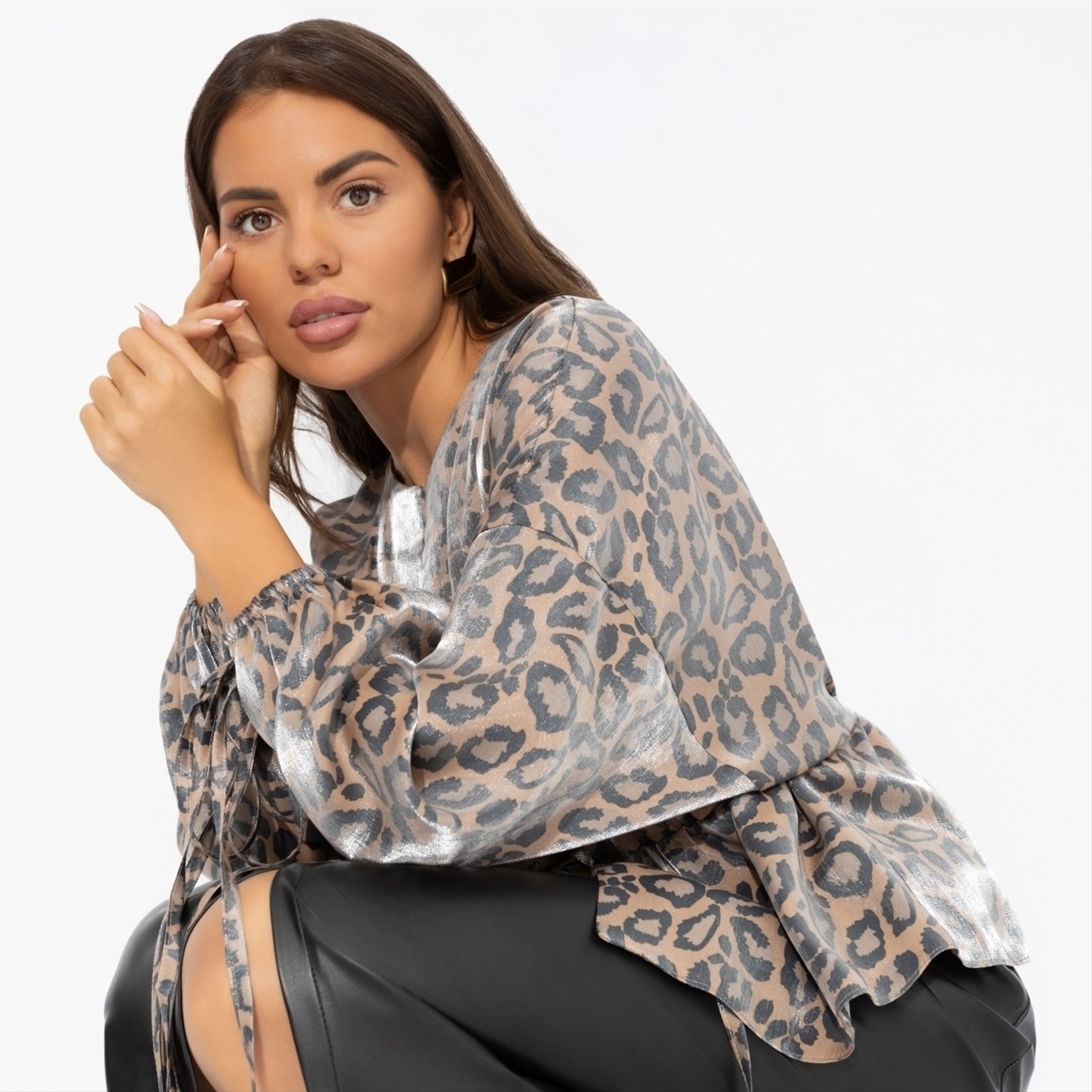 Блуза из шёлка и органзы, Молниеносная влюбленность (леопард) 8 фото