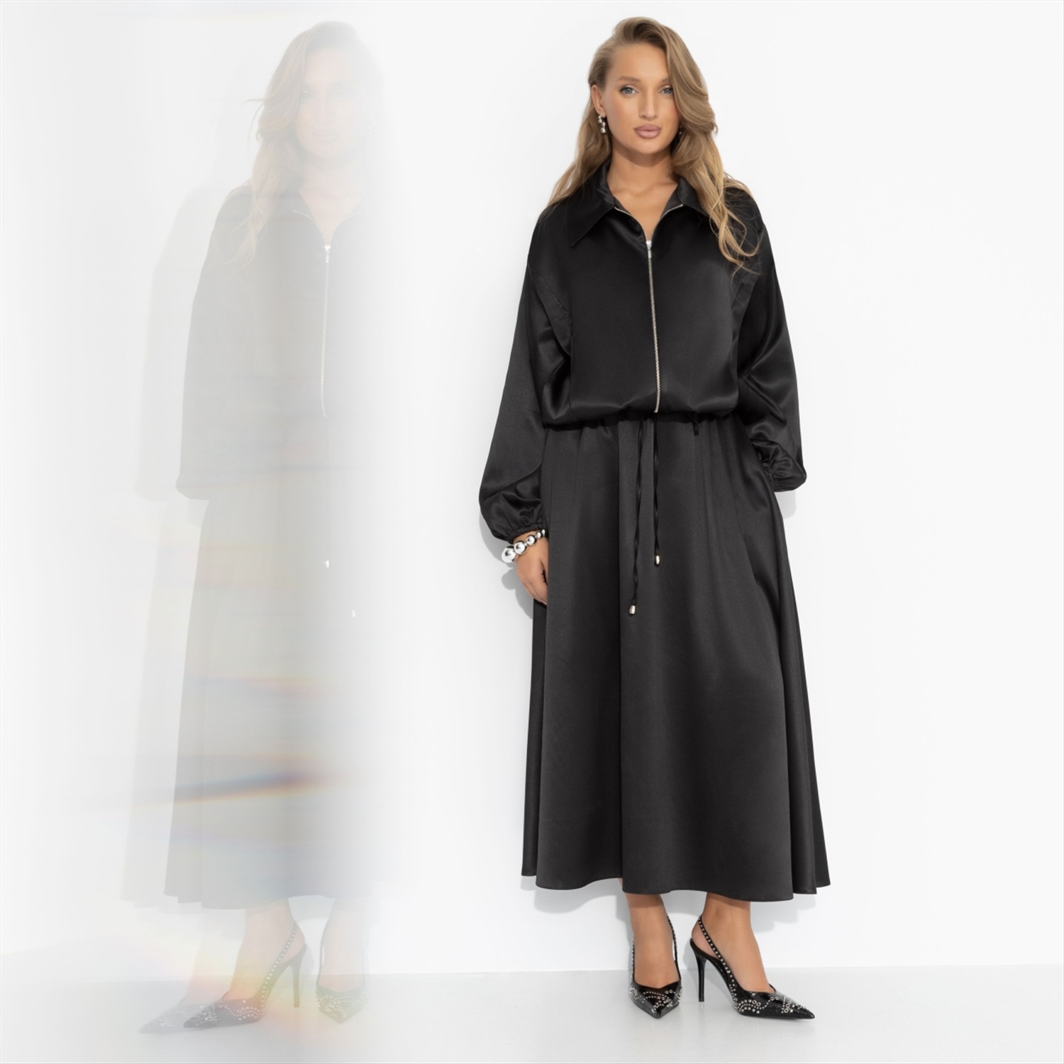Платье атласное, Стройность в комплекте 7 фото