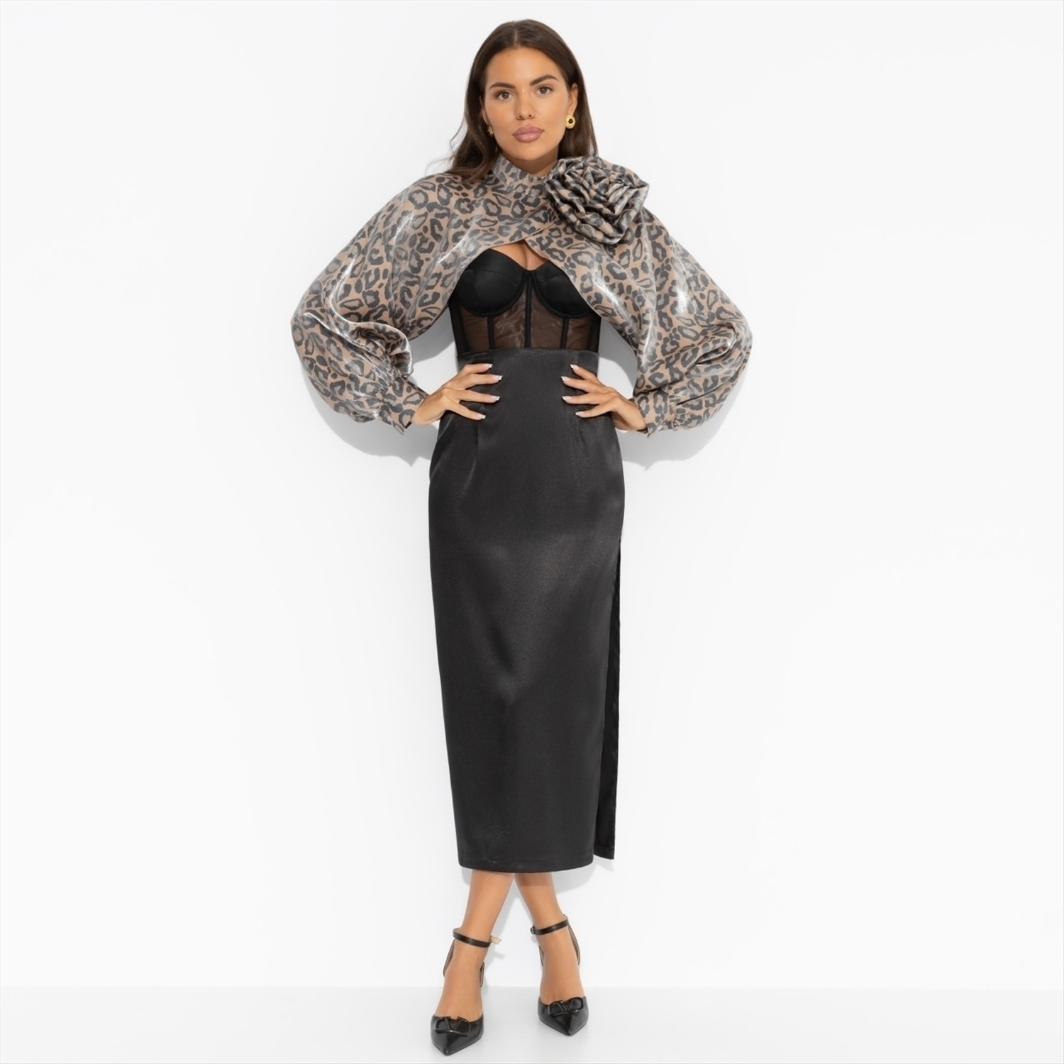 Болеро с перламутровым блеском, Деловой взгляд (леопардовое, с брошкой) 6 фото