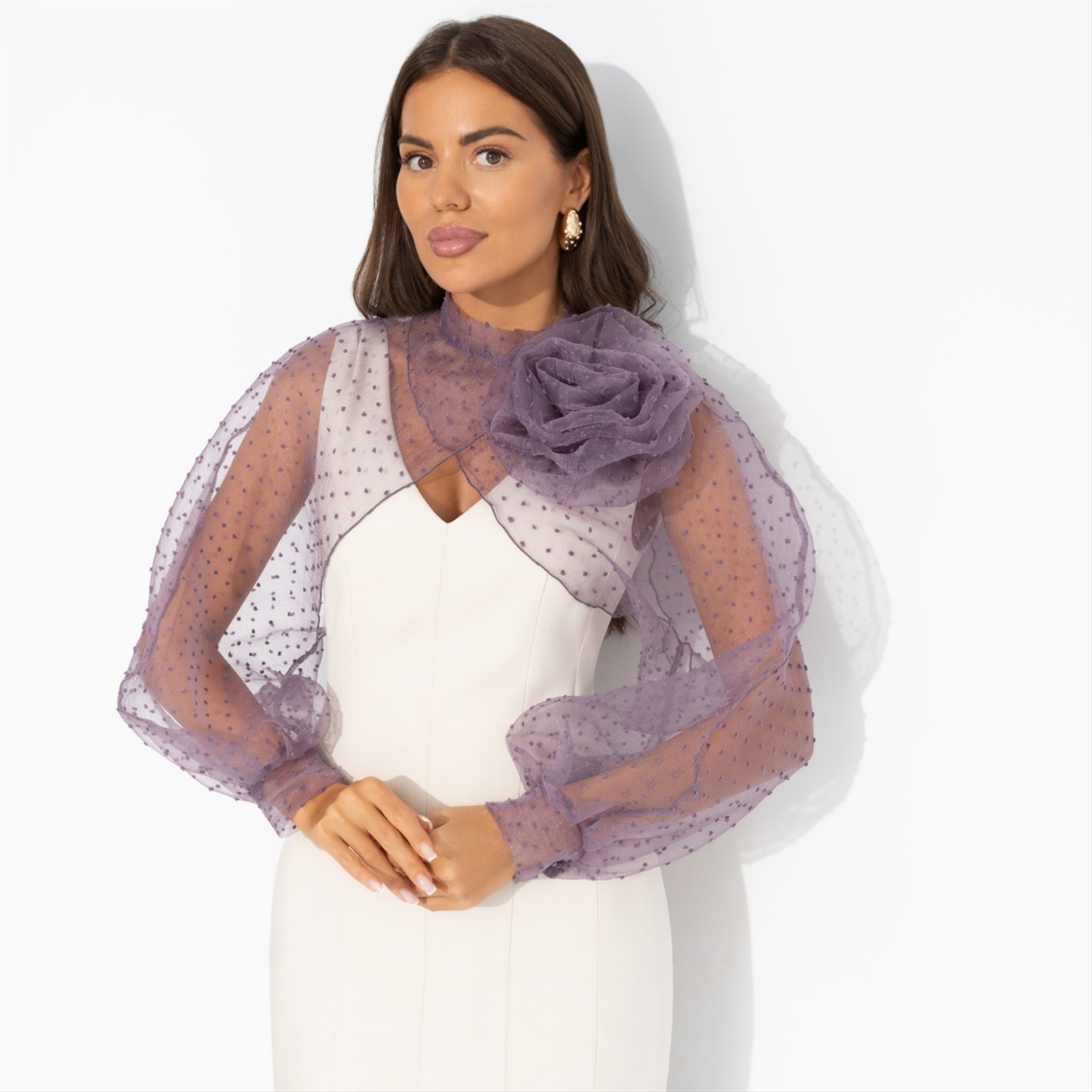 Болеро нарядное со съемным декором, Деловой взгляд (сиреневое, с брошкой) 7 фото