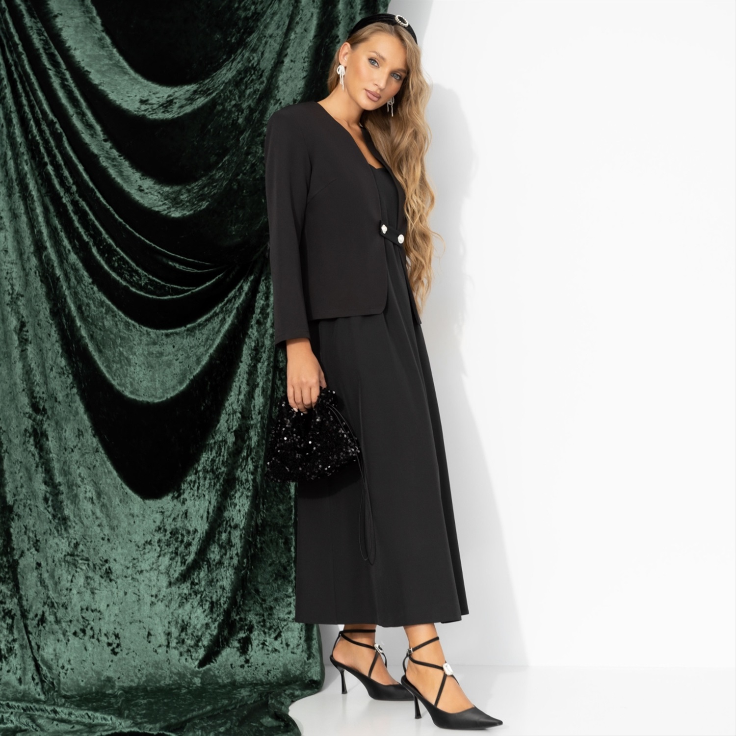 Платье из бархата с драпировкой, Роковая фантазия (полночь) 7 фото