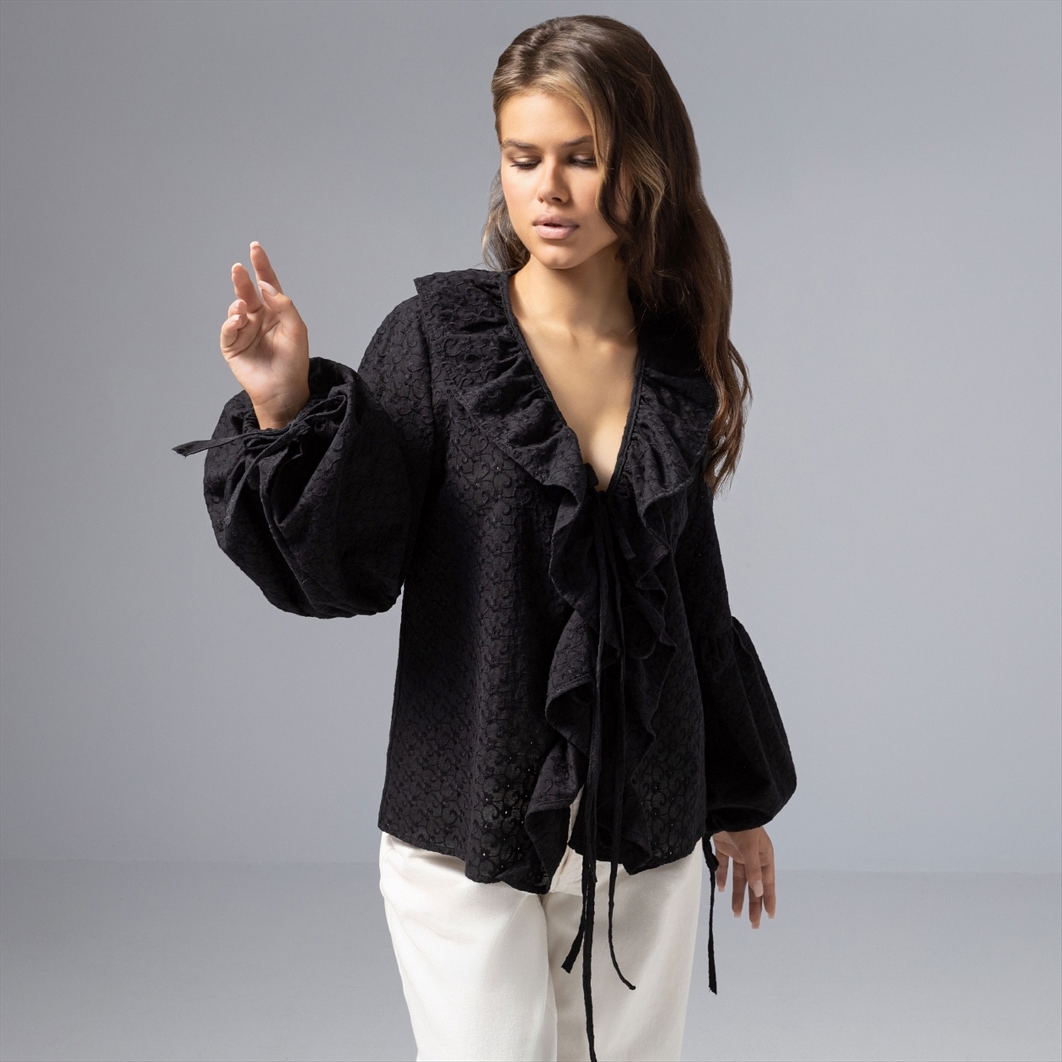 Блуза из хлопка, Пленительная грация (черная) 10 фото