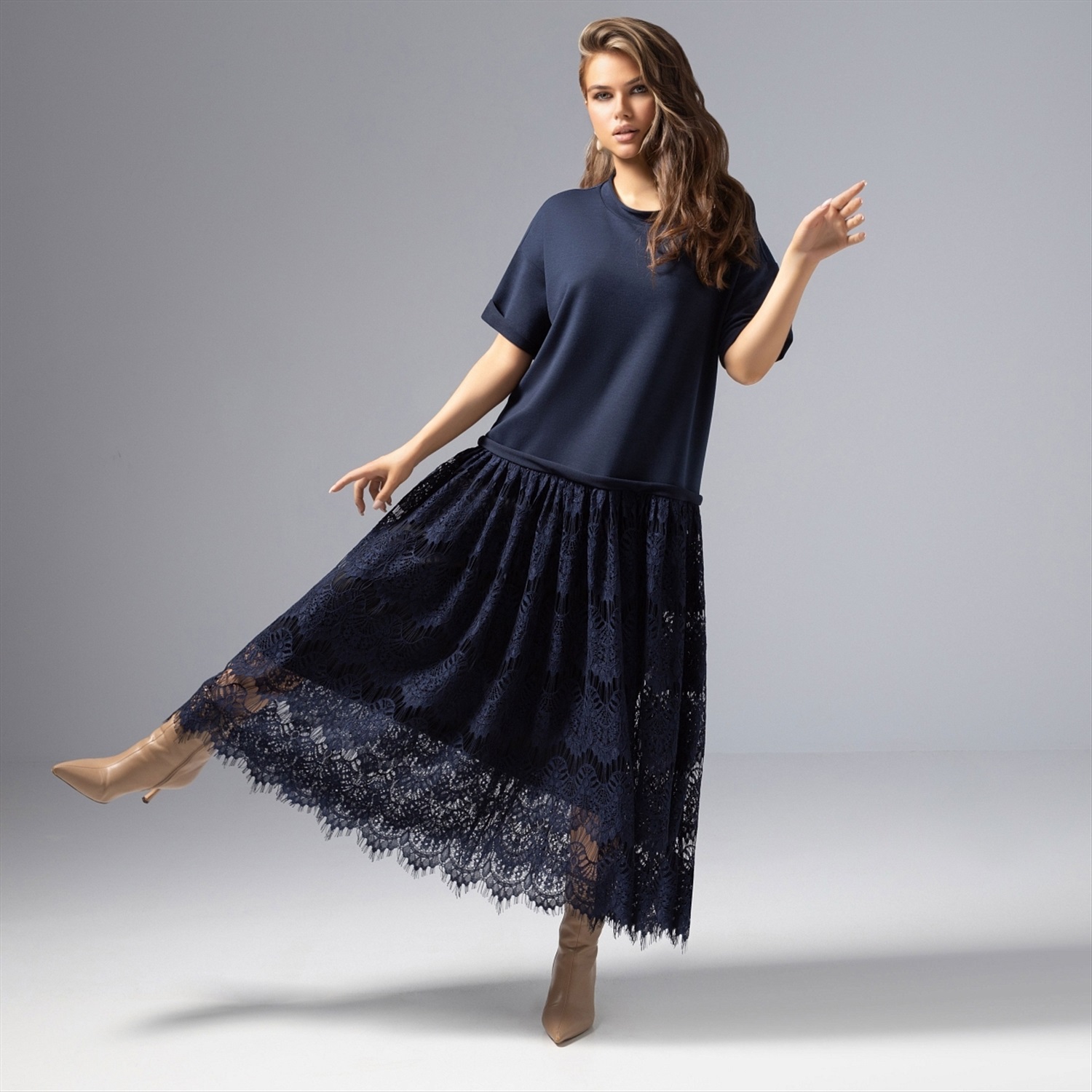 Платье комбинированное с кружевом, Откровенный шик (магия) 10 фото