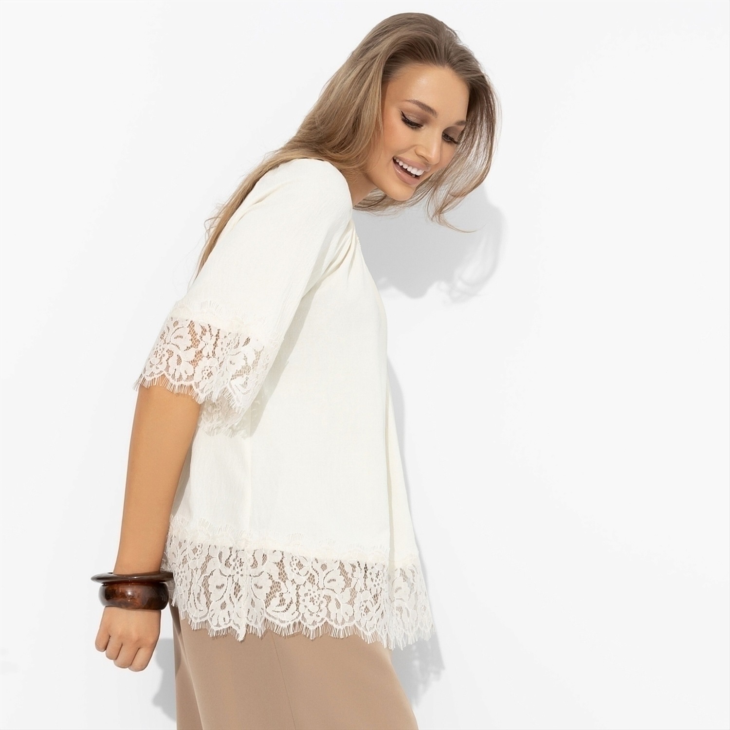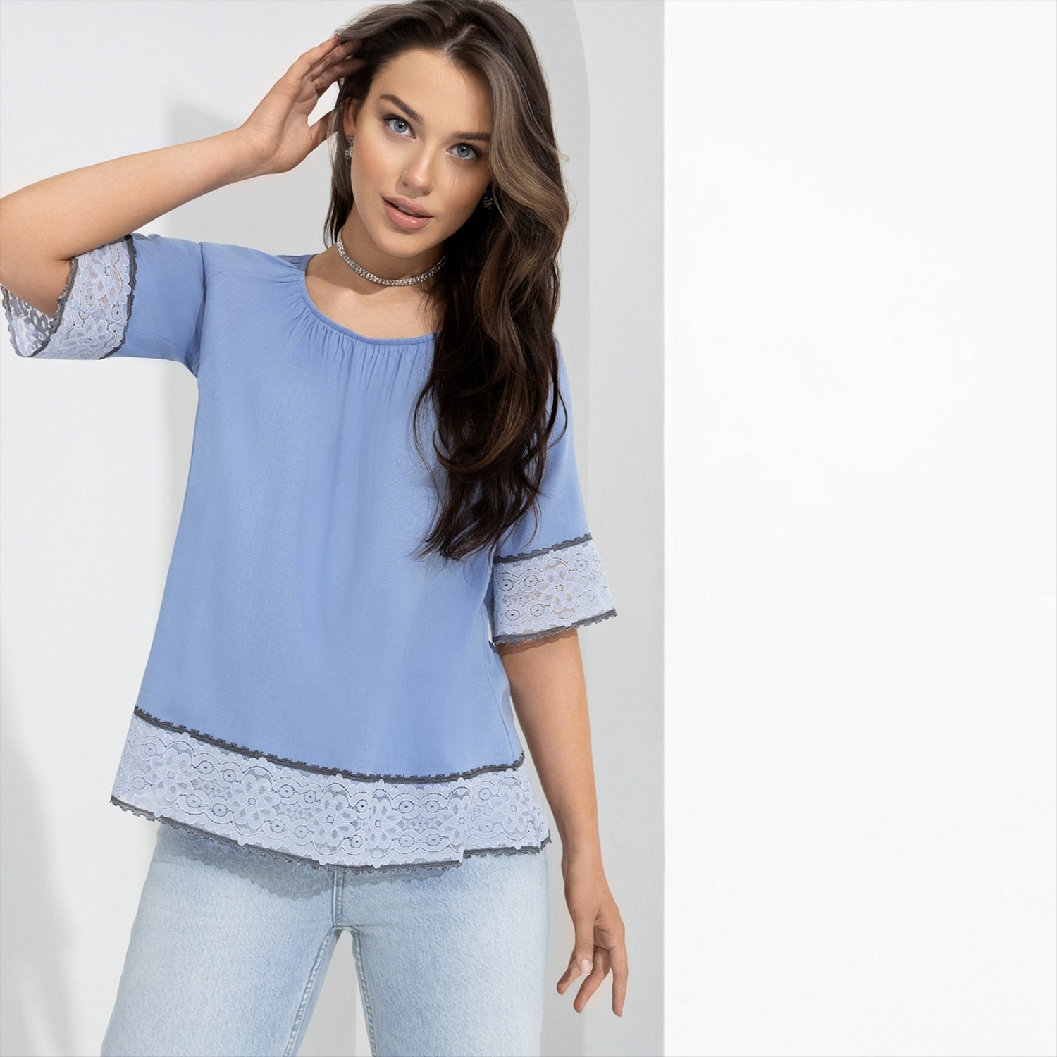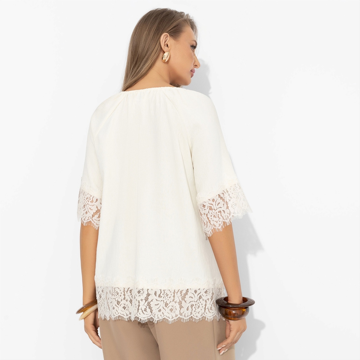 Блуза свободного кроя с кружевом, Путешествие в Прованс (нежная) 10 фото