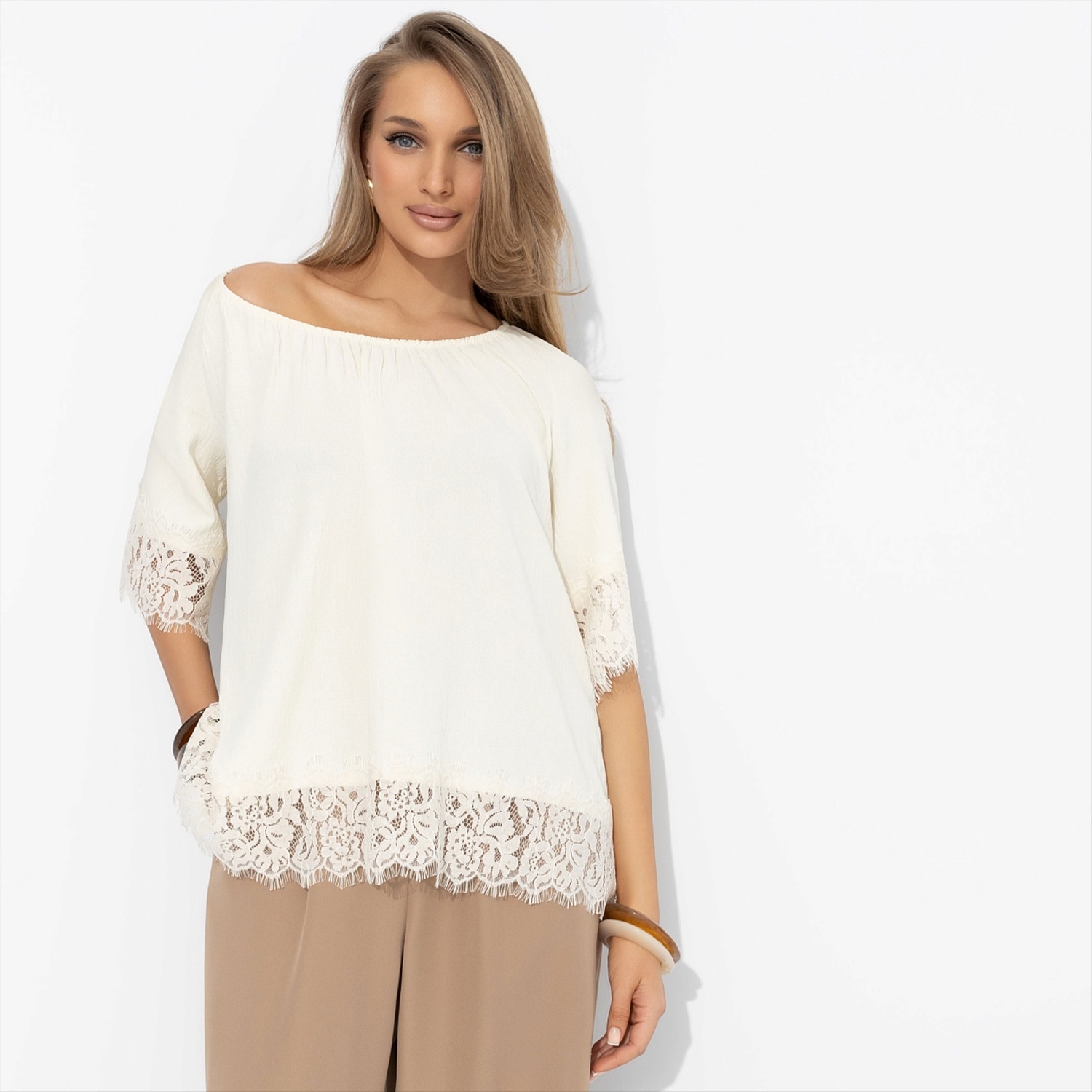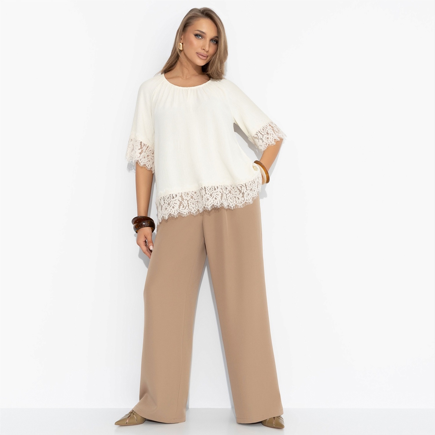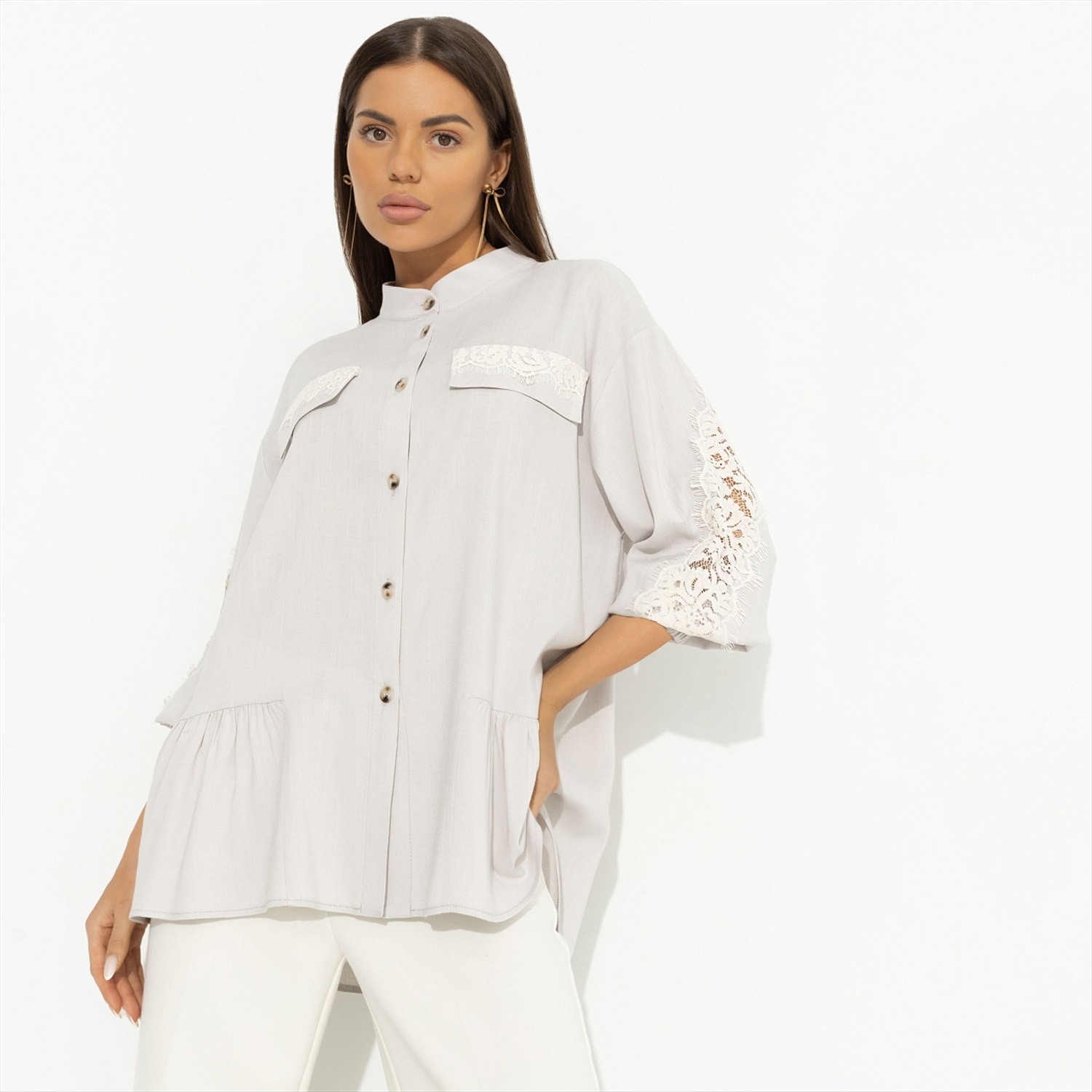 Блуза свободного кроя с кружевом, Путешествие в Прованс (нежная) 10 фото