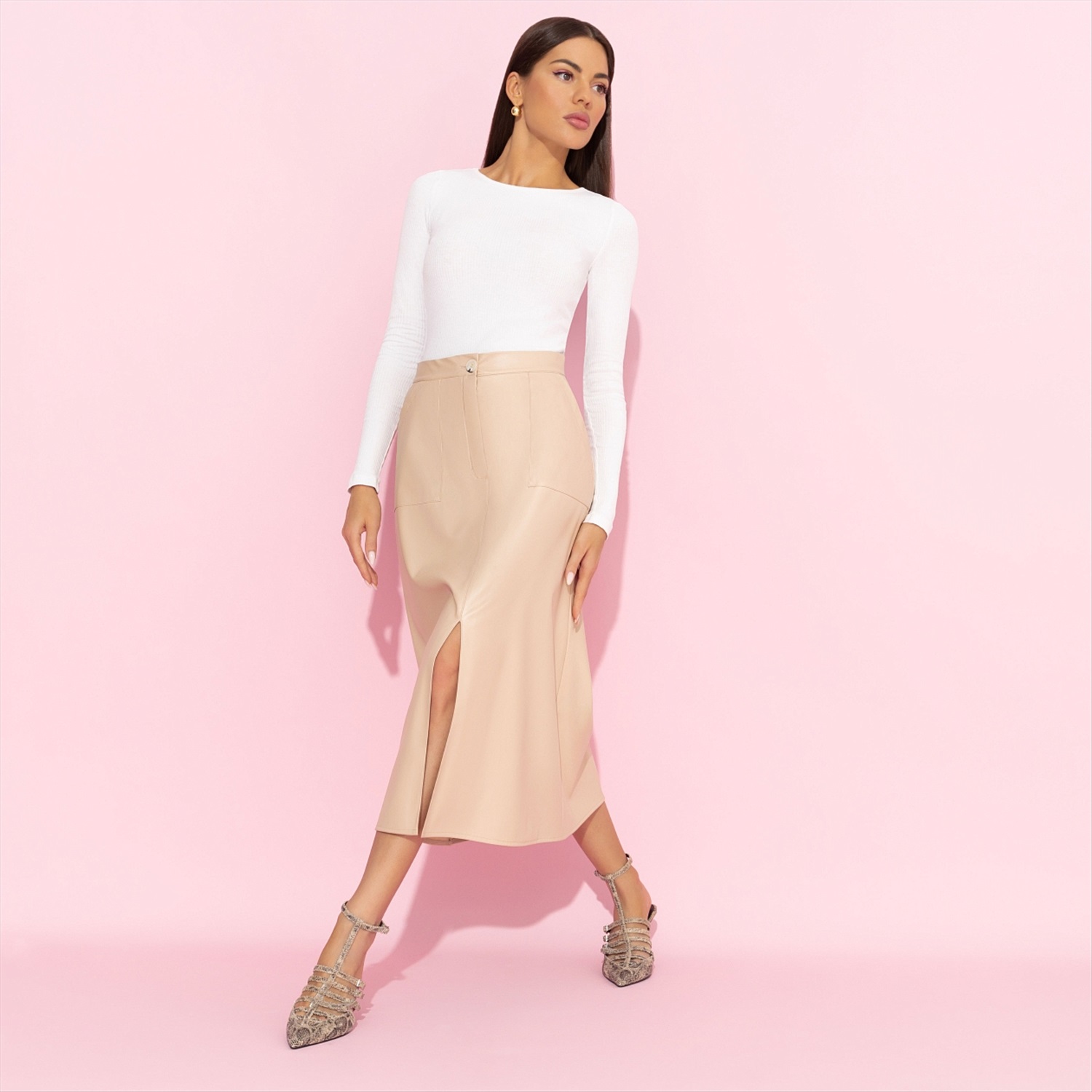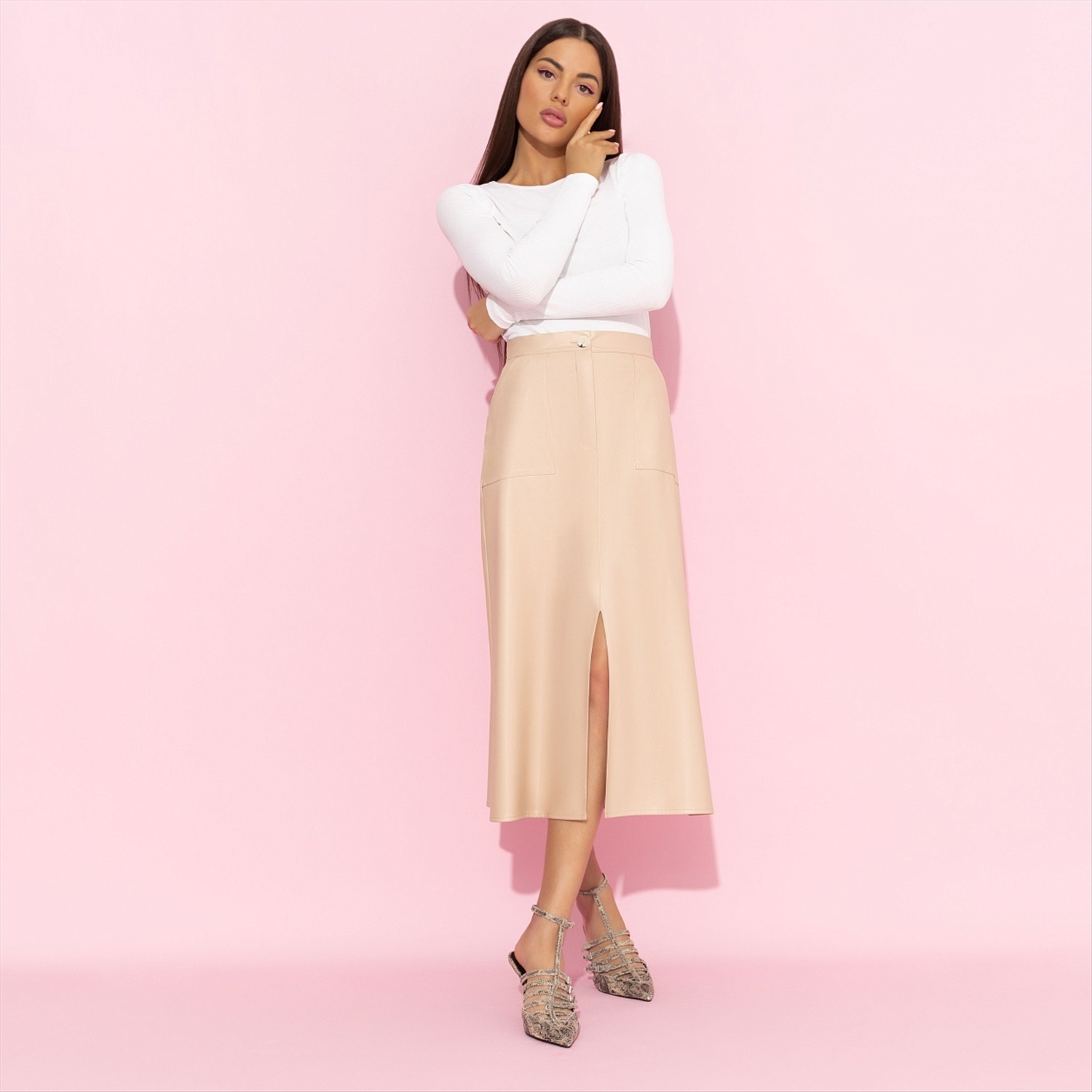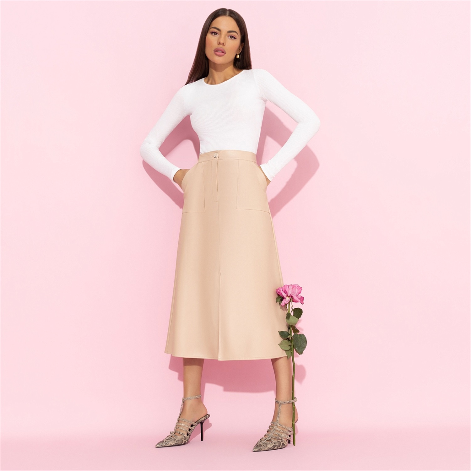 Юбка с карманами, Откровенно шикарная (беж) 6 фото