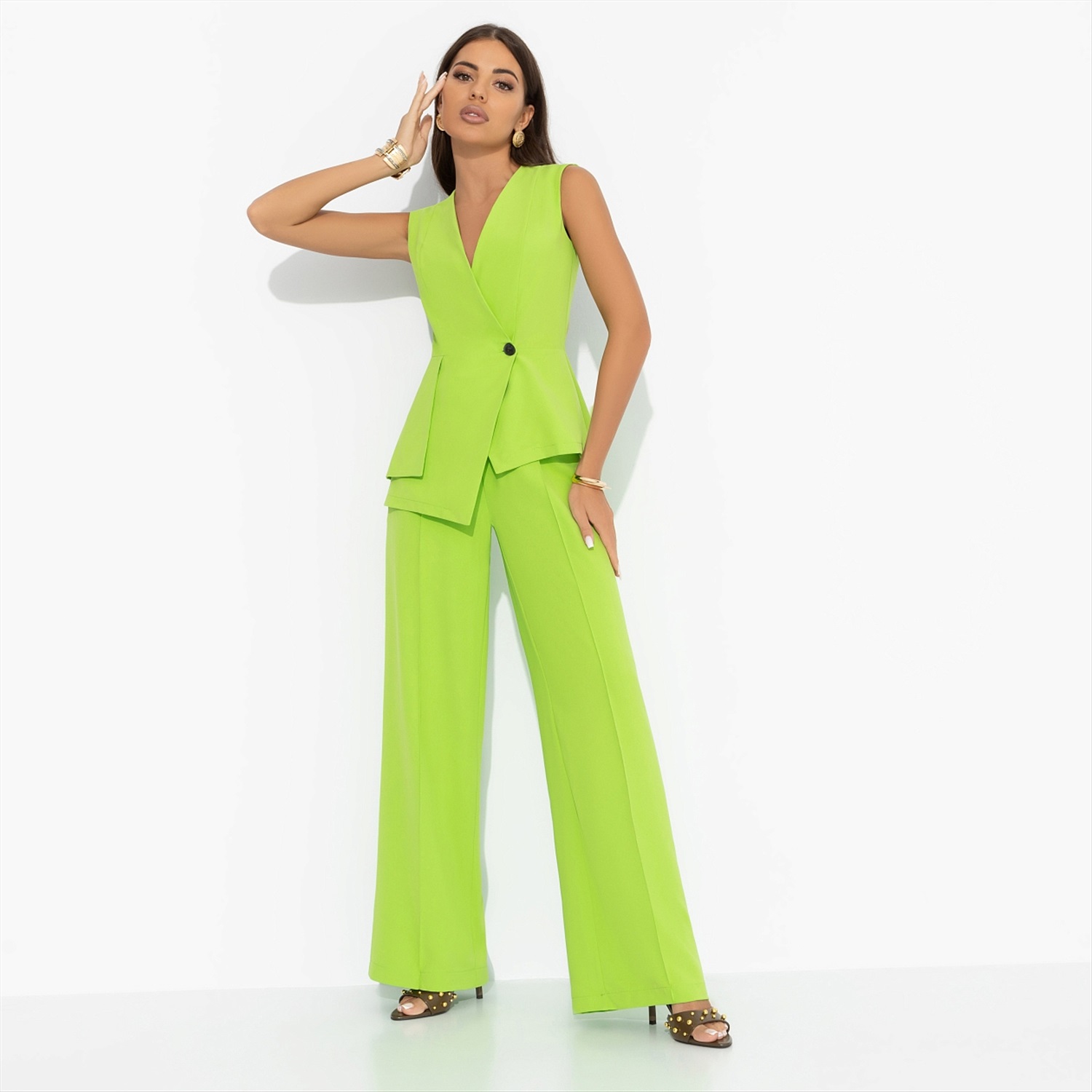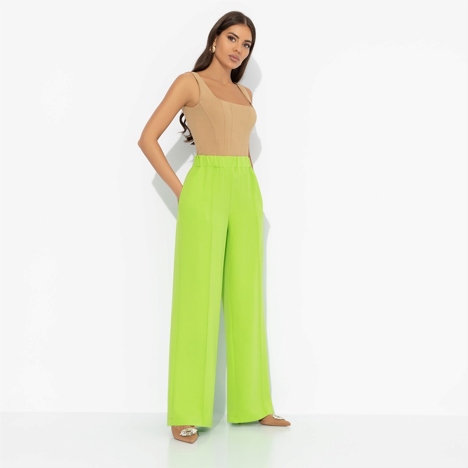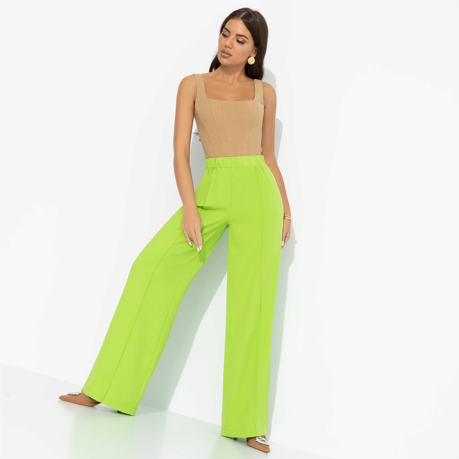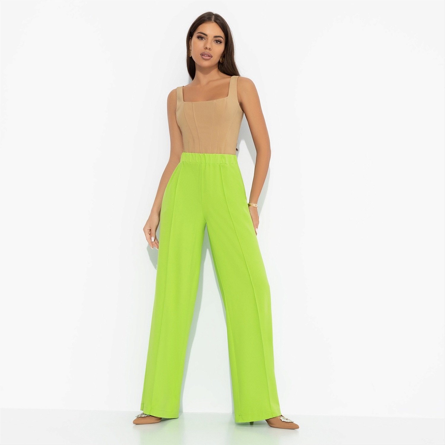 Брюки со стрелками на резинке, Создавай настроение (лайм) 6 фото