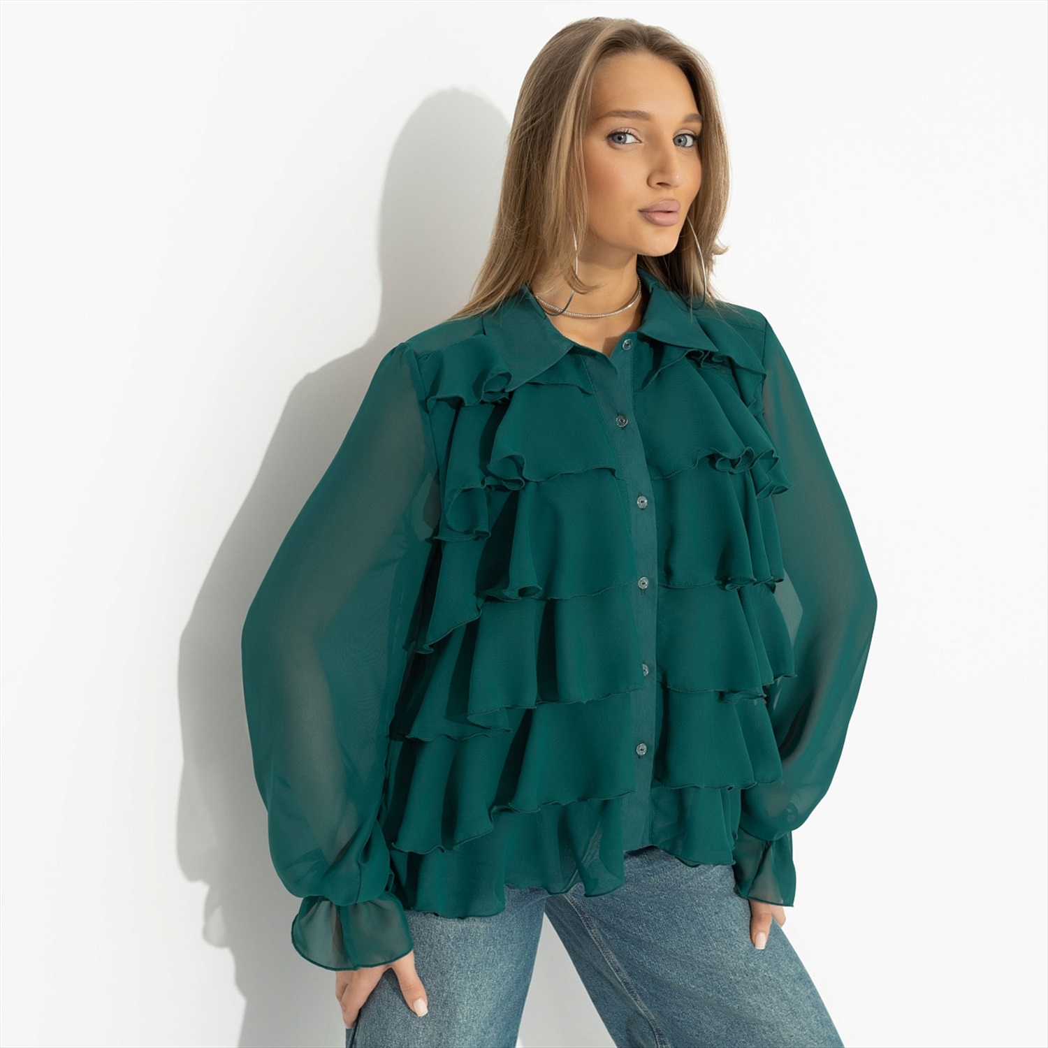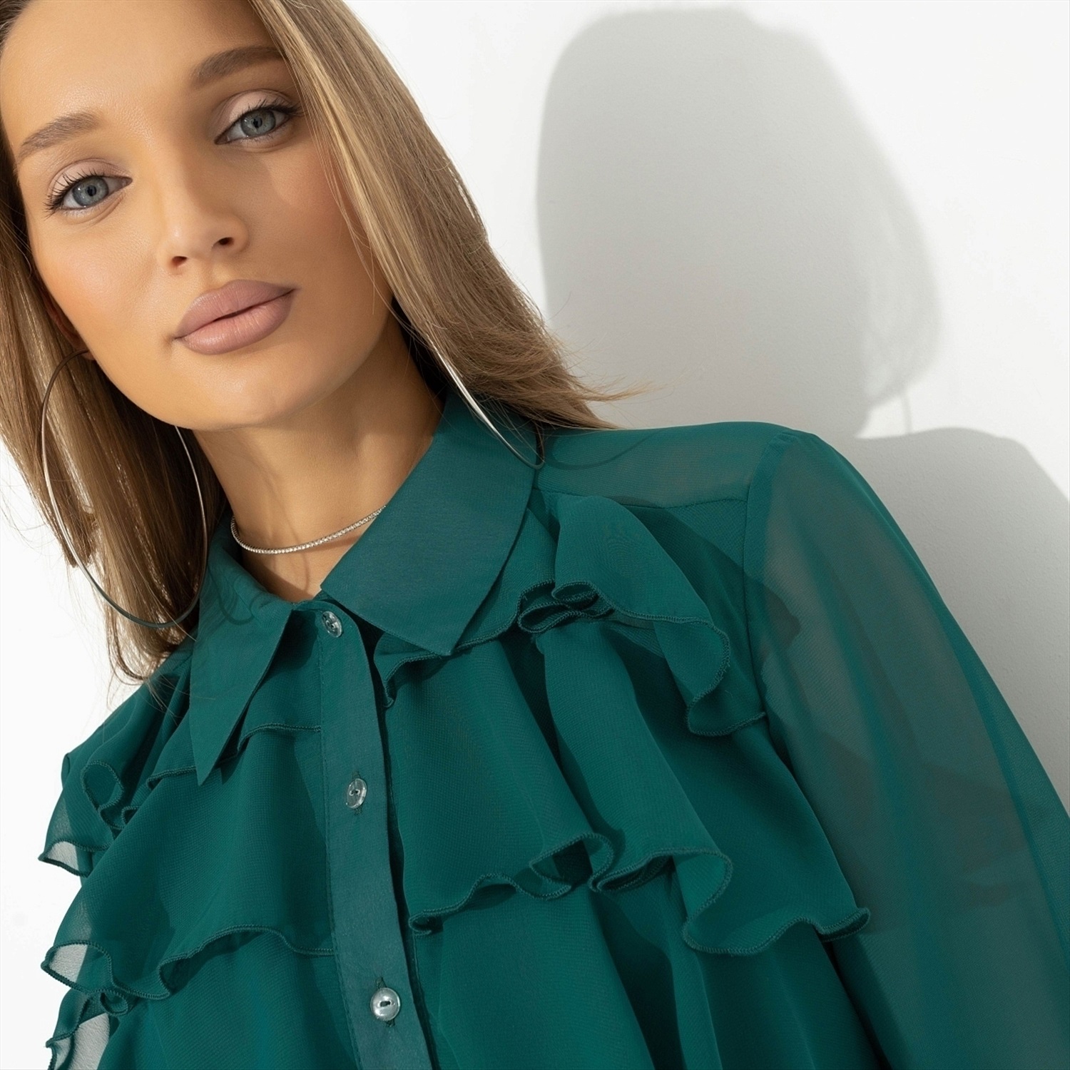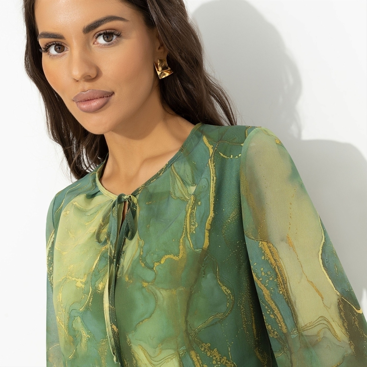 Блуза на пуговицах, Гипнотический стиль (зеленая) 6 фото