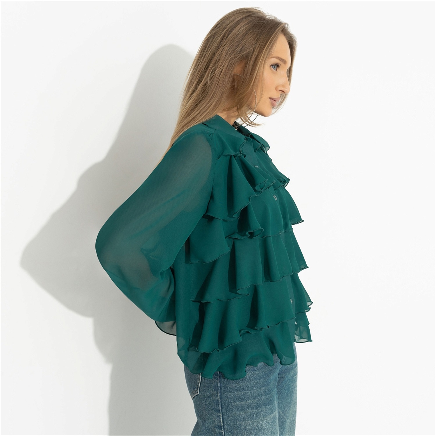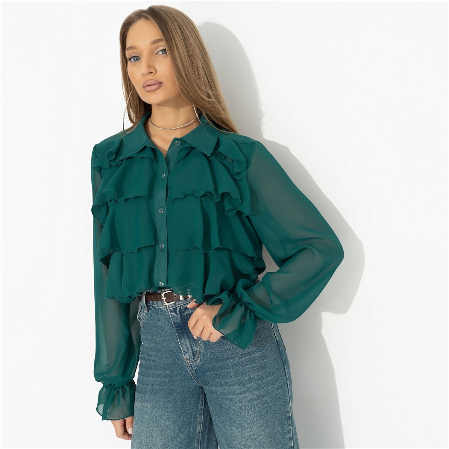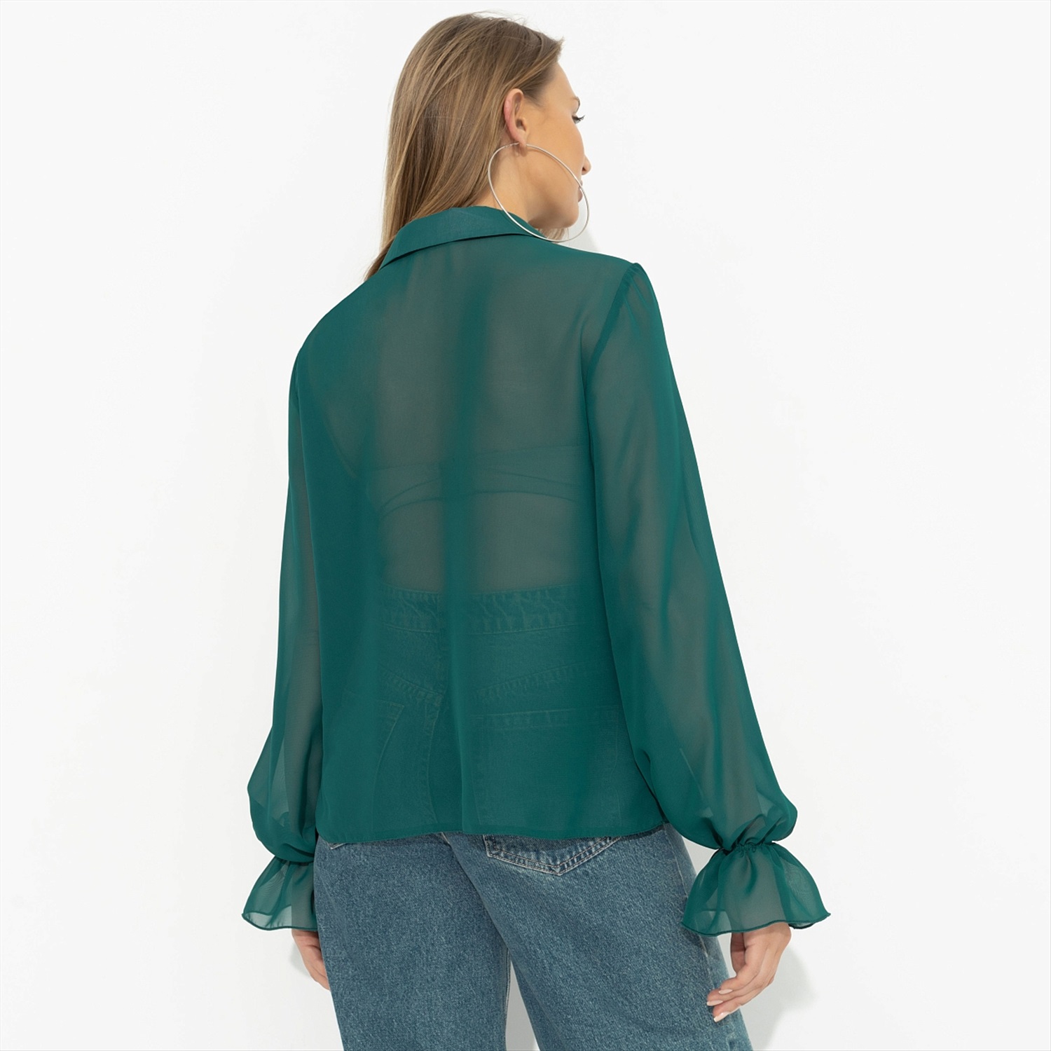 Блуза на пуговицах, Гипнотический стиль (зеленая) 6 фото
