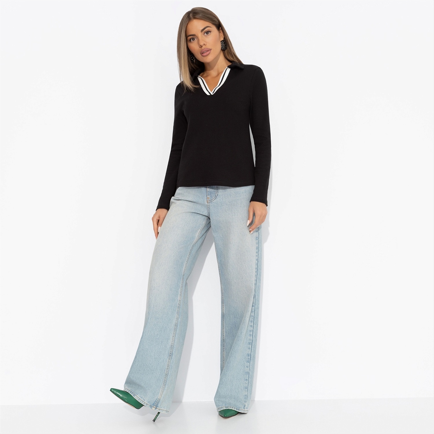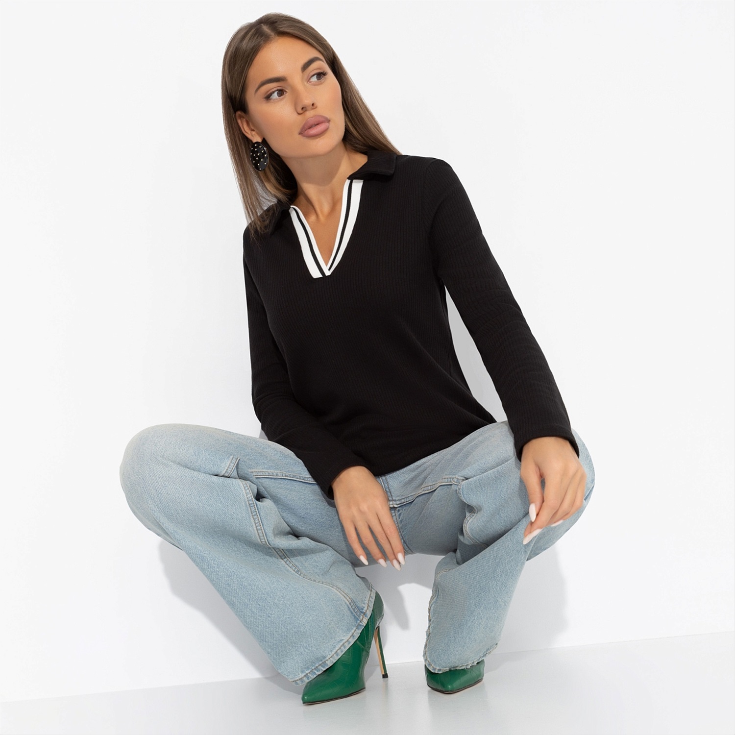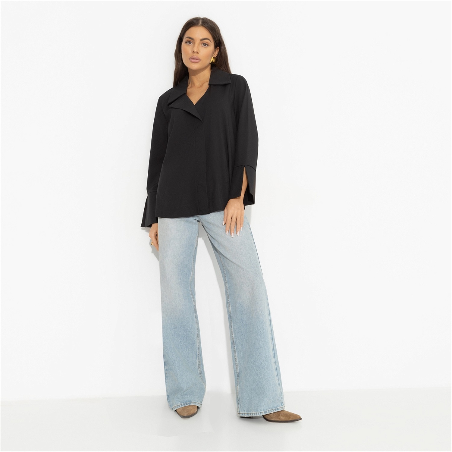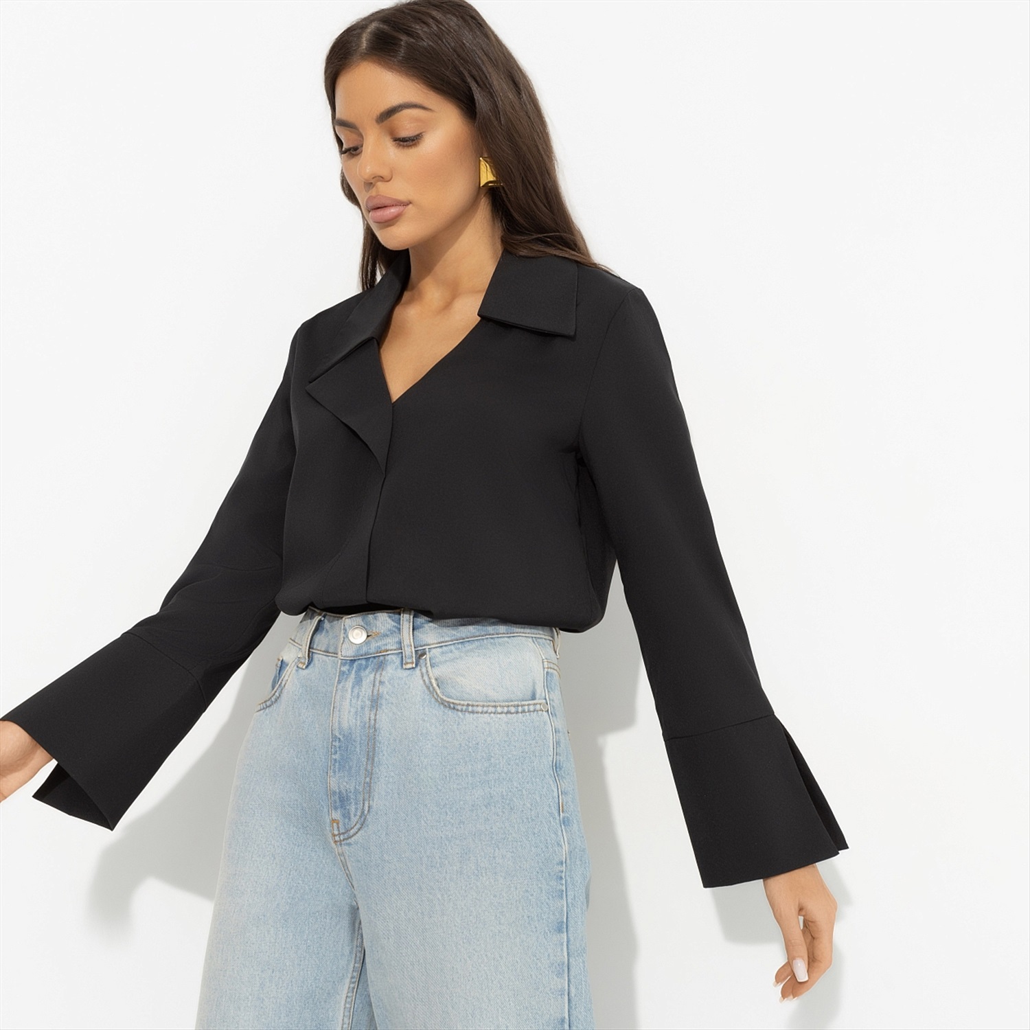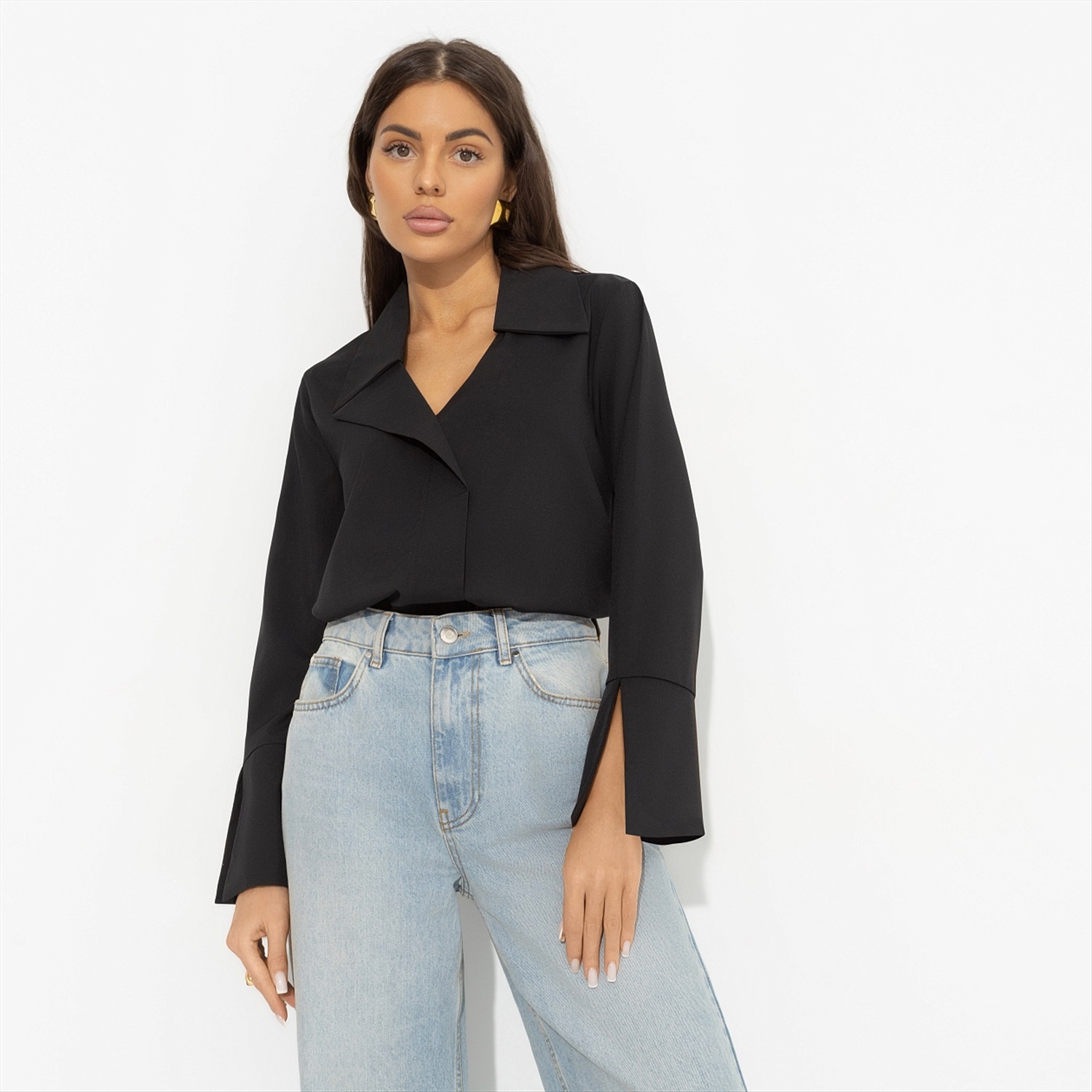 Блуза с разрезами на манжетах, Амбассадор стиля (black) 6 фото