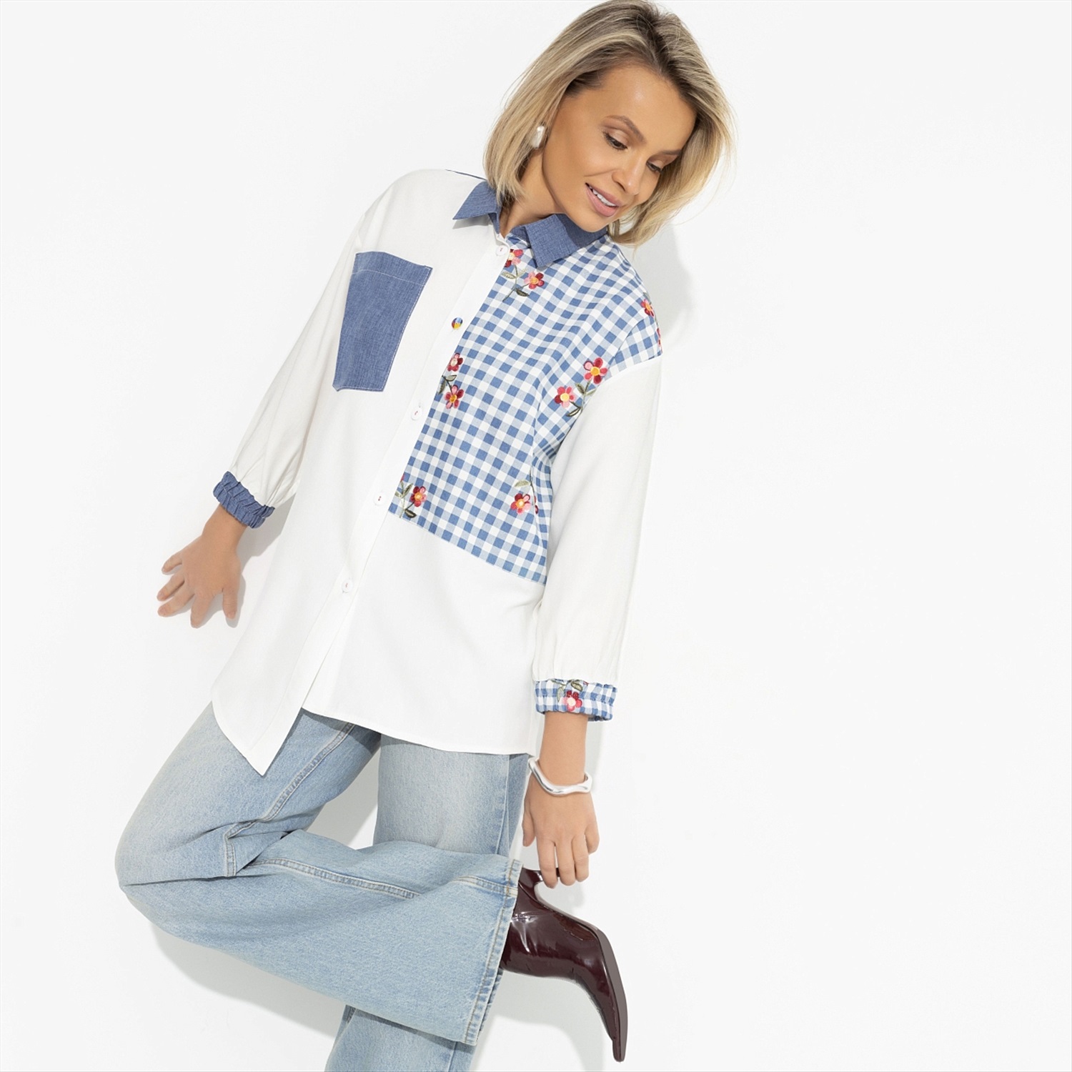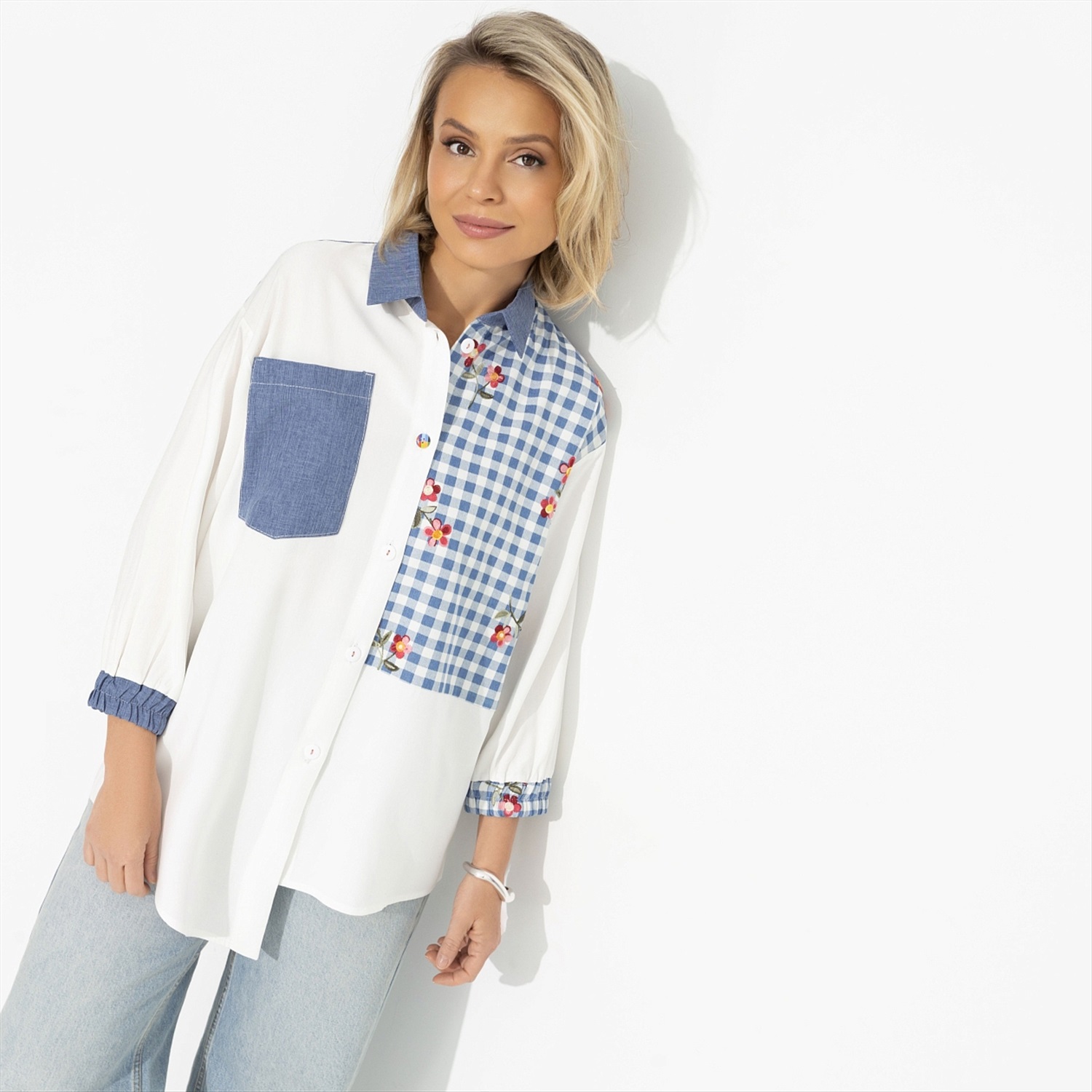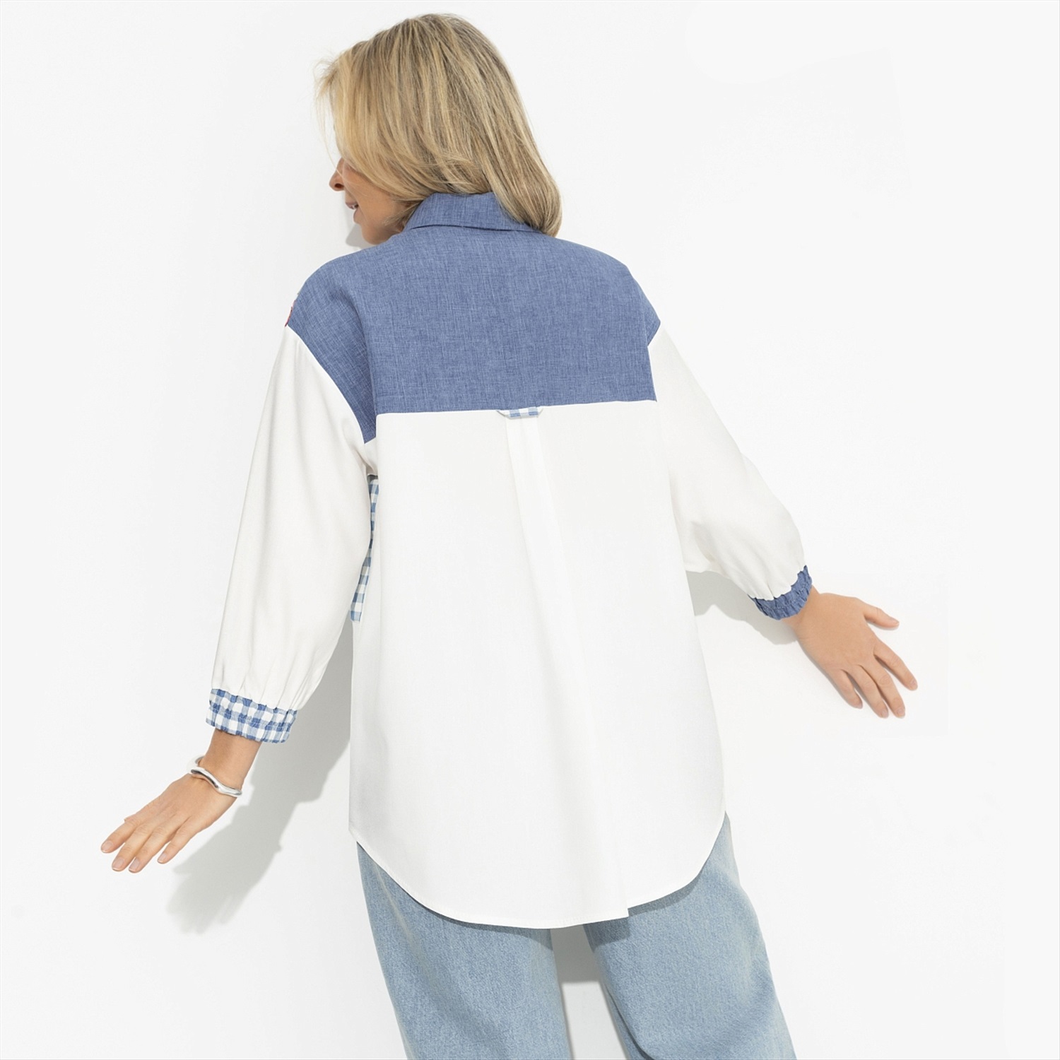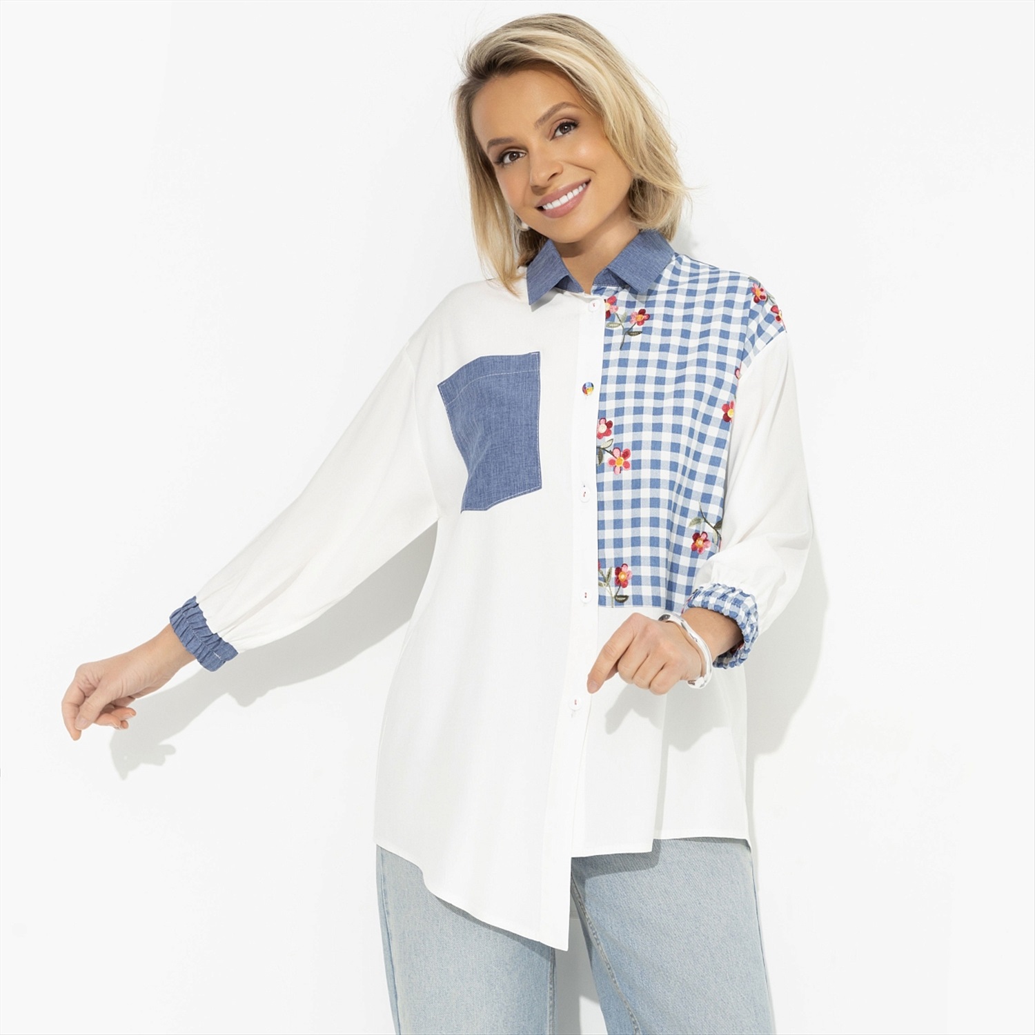 Рубашка комбинированная, Жемчужина образа (white) 6 фото