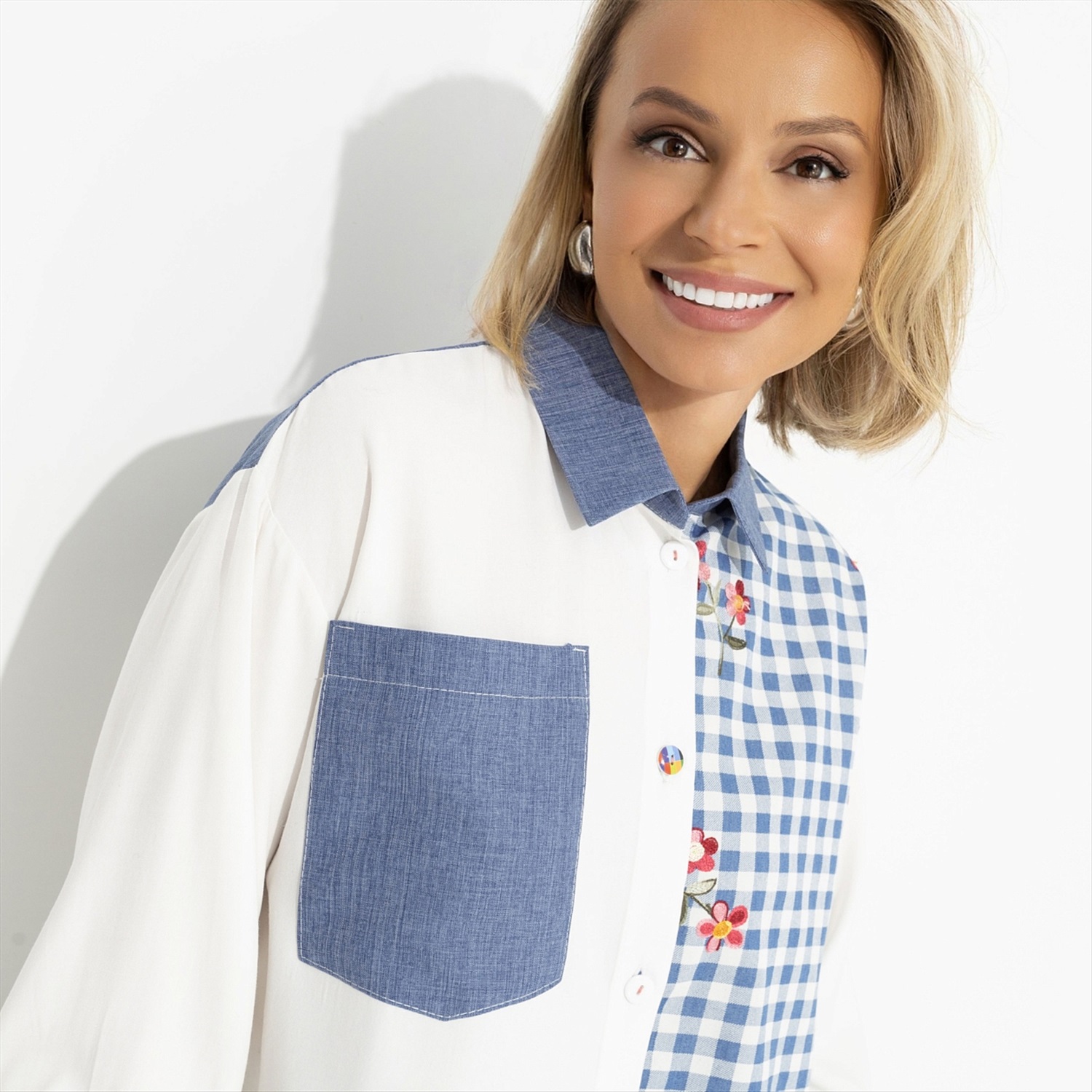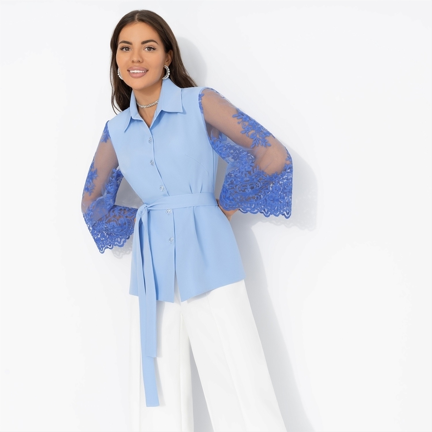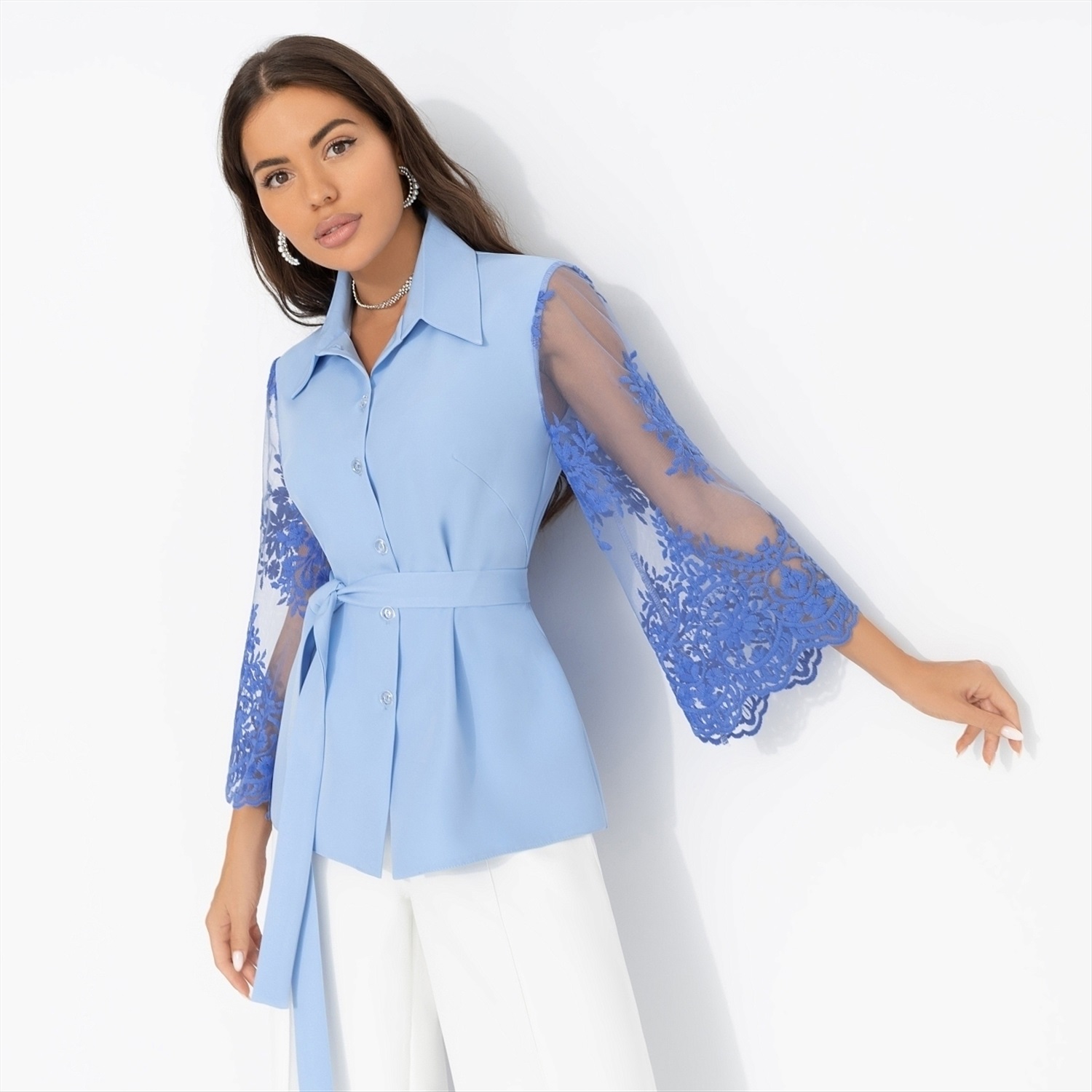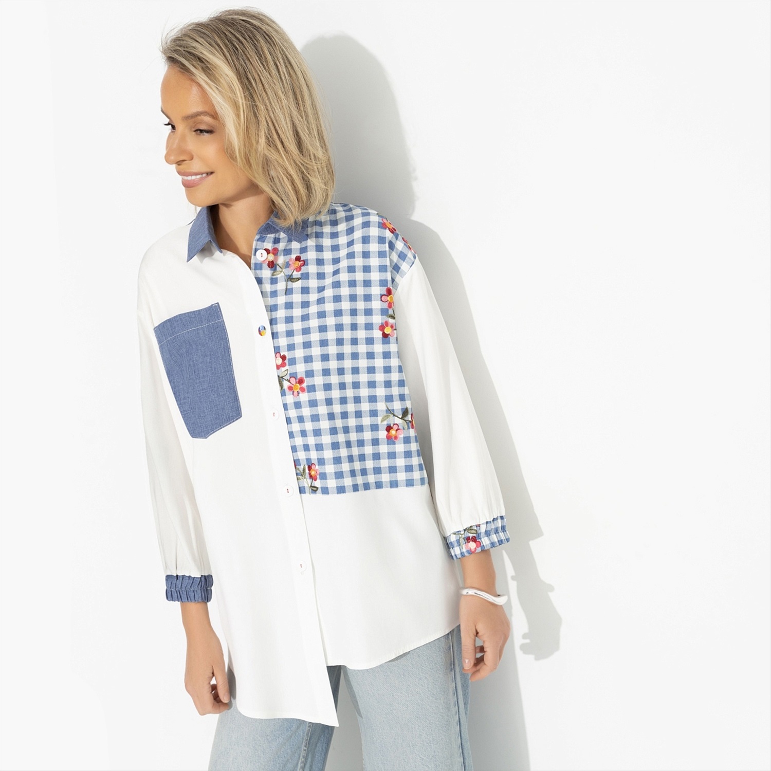 Рубашка комбинированная, Жемчужина образа (white) 6 фото