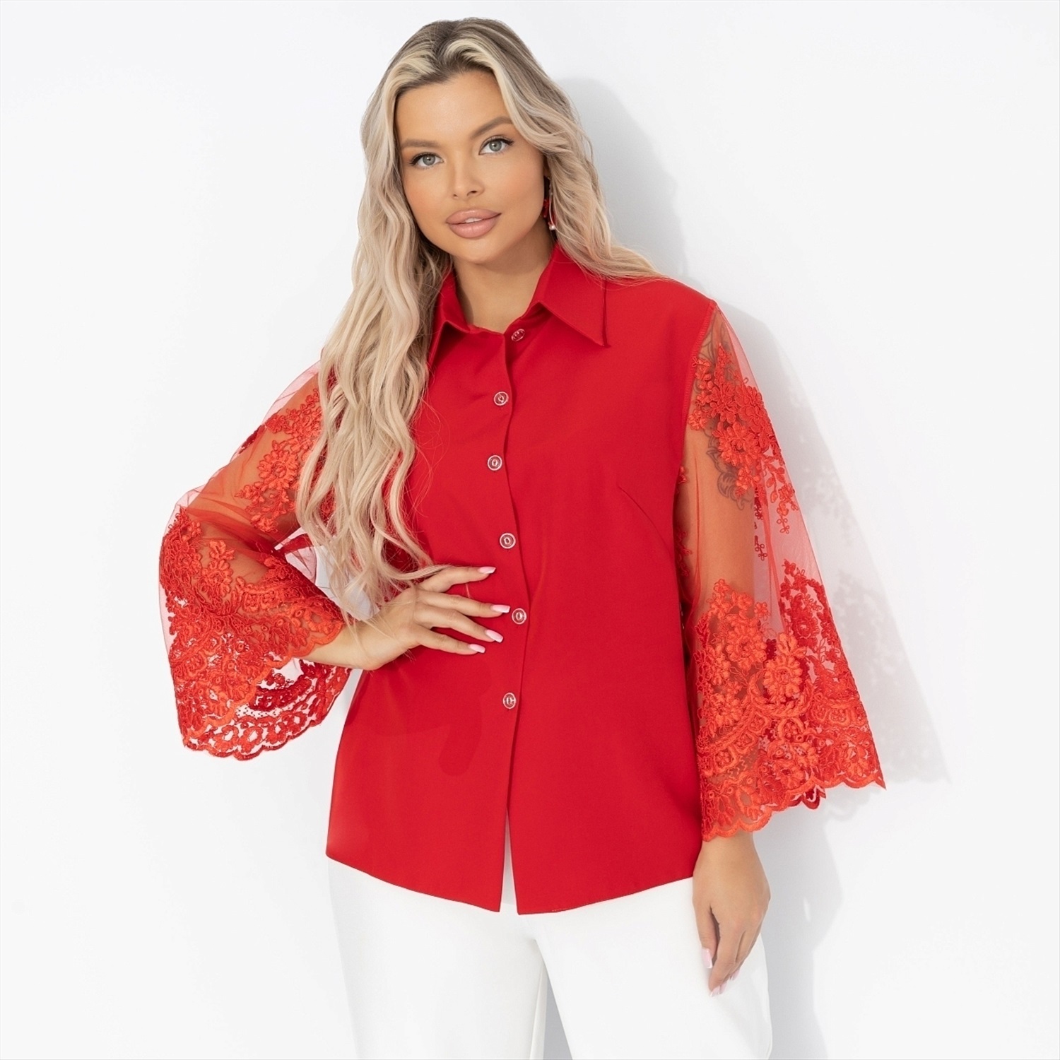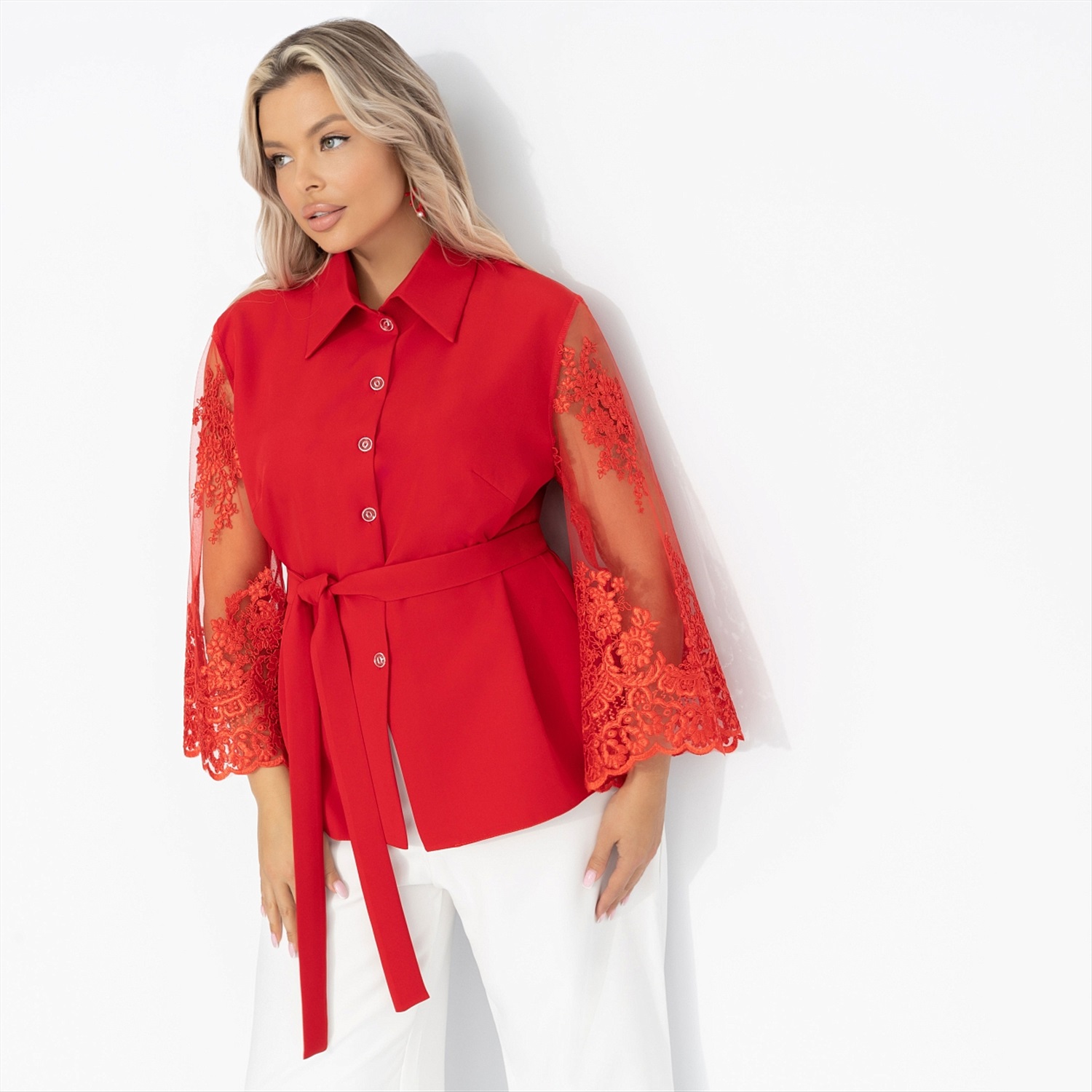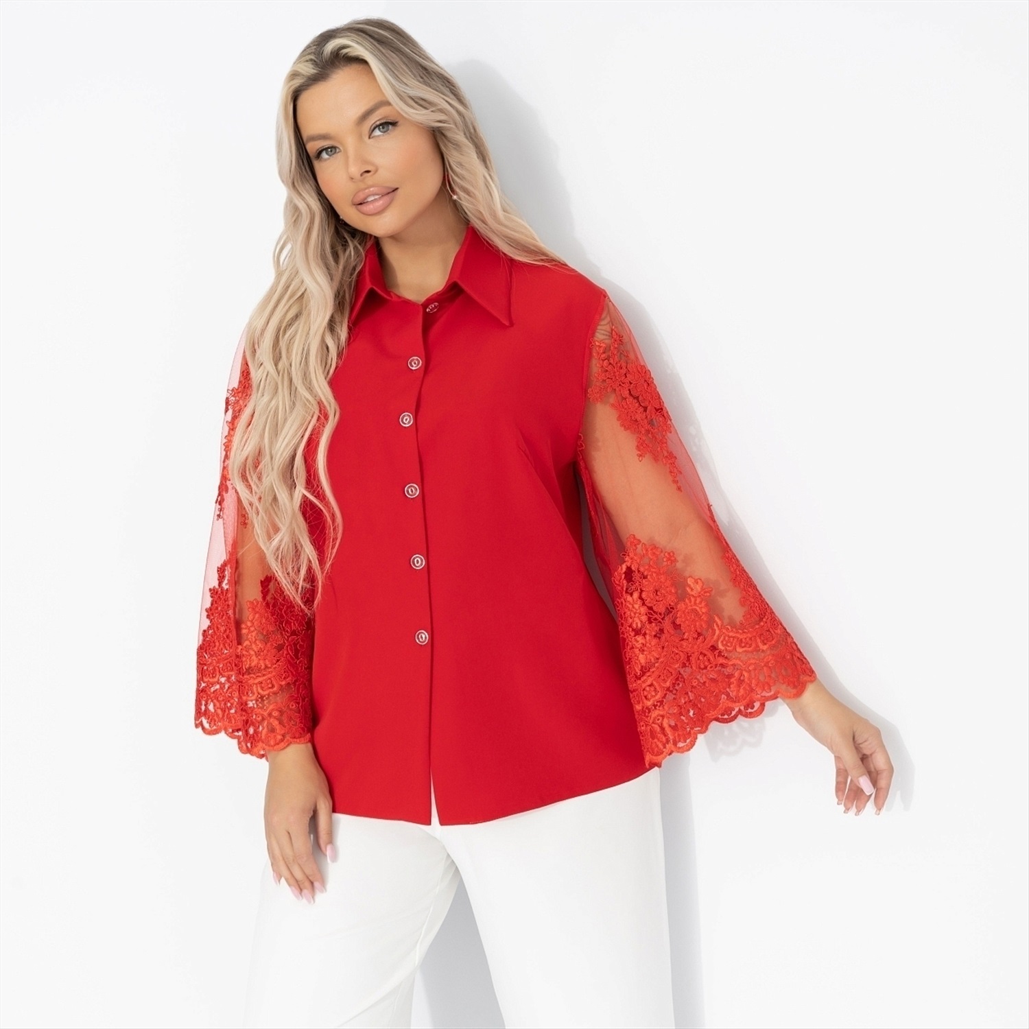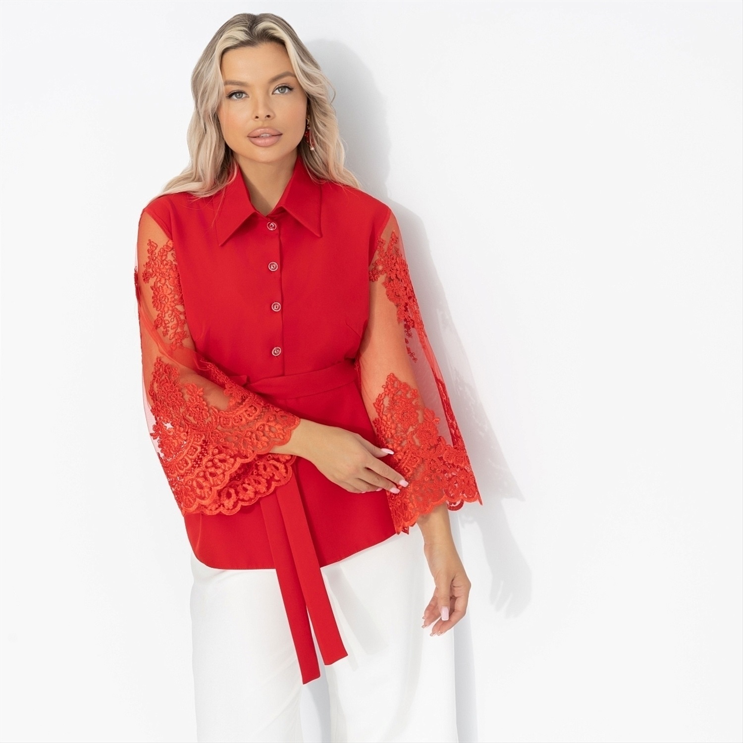 Блуза с имитацией застёжки, Амбассадор стиля (red) 6 фото
