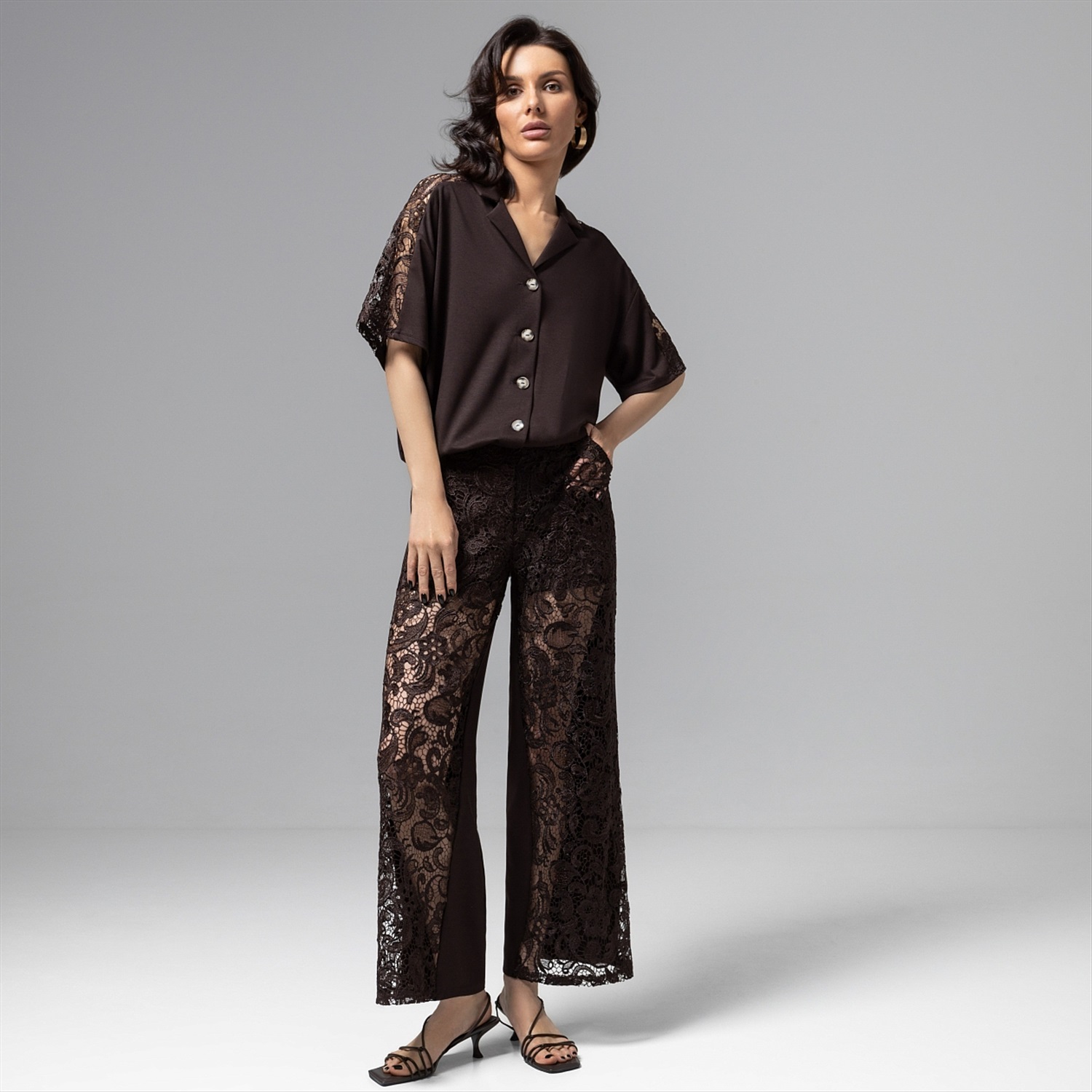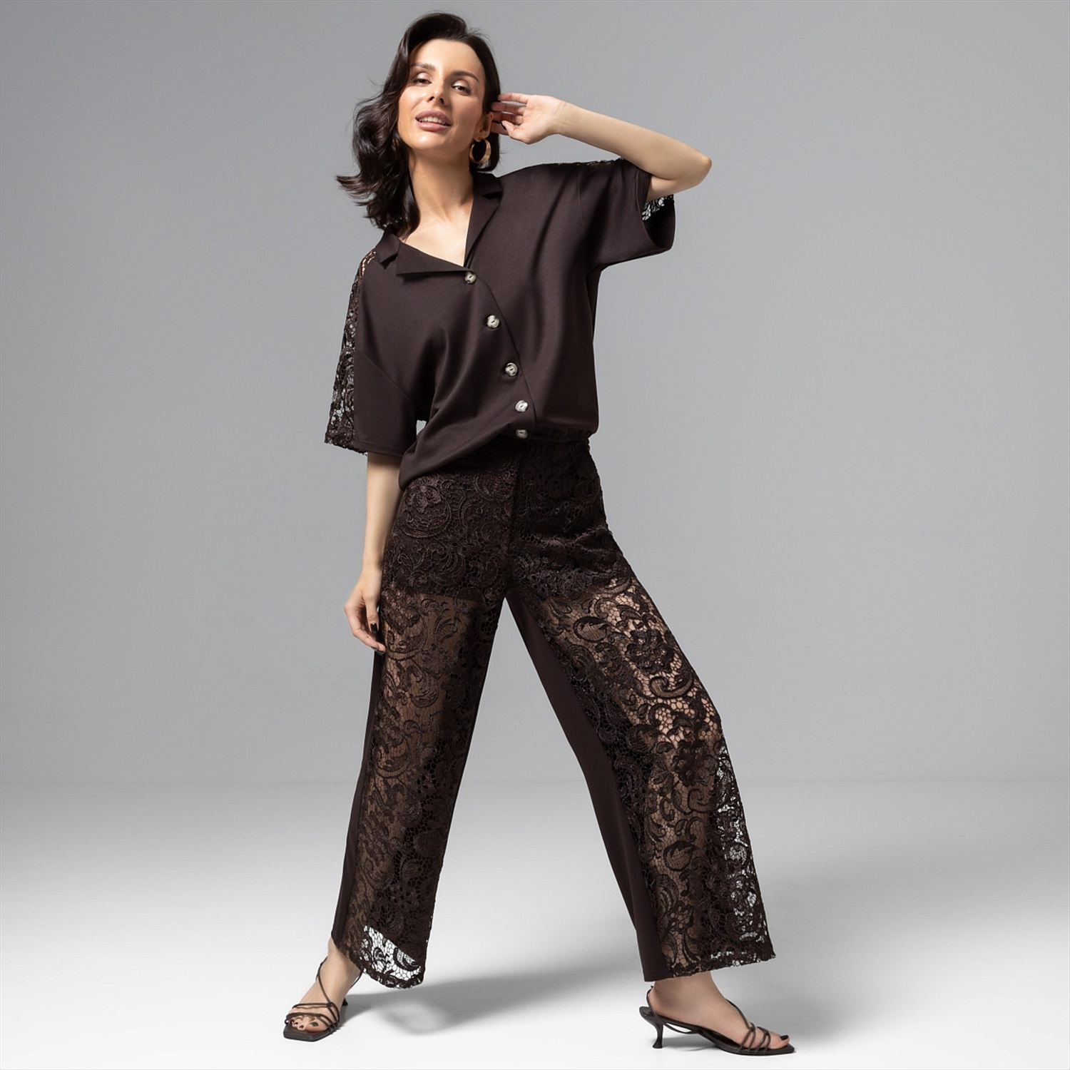 Кюлоты комбинированное с кружевом, Больше, чем просто стиль (горький шоколад) 6 фото