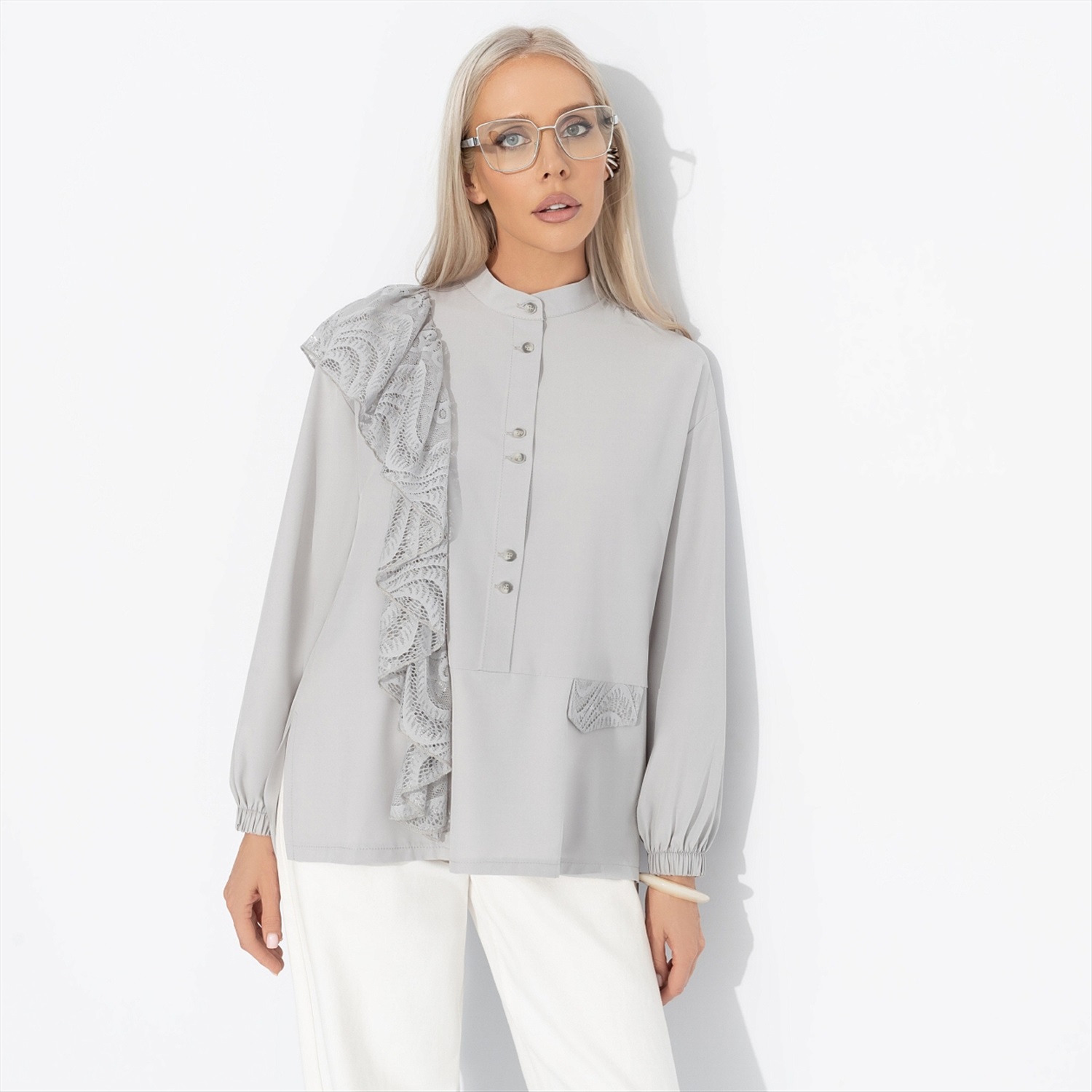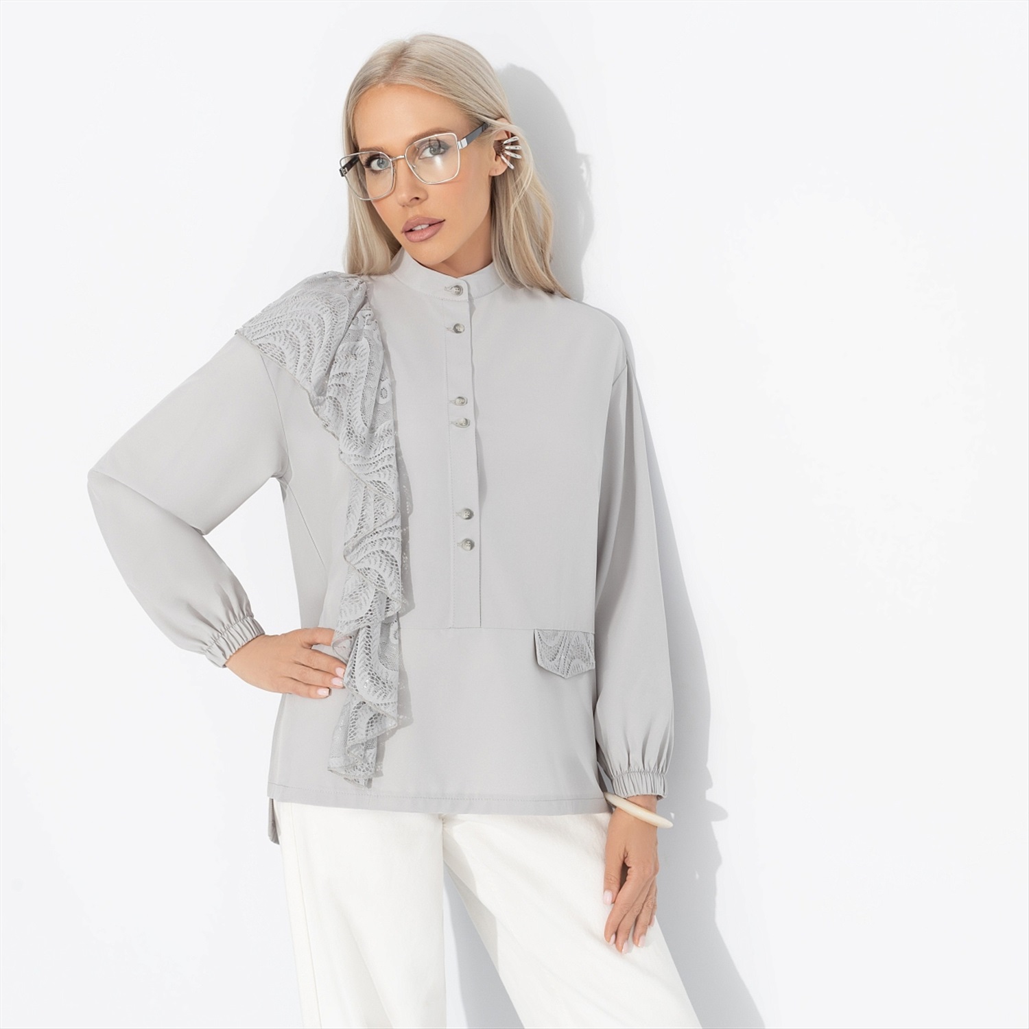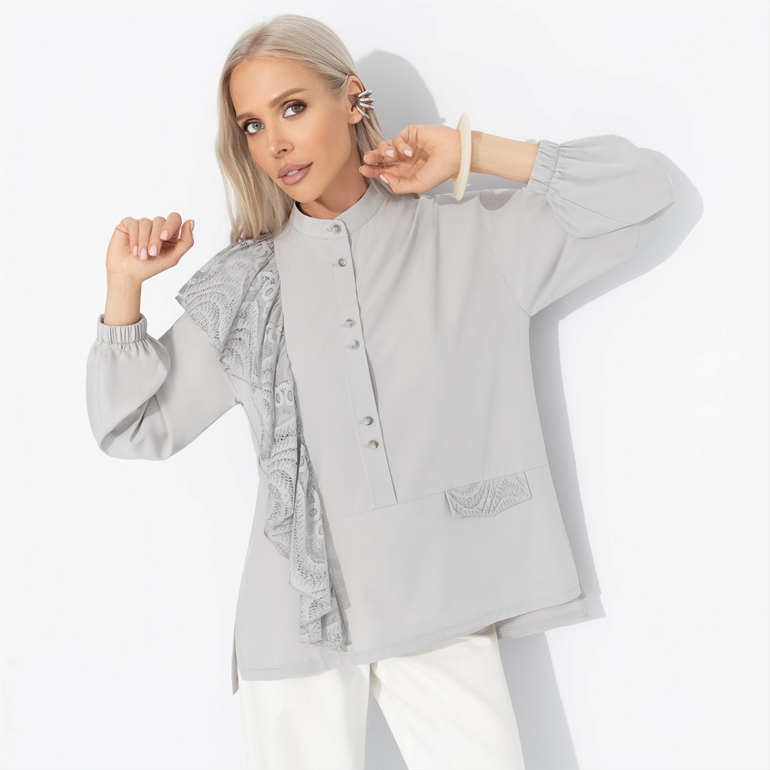 Рубашка комбинированная с кружевом, Личное достижение (серая) 6 фото