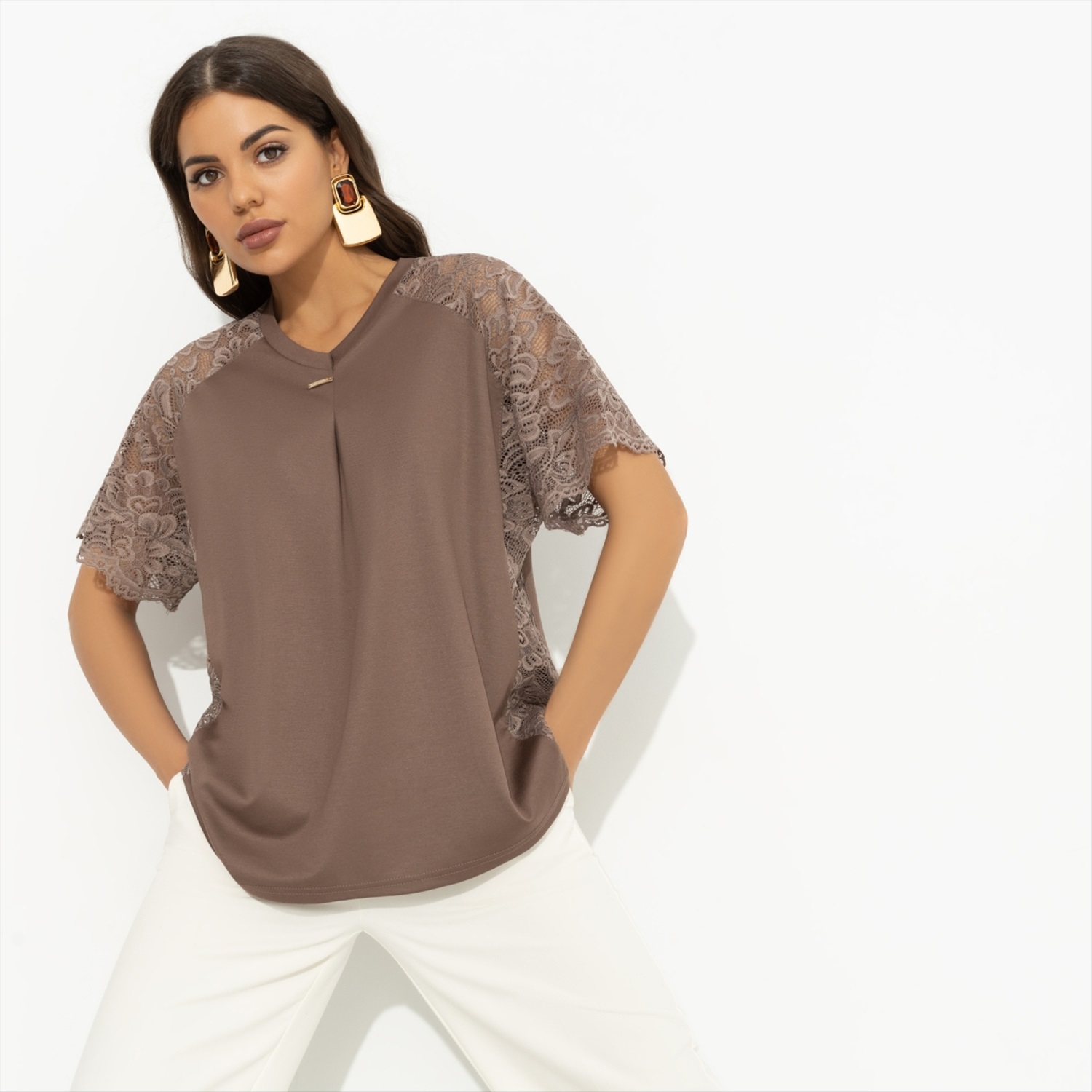 Футболка комбинированная с кружевом, Гармония без усилий 6 фото