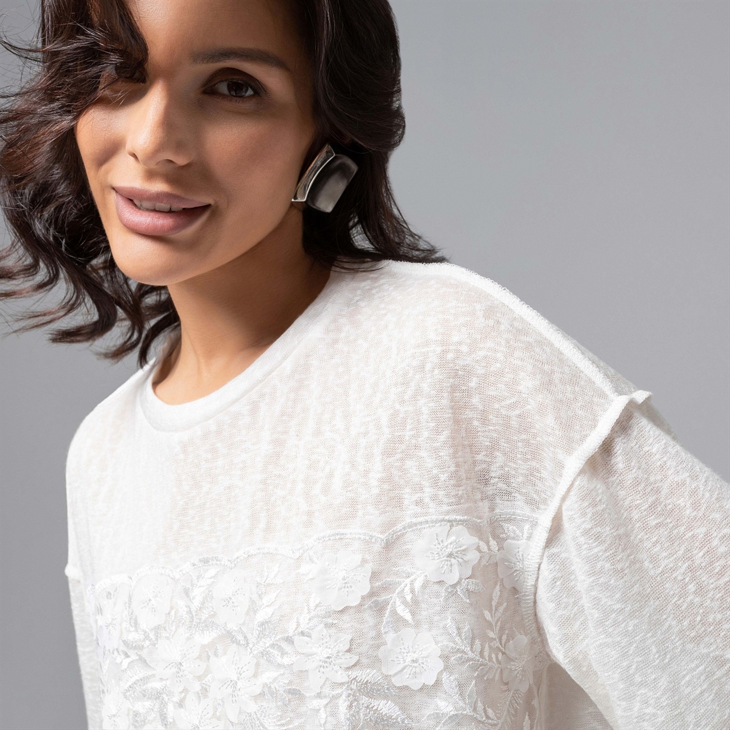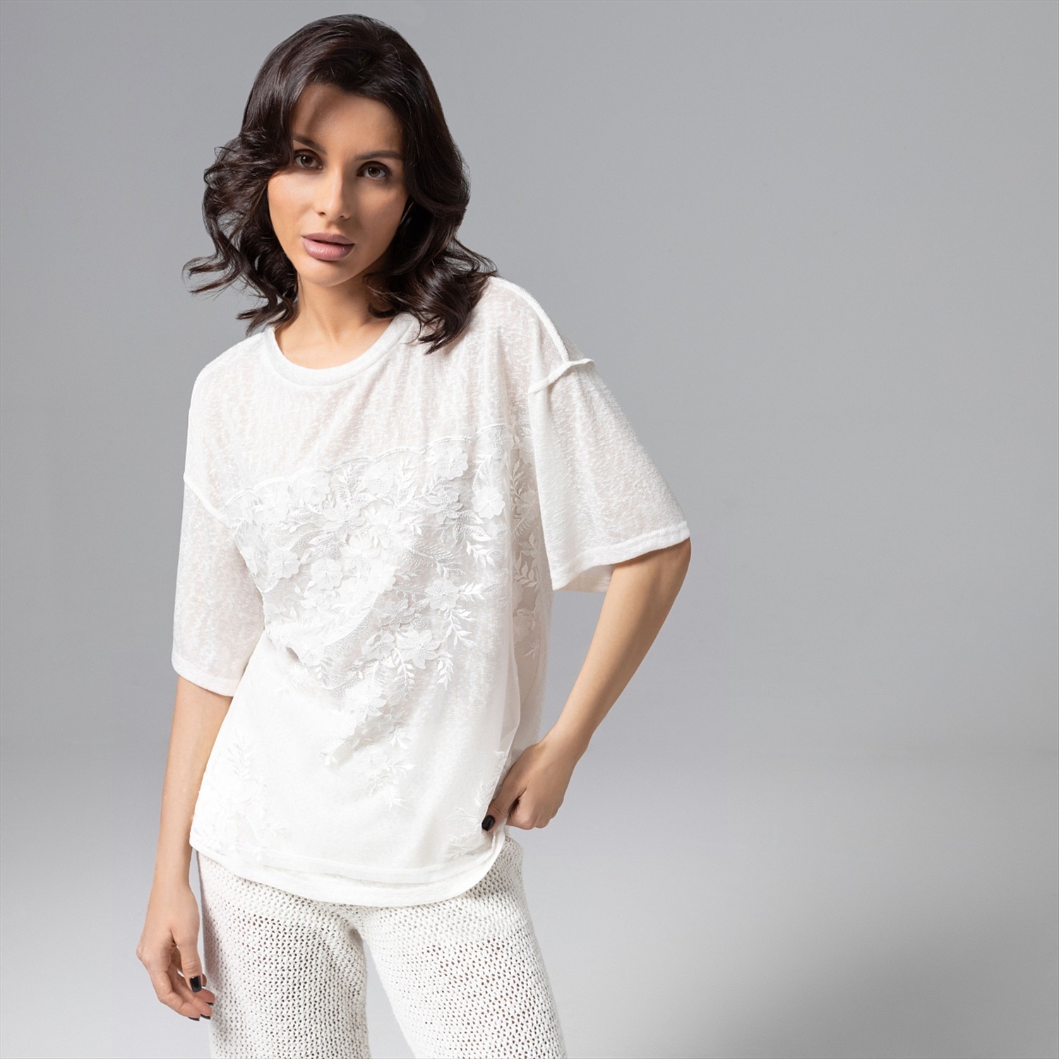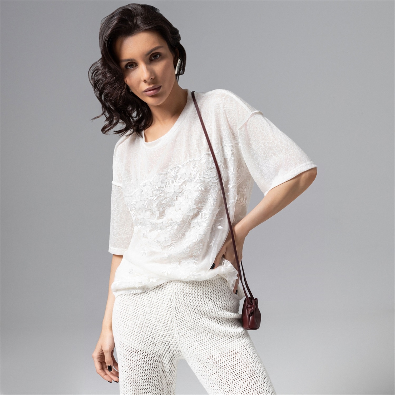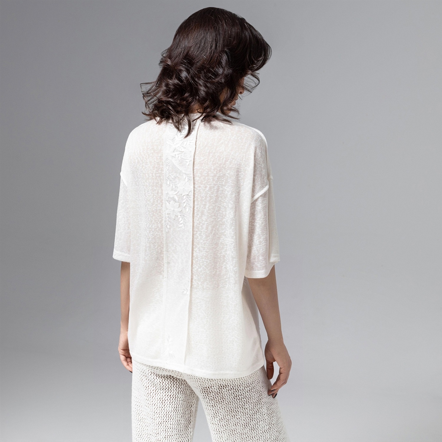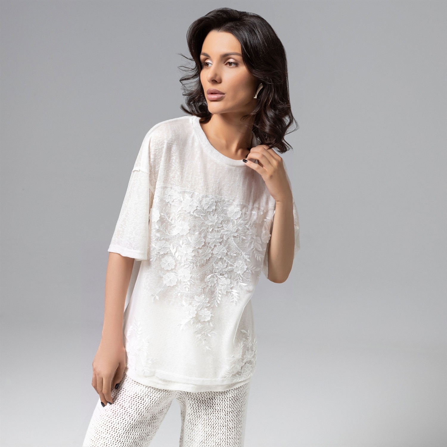 Футболка комбинированная с вышивкой, Буду тебе сниться (айвори) 6 фото