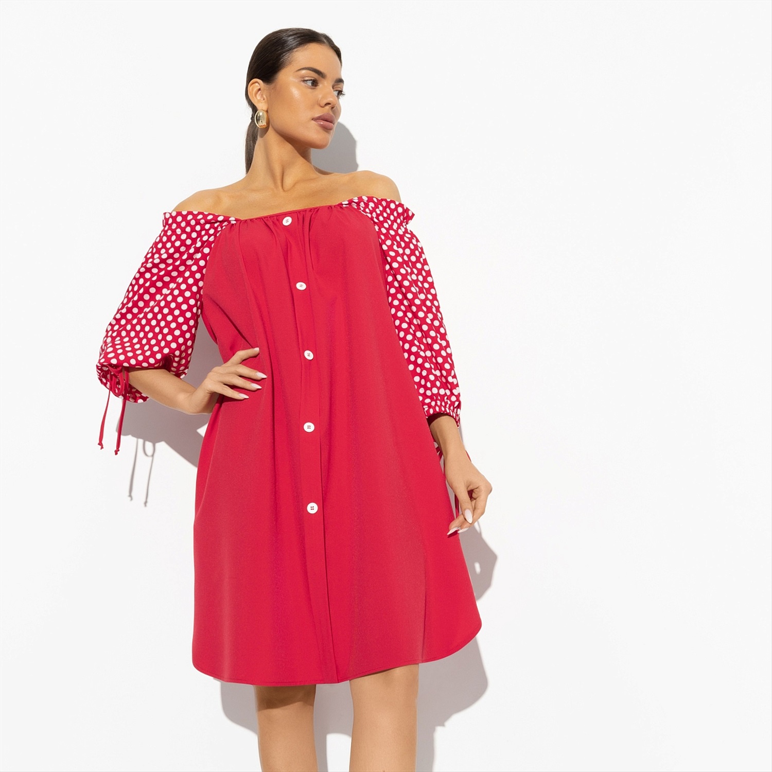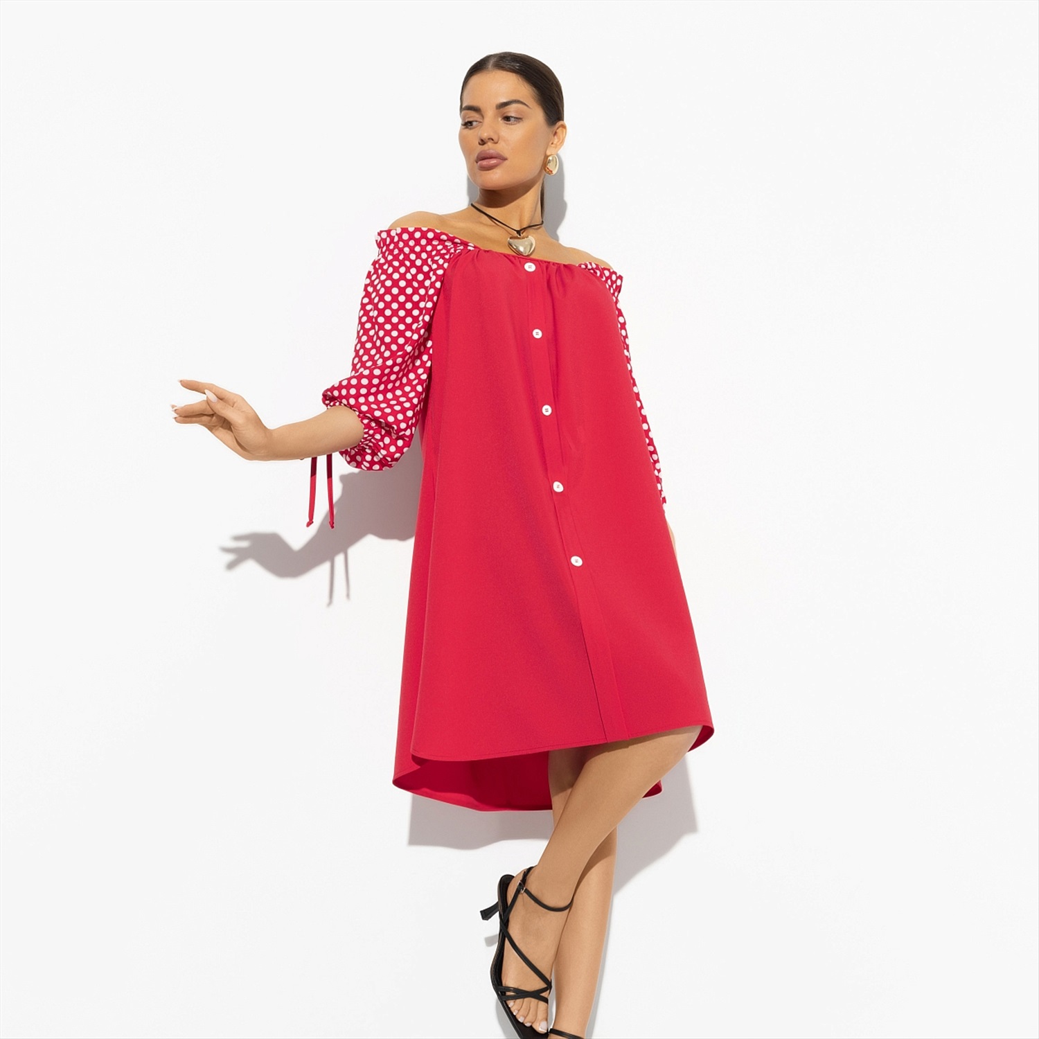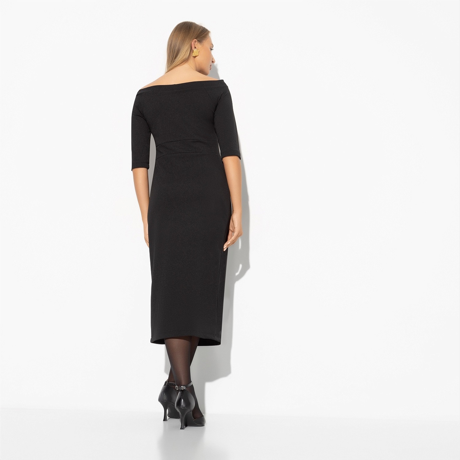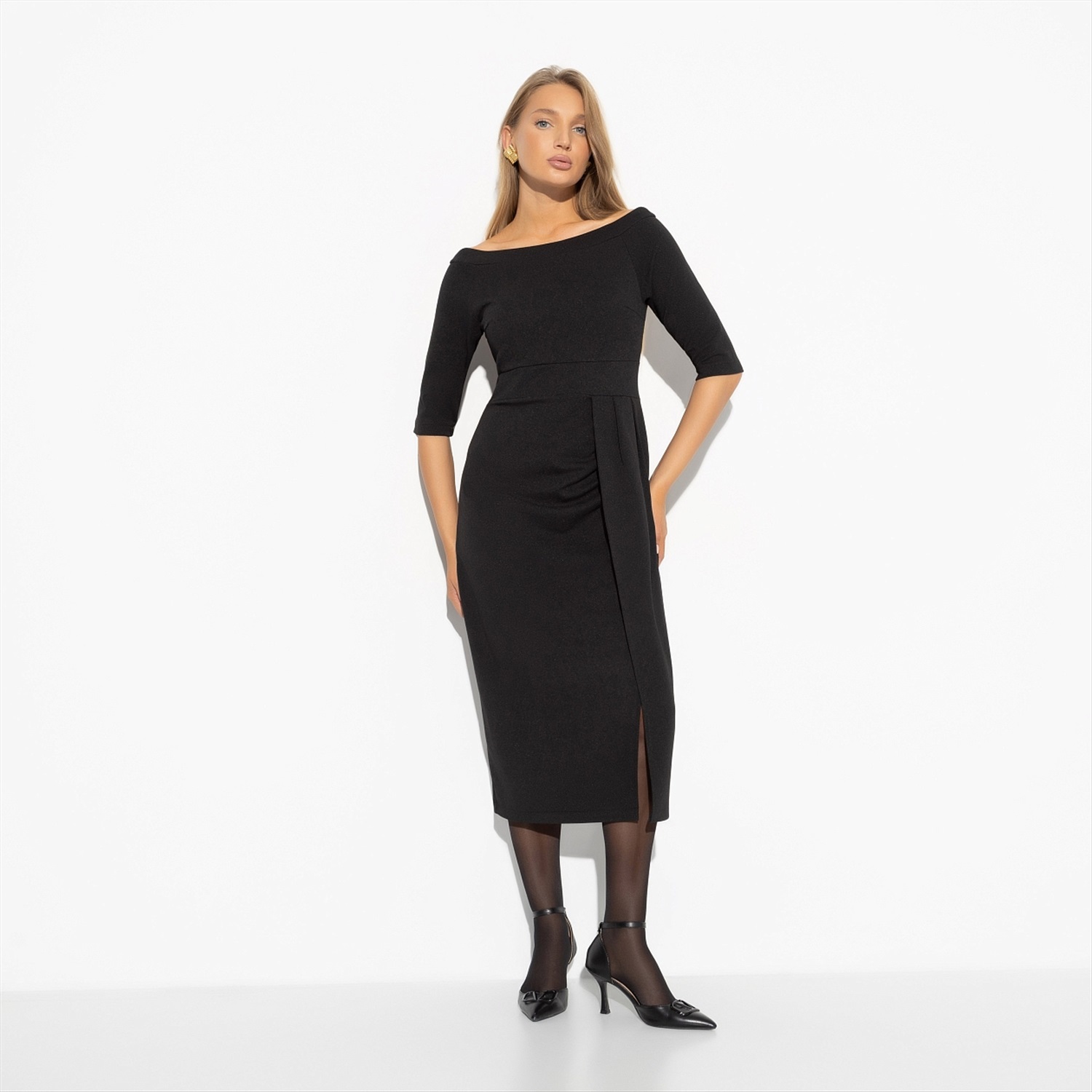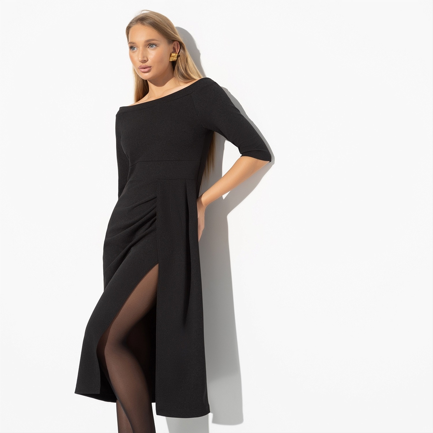 Платье с открытыми плечами и высоким разрезом, Деловой завтрак 6 фото