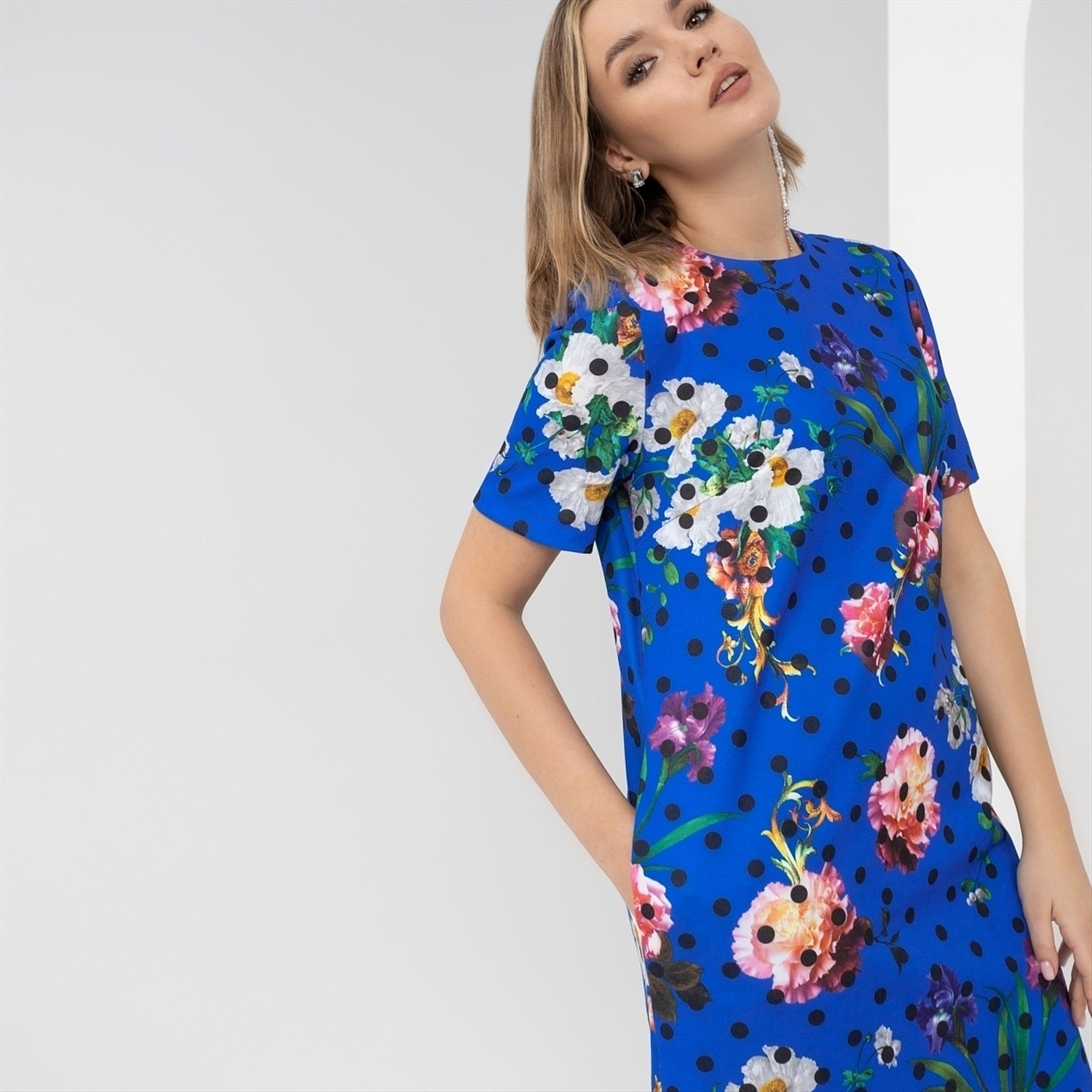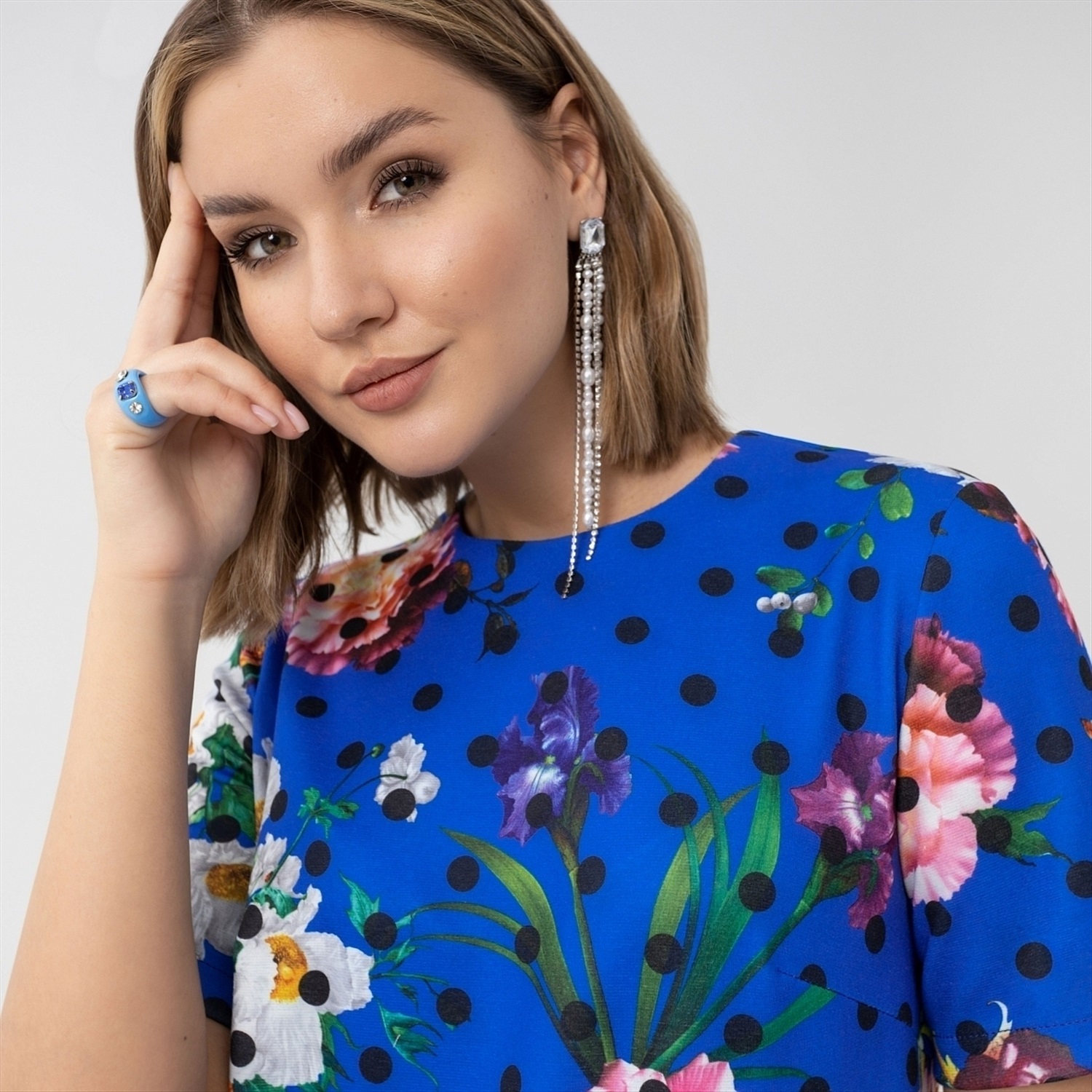 Платье, Цветочный тотал-лук (индиго) 6 фото