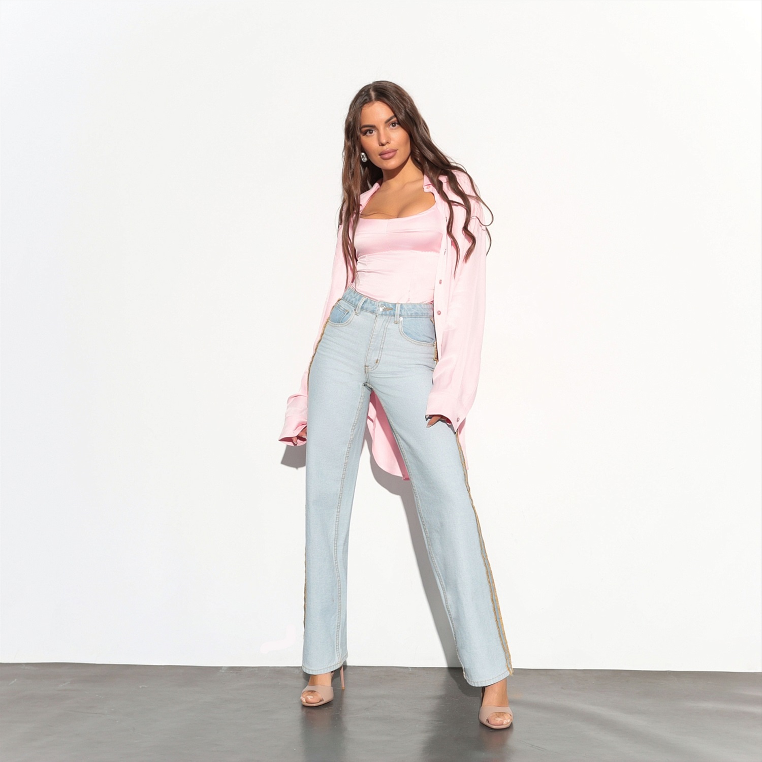 Джинсы прямые с имитацией изнанки, Matera (light blue) 6 фото