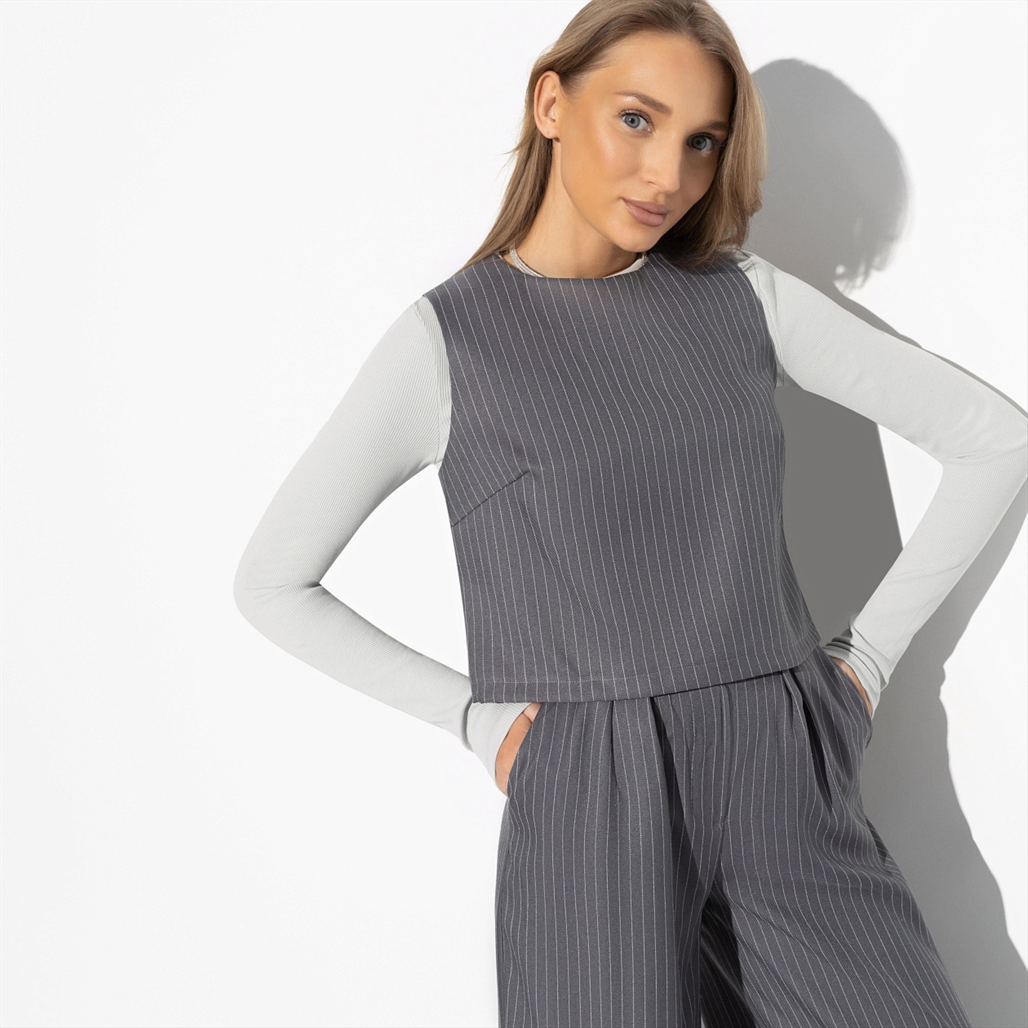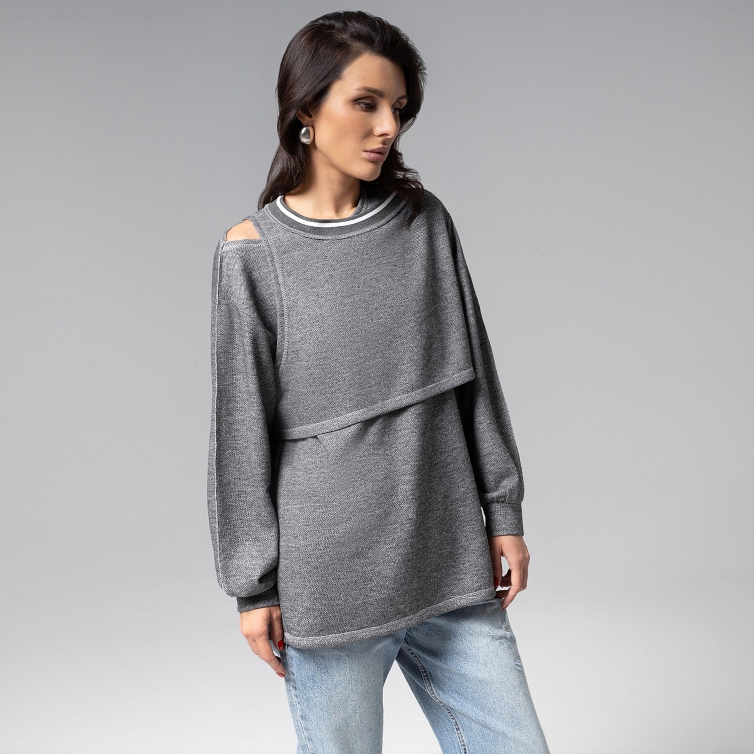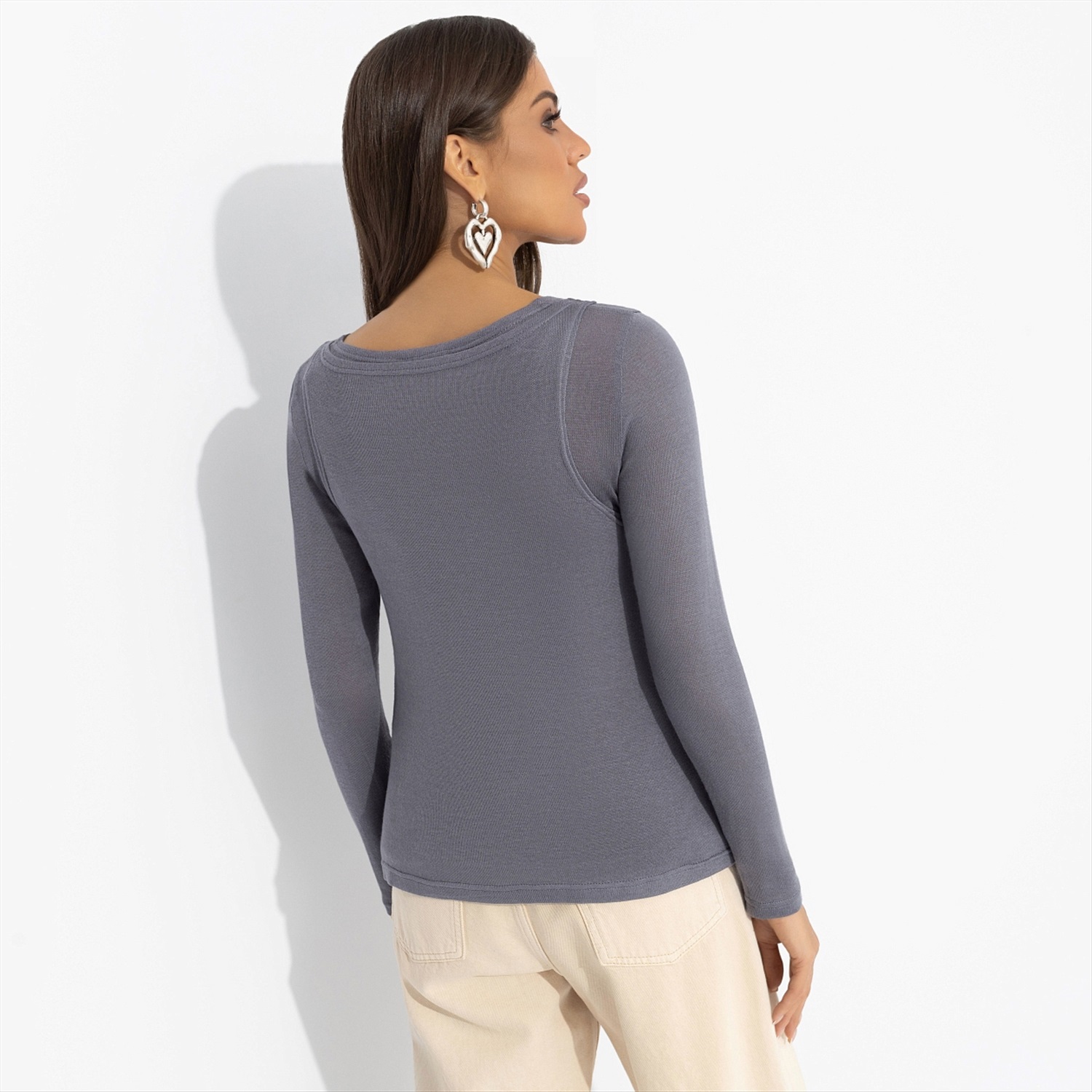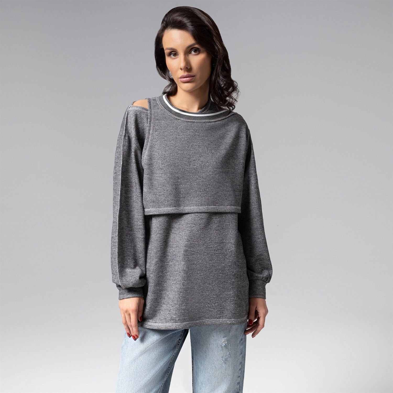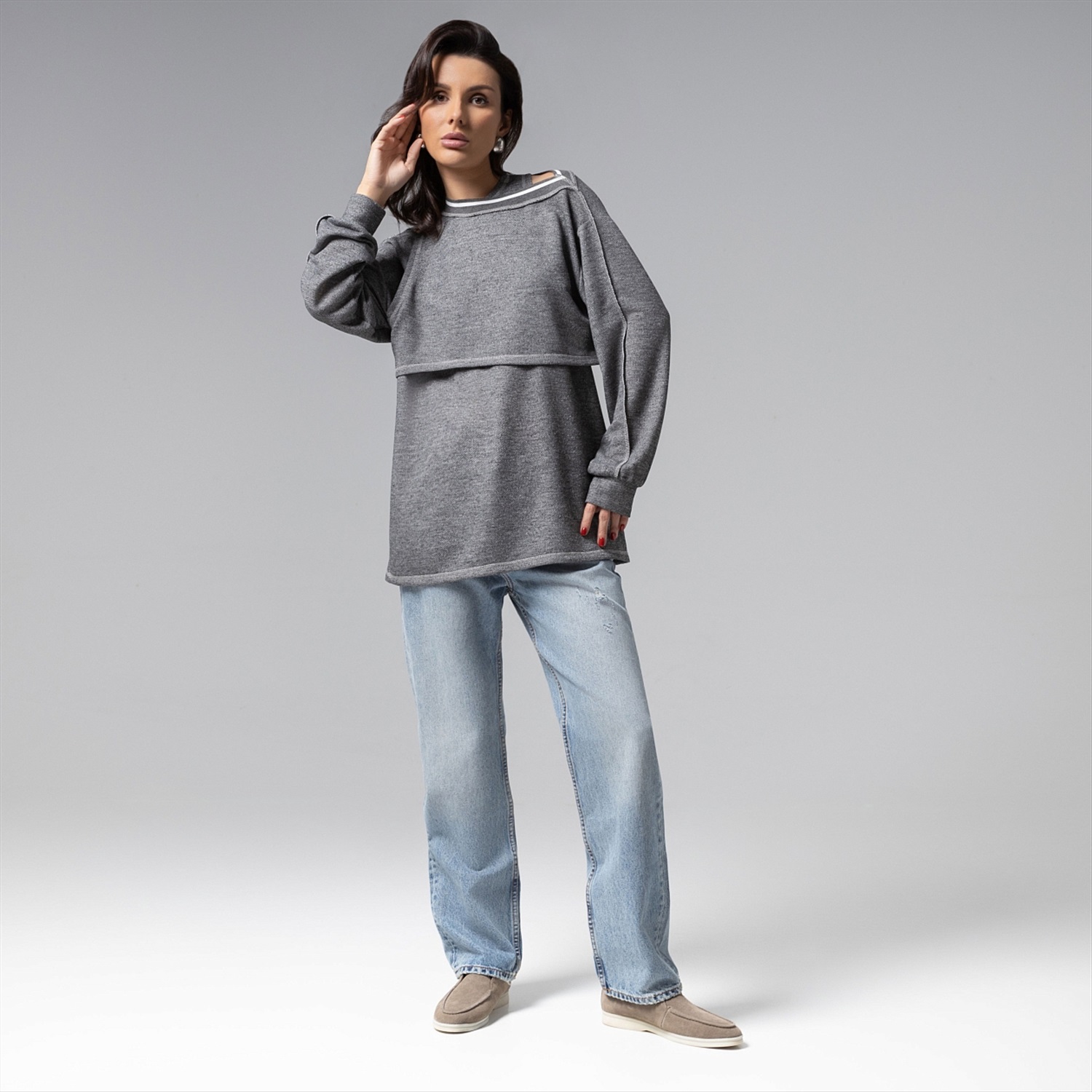 Лонгслив многослойный, Преданная стилю (grey, 2 в 1) 9 фото